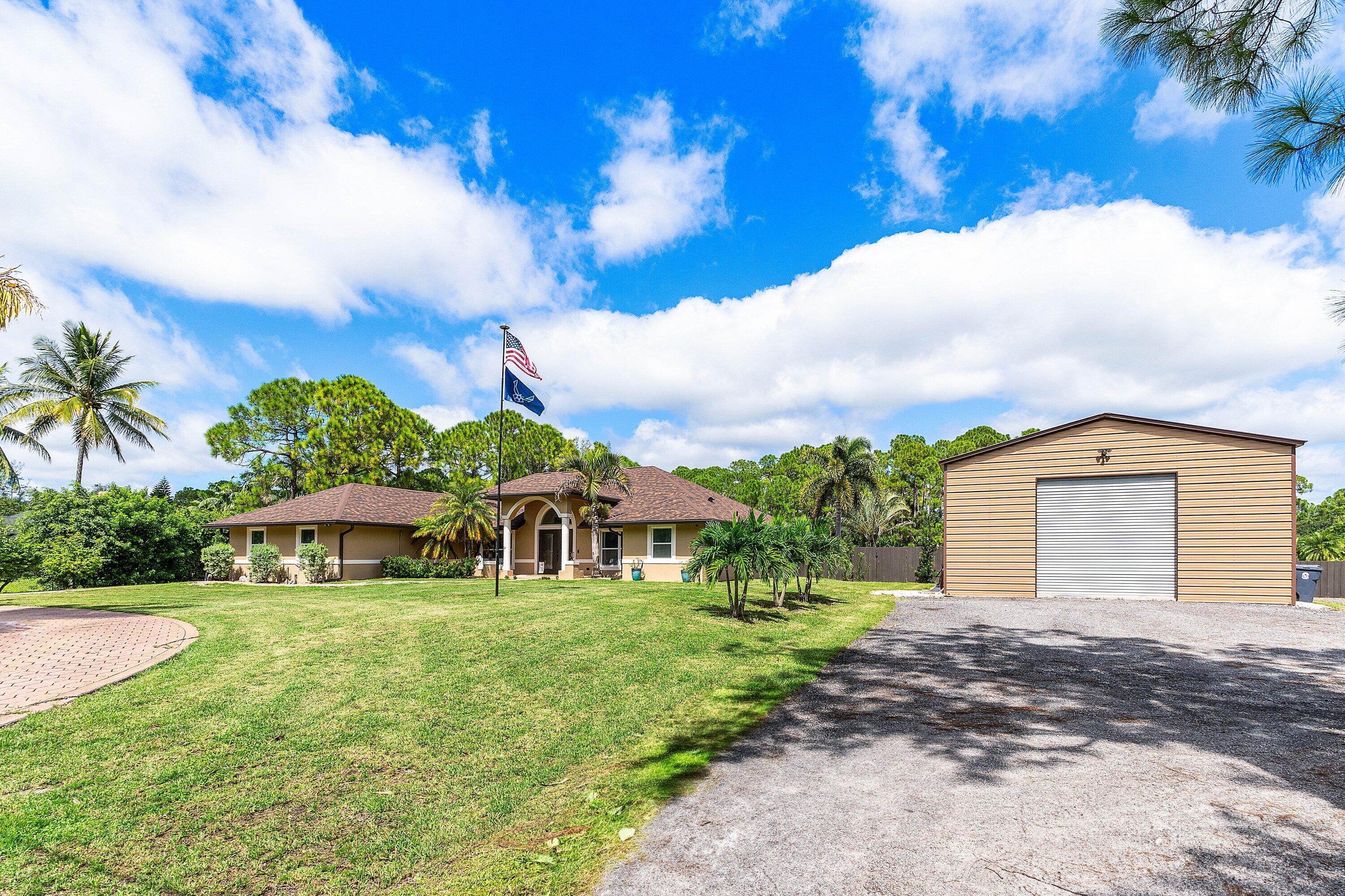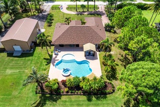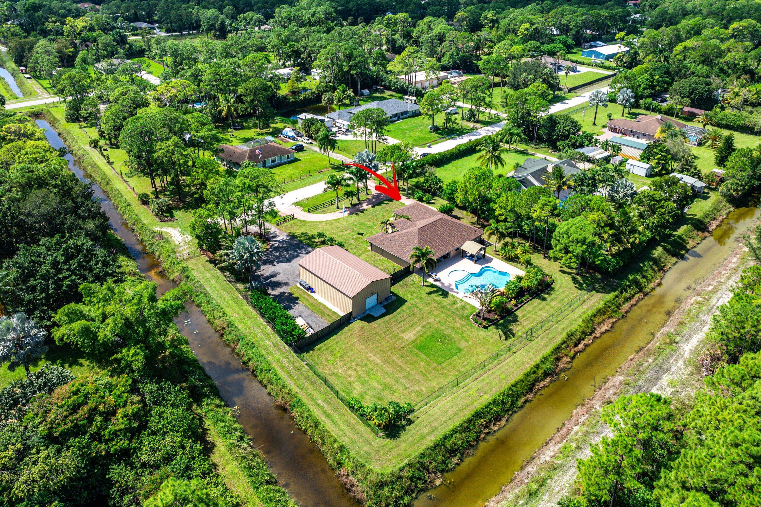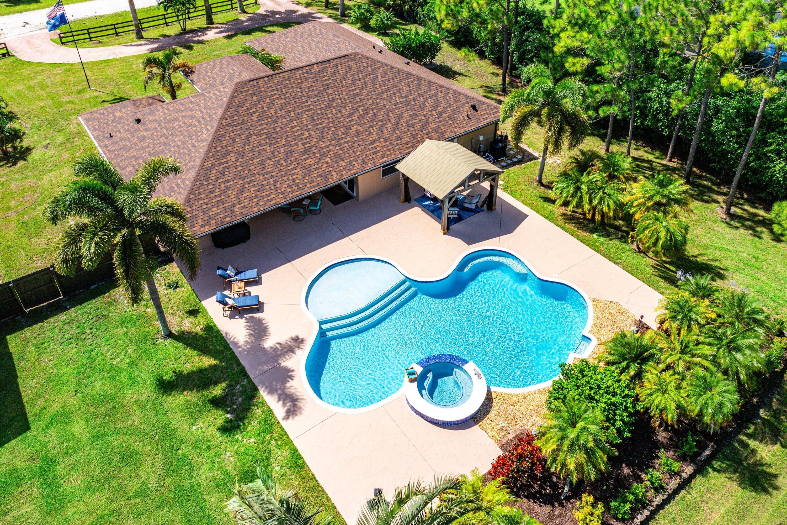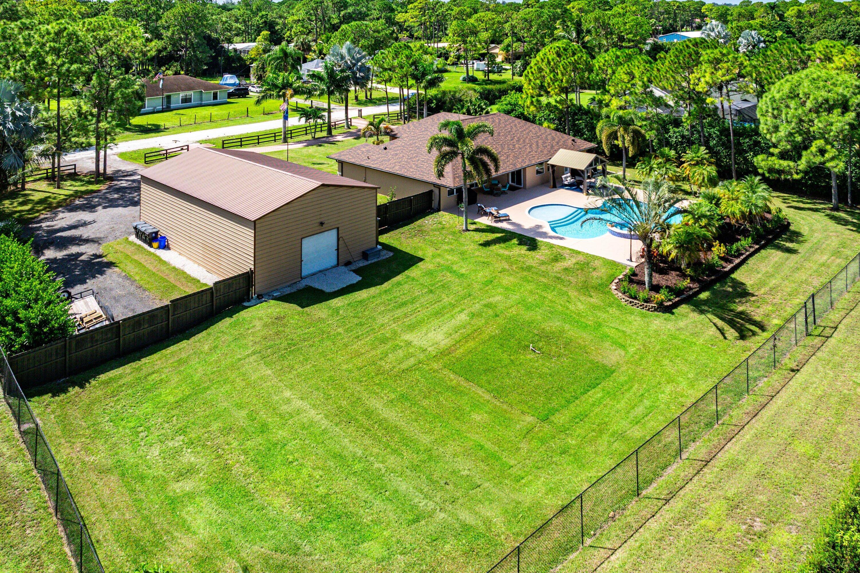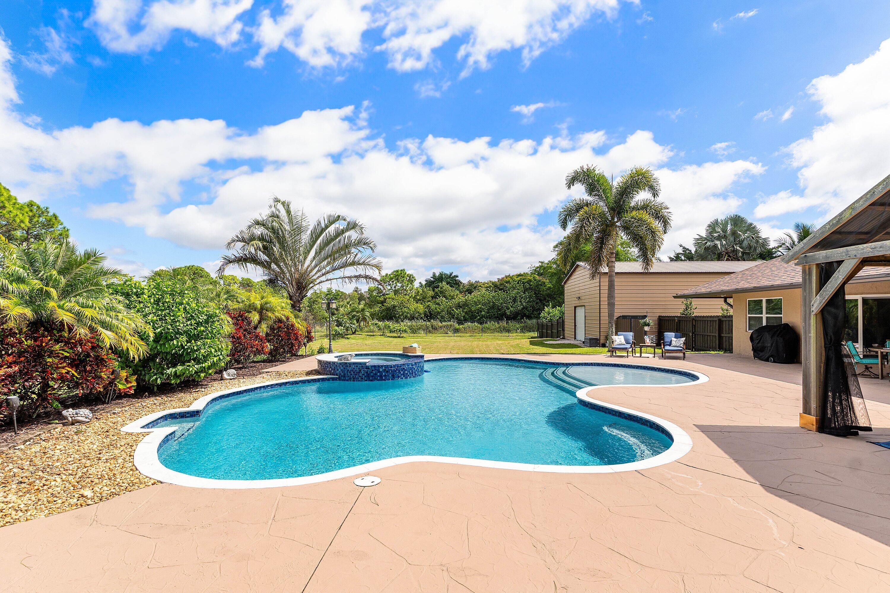 WELCOME HOME This well appointed gem is resting on a premium 1.47 acre lot and boasting 4 bedrooms, 3 full baths, enormous 40' x 25' sparkling saltwater and heated pool with waterfall spa, 2 car attached garage and a spectacular (1500 sqft) 2021 built shop, upgrades and updating galore, hurricane impact windows and doors, 2025 roof, paved road coming before 2026 and this beauty is in a superb location! ENTERING the decorative circular driveway you will discover that this rare find is resting on a high and dry fully fenced private corner lot with no pond and over 500' of waterfront. The grand covered entry brings you inside the double front doors where you are greeted by 13' vaulted ceiling, rounded corners, extensive millwork throughout and solid core doors, windows galore and (CLICK)and loads of natural lighting, spectacular kitchen that features; 42 inch cabinets with countless pullouts, pantry, soft close cabinets and drawers, Samsung stainless steel appliance package, quartz counters, glass backsplash, stainless steel farm sink, sink RO system, spacious bar with shiplap wall and a lovely breakfast nook that overlooks the pool and abundant green space. PASSING THROUGH you will find a modern farm house feel, dynamite split floor plan, that this beauty is very well maintained, stunning floor to ceiling fireplace with pecky cypress mantle and shelves, luxury vinyl plank flooring throughout, freshly painted interior, beautiful archways, lighting, fans and outlets updated throughout, a full cabana bath with Echo self opening toilet with bidet and auto flush, many closet systems, smart mirrors, Echobee thermostat, extra deep second bath tub, convenient desk cubby in bedroom two, under AC laundry room with front loading Samsung package, folding shelf, cube storage and charming shiplap wall. And hello elegant master suite boasting a pool and green space view, tray ceiling, his and hers walk-in closets with built-in closet systems, deluxe soaking tub, spacious walk-in sports shower with accent wall, his and hers vanities, linen closet and a design that is exquisite! STEPPING OUTSIDE brings you into a your very own private oasis... 30' x 13' lanai, recently resurface and impressive 40' x 25' 28,000+ gallon pool that comes with a very high-end robot pool cleaner that I call, Pool Boy, 6+ person waterfall spa, 55' x 47' pool patio, gazebo, freshly painted exterior, dead end street with extra seclusion and lush mature, pine trees, loads of palms such as; queen, foxtail, blue/Bismarck, Christmas, bottle, robellini and many others, (3) convenient driveways, irrigation system. Simply, a perfect space for quiet time, cozy fires, family gatherings, entertaining and enjoying Florida living at its best. HELLO SHOP, SAVINGS, PEACE OF MIND & CONVENIENCE: The (1500 sqft) 2021 shop features; 12' x 10' roll up front door, 9' x 8' rear roll up door with safety gate, swing door, 6" thick concrete slab, 60 AMP service, water, internet, Ring alarm system, (3) Blink cameras, workbench sink, bathroom with sink and toilet, partially insulated, can hold (8) standard size cars and there is a convenient hidden outdoor storage area on the east side to keep items out of view. Electricity savings via the roof ridge vent and the hybrid electric heat pump water heater can save you up to 77% in annual energy costs versus a comparable standard electric water heater--that's $601 per year in potential energy savings! And there is a Ring alarm system and Blink camera system with six cameras, no flood insurance is required, high speed fiber Internet, countless smart home features, advanced water system, attached (2) car garage features a mini split, the A.O. Smith Signature 900 80-gallon smart hybrid heat pump water heater provides efficient and reliable hot water for 5+ person households, adapts to local water quality for added tank protection and the road has already been approved to be paved and will completed on or before 2026 and much more! LOCATION LOCATION LOCATION The Acreage is located in Palm Beach County, which is home to one of Florida's best public school systems and some of the country's most rigorous public magnet and private schools in the nation as recognized by U.S. New & World Report, the New York Times and sitting just a few miles away from the Palm Beach State College. And from your own yard residents can enjoy year-around farm-to-table living, taking classes in the community and learning about the full spectrum of food production and healthy eating. Along with, this gem is just minutes to everything one could possibly desire; shopping and dining just around the corner and nine quaint parks with countless year-round outdoor activities such as; free concerts at the community amphitheater, play grounds and picnic areas with grill pavilions, fishing, skate and equestrian parks, fitness and equestrian trails, football, baseball and soccer fields, tennis, basketball, volleyball and racquetball courts and is located just minutes to everything one could possibly desire; Florida's Turnpike, I-95, Palm Beach international Airport, arts, entertainment, world class equestrian shows and facilities, beaches, theater, golf, business and economic development, education, green living and countless activities for all ages, Simply, the best of everything and your perfect Florida retreat. COME AND SEE WHY The Acreage is so sought after and take in the fresh country air and peaceful sounds of nature. Build a guest house, kids play house, garden and bring your toys, pets or just about anything your heart desires... The possibilities are endless and there is no HOA! Come and enjoy your life away from the hustle and bustle and your evenings gazing at the stars from your spa. Be sure to check out the VIP discounts on site.