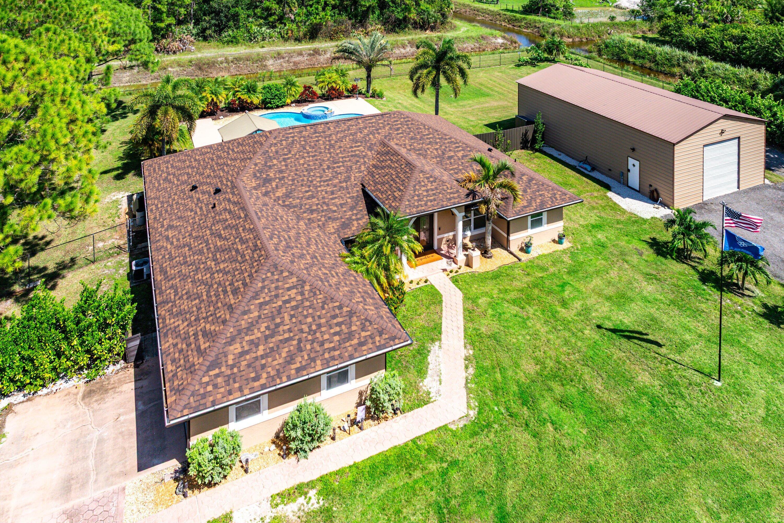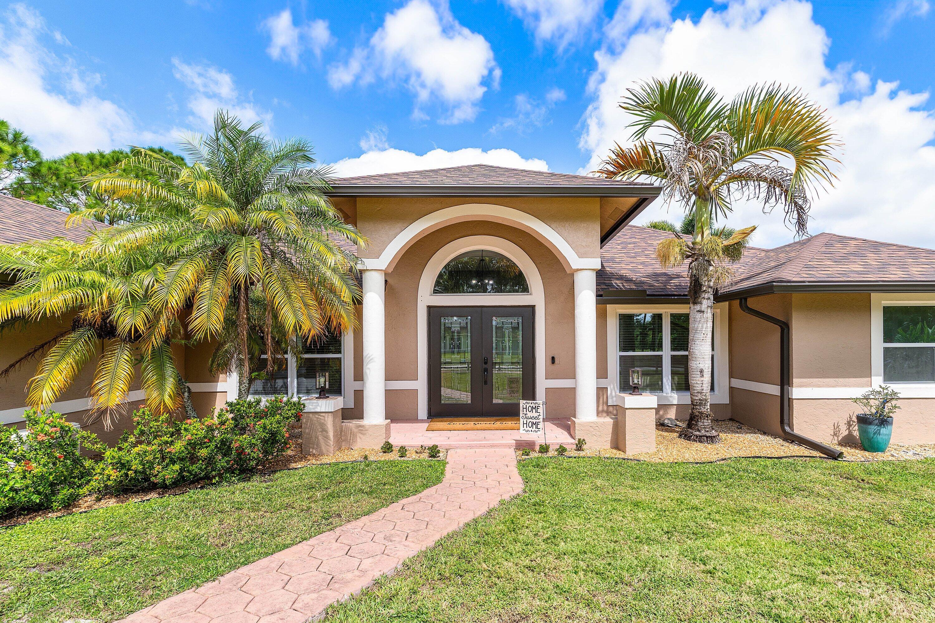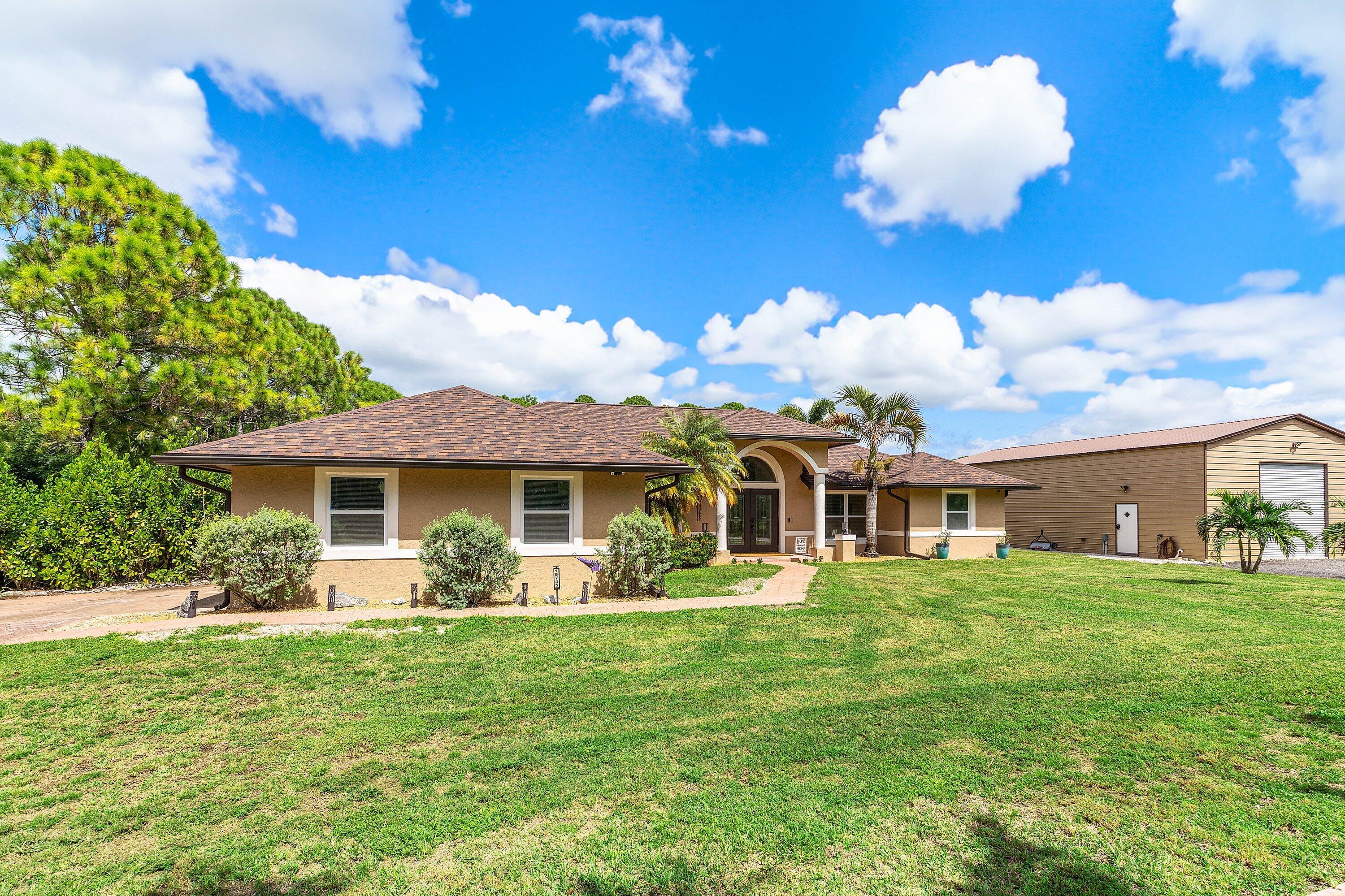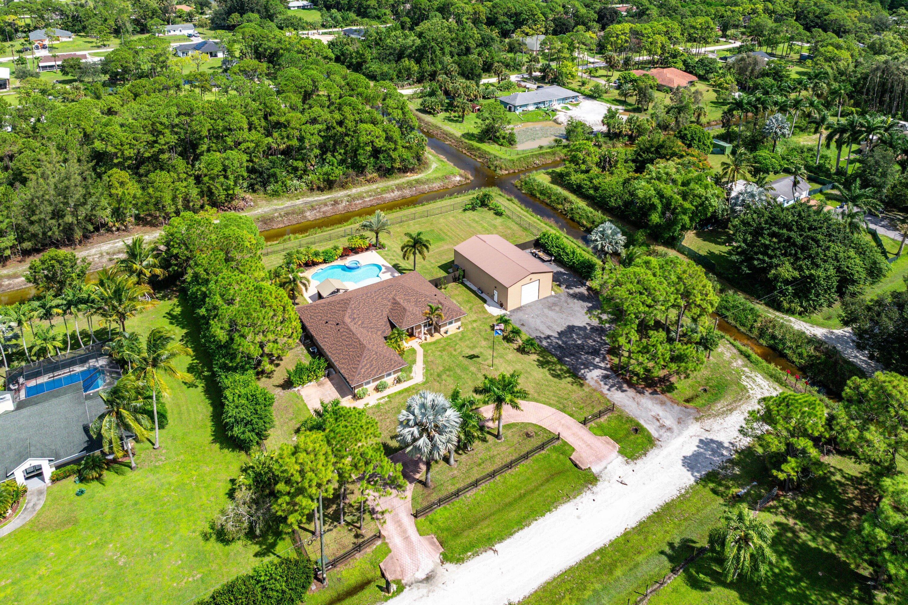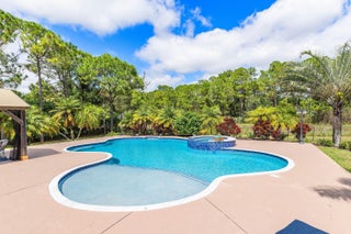 WELCOME HOME This well appointed gem is resting on a premium 1.47 acre lot and boasting 4 bedrooms, 3 full baths, enormous 40' x 25' sparkling saltwater and heated pool with waterfall spa, 2 car attached garage and a spectacular (1500 sqft) 2021 built shop, upgrades and updating galore, hurricane impact windows and doors, 2025 roof, paved road coming before 2026 and this beauty is in a superb location! ENTERING the decorative circular driveway you will discover that this rare find is resting on a high and dry fully fenced private corner lot with no pond and over 500' of waterfront. The grand covered entry brings you inside the double front doors where you are greeted by 13' vaulted ceiling, rounded corners, extensive millwork throughout and solid core doors, windows galore and (CLICK)and loads of natural lighting, spectacular kitchen that features; 42 inch cabinets with countless pullouts, pantry, soft close cabinets and drawers, Samsung stainless steel appliance package, quartz counters, glass backsplash, stainless steel farm sink, sink RO system, spacious bar with shiplap wall and a lovely breakfast nook that overlooks the pool and abundant green space. PASSING THROUGH you will find a modern farm house feel, dynamite split floor plan, that this beauty is very well maintained, stunning floor to ceiling fireplace with pecky cypress mantle and shelves, luxury vinyl plank flooring throughout, freshly painted interior, beautiful archways, lighting, fans and outlets updated throughout, a full cabana bath with Echo self opening toilet with bidet and auto flush, many closet systems, smart mirrors, Echobee thermostat, extra deep second bath tub, convenient desk cubby in bedroom two, under AC laundry room with front loading Samsung package, folding shelf, cube storage and charming shiplap wall. And hello elegant master suite boasting a pool and green space view, tray ceiling, his and hers walk-in closets with built-in closet systems, deluxe soaking tub, spacious walk-in sports shower with accent wall, his and hers vanities, linen closet and a design that is exquisite! STEPPING OUTSIDE brings you into a your very own private oasis... 30' x 13' lanai, recently resurface and impressive 40' x 25' 28,000+ gallon pool that comes with a very high-end robot pool cleaner that I call, Pool Boy, 6+ person waterfall spa, 55' x 47' pool patio, gazebo, freshly painted exterior, dead end street with extra seclusion and lush mature, pine trees, loads of palms such as; queen, foxtail, blue/Bismarck, Christmas, bottle, robellini and many others, (3) convenient driveways, irrigation system. Simply, a perfect space for quiet time, cozy fires, family gatherings, entertaining and enjoying Florida living at its best. HELLO SHOP, SAVINGS, PEACE OF MIND & CONVENIENCE: The (1500 sqft) 2021 shop features; 12' x 10' roll up front door, 9' x 8' rear roll up door with safety gate, swing door, 6" thick concrete slab, 60 AMP service, water, internet, Ring alarm system, (3) Blink cameras, workbench sink, bathroom with sink and toilet, partially insulated, can hold (8) standard size cars and there is a convenient hidden outdoor storage area on the east side to keep items out of view. Electricity savings via the roof ridge vent and the hybrid electric heat pump water heater can save you up to 77% in annual energy costs versus a comparable standard electric water heater--that's $601 per year in potential energy savings! And there is a Ring alarm system and Blink camera system with six cameras, no flood insurance is required, high speed fiber Internet, countless smart home features, advanced water system, attached (2) car garage features a mini split, the A.O. Smith Signature 900 80-gallon smart hybrid heat pump water heater provides efficient and reliable hot water for 5+ person households, adapts to local water quality for added tank protection and the road has already been approved to be paved and will completed on or before 2026 and much more! LOCATION LOCATION LOCATION The Acreage is located in Palm Beach County, which is home to one of Florida's best public school systems and some of the country's most rigorous public magnet and private schools in the nation as recognized by U.S. New & World Report, the New York Times and sitting just a few miles away from the Palm Beach State College. And from your own yard residents can enjoy year-around farm-to-table living, taking classes in the community and learning about the full spectrum of food production and healthy eating. Along with, this gem is just minutes to everything one could possibly desire; shopping and dining just around the corner and nine quaint parks with countless year-round outdoor activities such as; free concerts at the community amphitheater, play grounds and picnic areas with grill pavilions, fishing, skate and equestrian parks, fitness and equestrian trails, football, baseball and soccer fields, tennis, basketball, volleyball and racquetball courts and is located just minutes to everything one could possibly desire; Florida's Turnpike, I-95, Palm Beach international Airport, arts, entertainment, world class equestrian shows and facilities, beaches, theater, golf, business and economic development, education, green living and countless activities for all ages, Simply, the best of everything and your perfect Florida retreat. COME AND SEE WHY The Acreage is so sought after and take in the fresh country air and peaceful sounds of nature. Build a guest house, kids play house, garden and bring your toys, pets or just about anything your heart desires... The possibilities are endless and there is no HOA! Come and enjoy your life away from the hustle and bustle and your evenings gazing at the stars from your spa. Be sure to check out the VIP discounts on site.