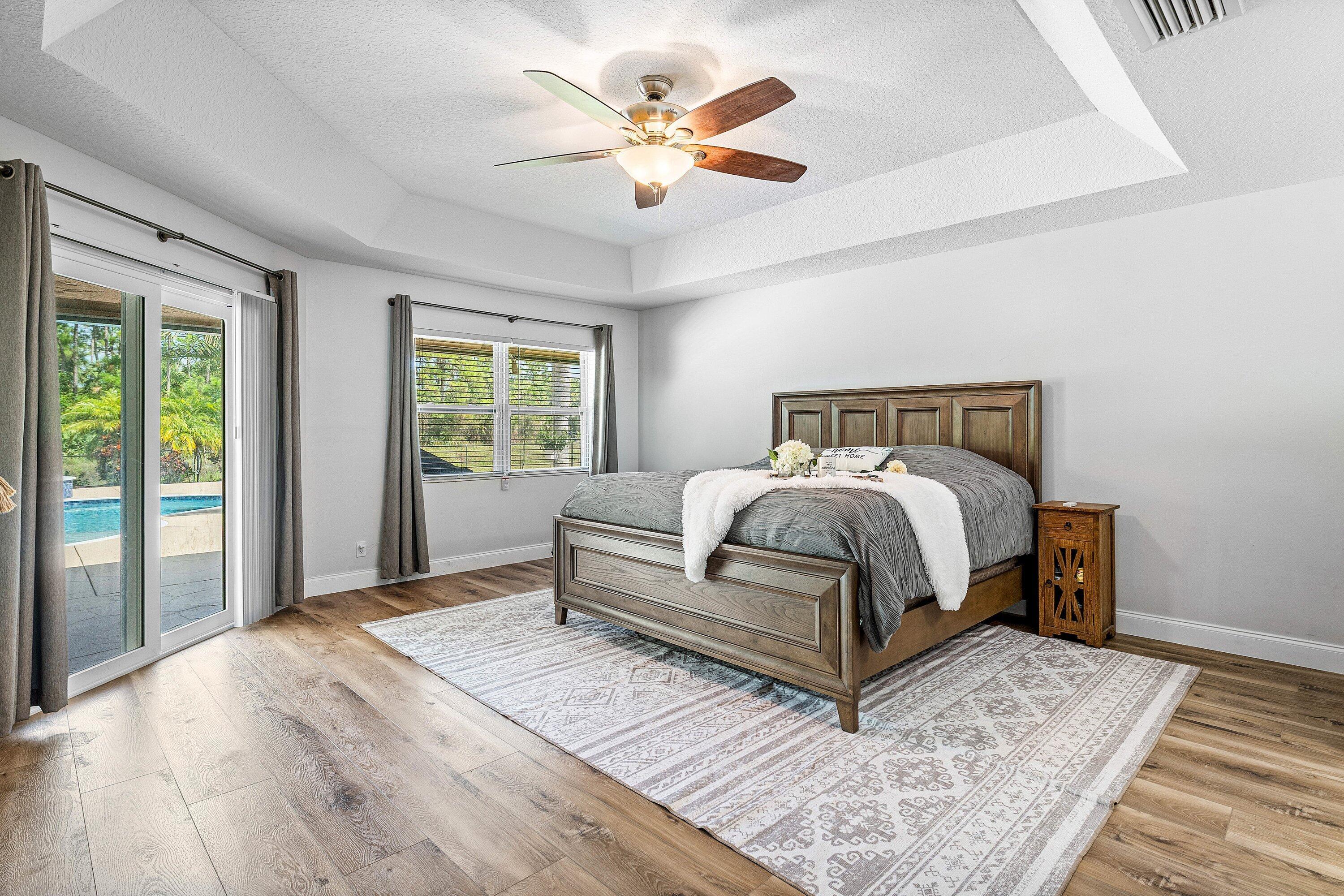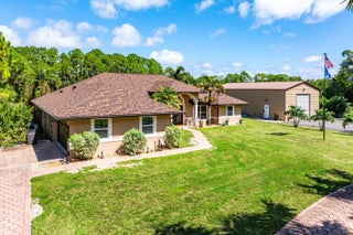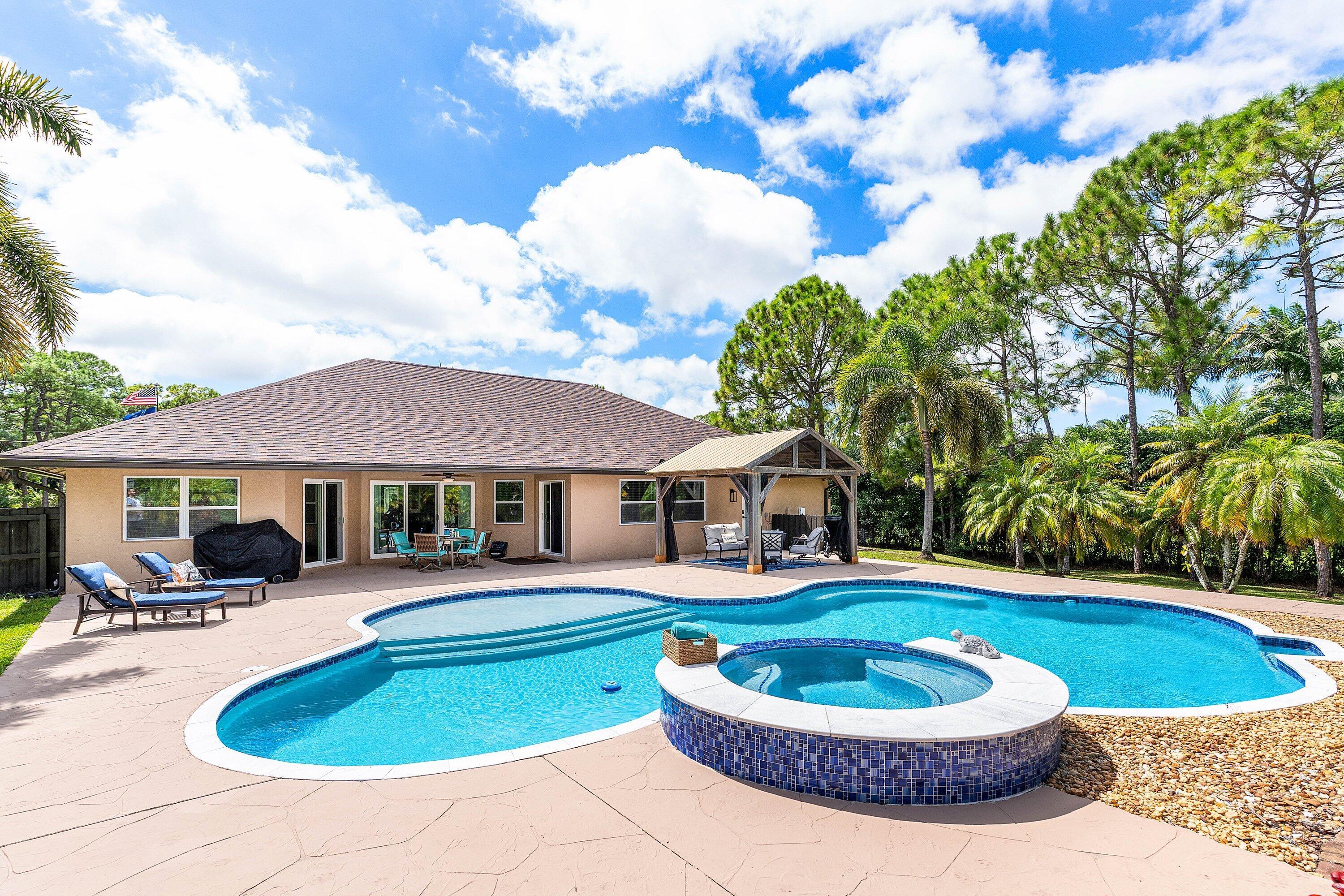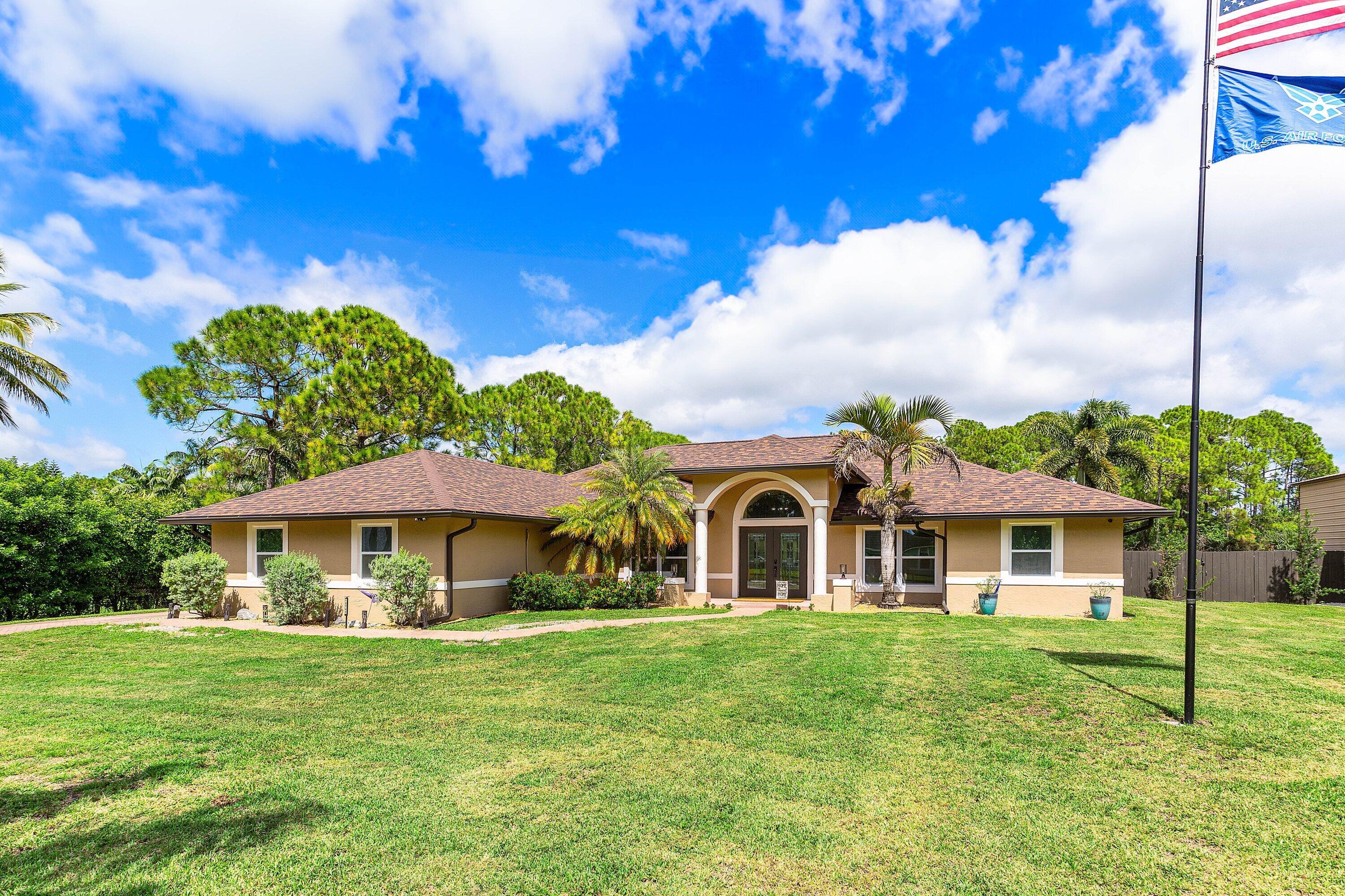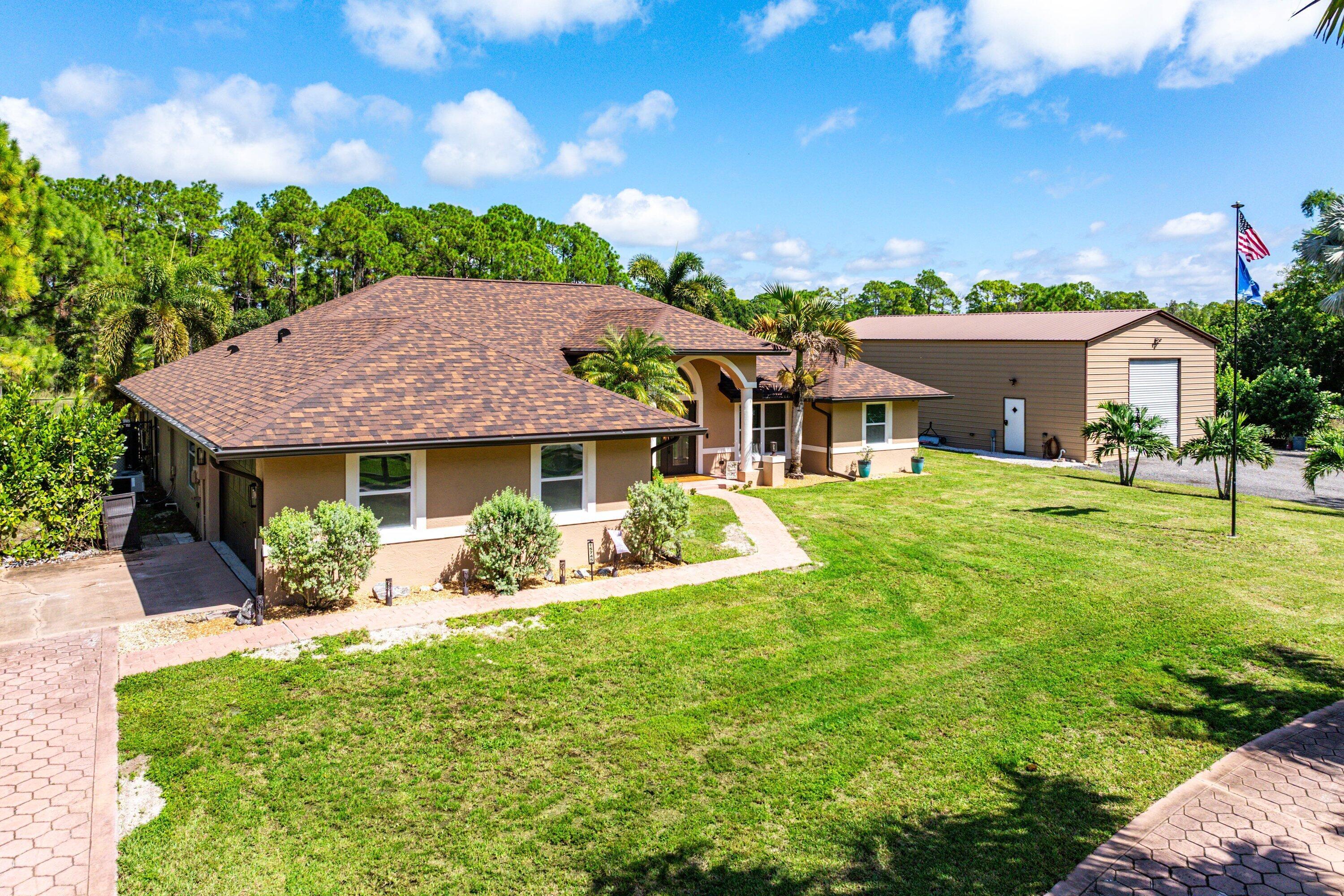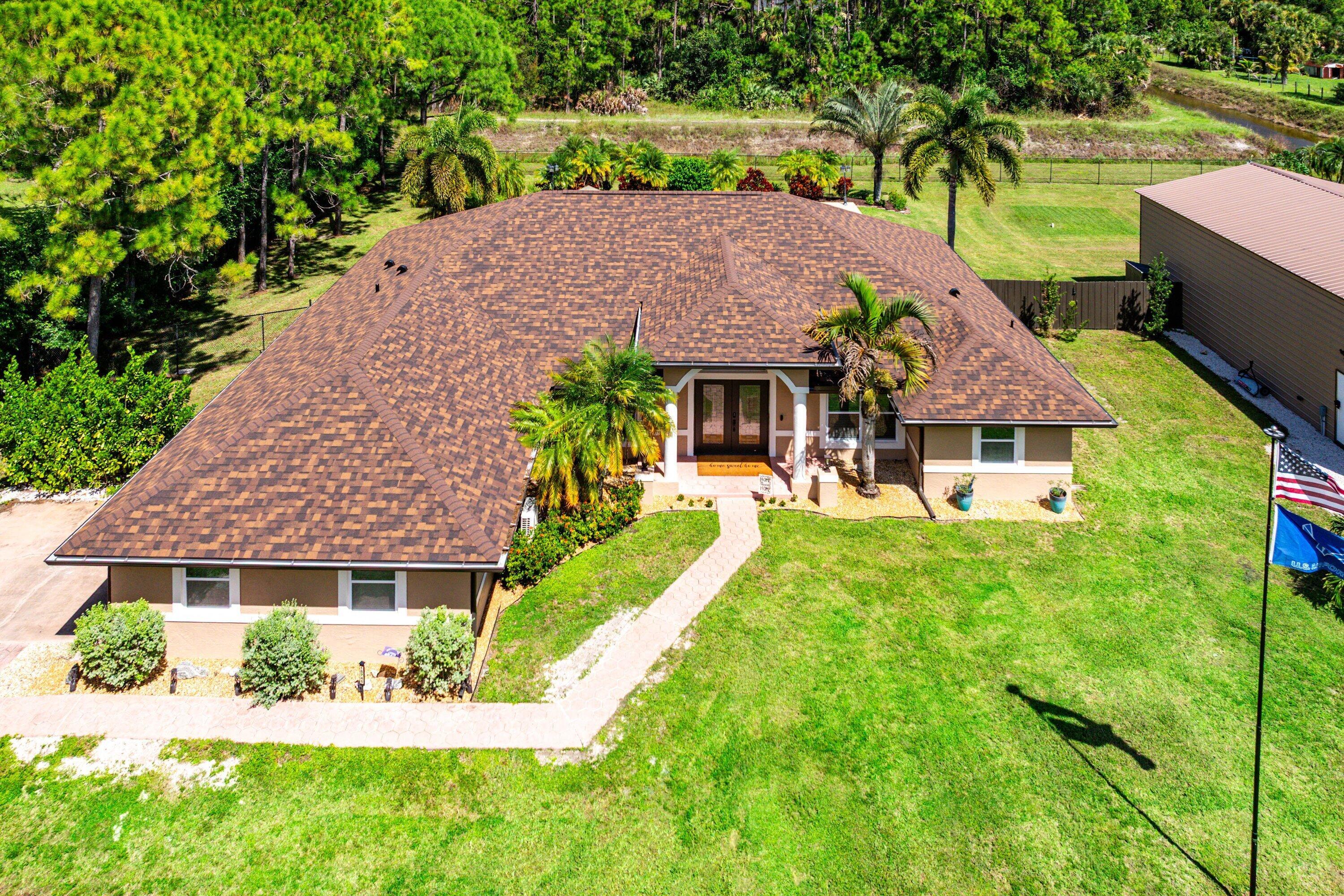 WELCOME HOME This well appointed gem is resting on a premium 1.47 acre lot and boasting 4 bedrooms, 3 full baths, enormous 40' x 25' sparkling saltwater and heated pool with waterfall spa, 2 car attached garage and a spectacular (1500 sqft) 2021 built shop, upgrades and updating galore, hurricane impact windows and doors, 2025 roof, paved road coming before 2026 and this beauty is in a superb location! ENTERING the decorative circular driveway you will discover that this rare find is resting on a high and dry fully fenced private corner lot with no pond and over 500' of waterfront. The grand covered entry brings you inside the double front doors where you are greeted by 13' vaulted ceiling, rounded corners, extensive millwork throughout and solid core doors, windows galore and (CLICK)and loads of natural lighting, spectacular kitchen that features; 42 inch cabinets with countless pullouts, pantry, soft close cabinets and drawers, Samsung stainless steel appliance package, quartz counters, glass backsplash, stainless steel farm sink, sink RO system, spacious bar with shiplap wall and a lovely breakfast nook that overlooks the pool and abundant green space. PASSING THROUGH you will find a modern farm house feel, dynamite split floor plan, that this beauty is very well maintained, stunning floor to ceiling fireplace with pecky cypress mantle and shelves, luxury vinyl plank flooring throughout, freshly painted interior, beautiful archways, lighting, fans and outlets updated throughout, a full cabana bath with Echo self opening toilet with bidet and auto flush, many closet systems, smart mirrors, Echobee thermostat, extra deep second bath tub, convenient desk cubby in bedroom two, under AC laundry room with front loading Samsung package, folding shelf, cube storage and charming shiplap wall. And hello elegant master suite boasting a pool and green space view, tray ceiling, his and hers walk-in closets with built-in closet systems, deluxe soaking tub, spacious walk-in sports shower with accent wall, his and hers vanities, linen closet and a design that is exquisite! STEPPING OUTSIDE brings you into a your very own private oasis... 30' x 13' lanai, recently resurface and impressive 40' x 25' 28,000+ gallon pool that comes with a very high-end robot pool cleaner that I call, Pool Boy, 6+ person waterfall spa, 55' x 47' pool patio, gazebo, freshly painted exterior, dead end street with extra seclusion and lush mature, pine trees, loads of palms such as; queen, foxtail, blue/Bismarck, Christmas, bottle, robellini and many others, (3) convenient driveways, irrigation system. Simply, a perfect space for quiet time, cozy fires, family gatherings, entertaining and enjoying Florida living at its best. HELLO SHOP, SAVINGS, PEACE OF MIND & CONVENIENCE: The (1500 sqft) 2021 shop features; 12' x 10' roll up front door, 9' x 8' rear roll up door with safety gate, swing door, 6" thick concrete slab, 60 AMP service, water, internet, Ring alarm system, (3) Blink cameras, workbench sink, bathroom with sink and toilet, partially insulated, can hold (8) standard size cars and there is a convenient hidden outdoor storage area on the east side to keep items out of view. Electricity savings via the roof ridge vent and the hybrid electric heat pump water heater can save you up to 77% in annual energy costs versus a comparable standard electric water heater--that's $601 per year in potential energy savings! And there is a Ring alarm system and Blink camera system with six cameras, no flood insurance is required, high speed fiber Internet, countless smart home features, advanced water system, attached (2) car garage features a mini split, the A.O. Smith Signature 900 80-gallon smart hybrid heat pump water heater provides efficient and reliable hot water for 5+ person households, adapts to local water quality for added tank protection and the road has already been approved to be paved and will completed on or before 2026 and much more! LOCATION LOCATION LOCATION The Acreage is located in Palm Beach County, which is home to one of Florida's best public school systems and some of the country's most rigorous public magnet and private schools in the nation as recognized by U.S. New & World Report, the New York Times and sitting just a few miles away from the Palm Beach State College. And from your own yard residents can enjoy year-around farm-to-table living, taking classes in the community and learning about the full spectrum of food production and healthy eating. Along with, this gem is just minutes to everything one could possibly desire; shopping and dining just around the corner and nine quaint parks with countless year-round outdoor activities such as; free concerts at the community amphitheater, play grounds and picnic areas with grill pavilions, fishing, skate and equestrian parks, fitness and equestrian trails, football, baseball and soccer fields, tennis, basketball, volleyball and racquetball courts and is located just minutes to everything one could possibly desire; Florida's Turnpike, I-95, Palm Beach international Airport, arts, entertainment, world class equestrian shows and facilities, beaches, theater, golf, business and economic development, education, green living and countless activities for all ages, Simply, the best of everything and your perfect Florida retreat. COME AND SEE WHY The Acreage is so sought after and take in the fresh country air and peaceful sounds of nature. Build a guest house, kids play house, garden and bring your toys, pets or just about anything your heart desires... The possibilities are endless and there is no HOA! Come and enjoy your life away from the hustle and bustle and your evenings gazing at the stars from your spa. Be sure to check out the VIP discounts on site.
