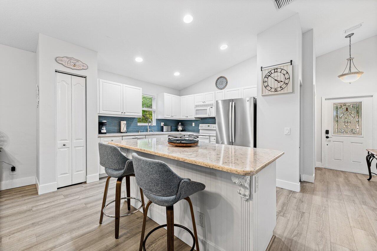 Welcome to this beautifully updated and lovingly cared-for 4-bedroom, 2-bath home with a 2-car garage, set on an oversized premium lot that backs to lush green preserves for exceptional privacy and garden views. From the moment you arrive, it's clear this home has been meticulously maintained and thoughtfully improved with high-quality upgrades completed between mid-2022 and late-2023 including a new metal roof, new A/C system, renovated kitchen, new flooring, and fresh interior and exterior paint. Inside, the home shines with a bright, open floor plan (the most sought-after layouts in the community) blending natural light, volume, and flow. The kitchen offers a spacious island perfect for entertaining, while the living and dining areas overlook the tranquil yard framed by mature trees.Bathrooms feature clean, neutral finishes that feel timeless and relaxing. A premium was originally paid for this lot, chosen for its long garden views and peaceful setting. One of the four bedrooms is currently configured as a home office (but easily converted to a 4th bedroom), providing flexible space for modern living. Enjoy all the amenities this wonderful community has to offer a recreation center, fitness facilities, boat ramp, and boat storage plus direct access to the Indian River and the ocean beyond. This is the perfect blend of comfort, care, and coastal Florida lifestyle.