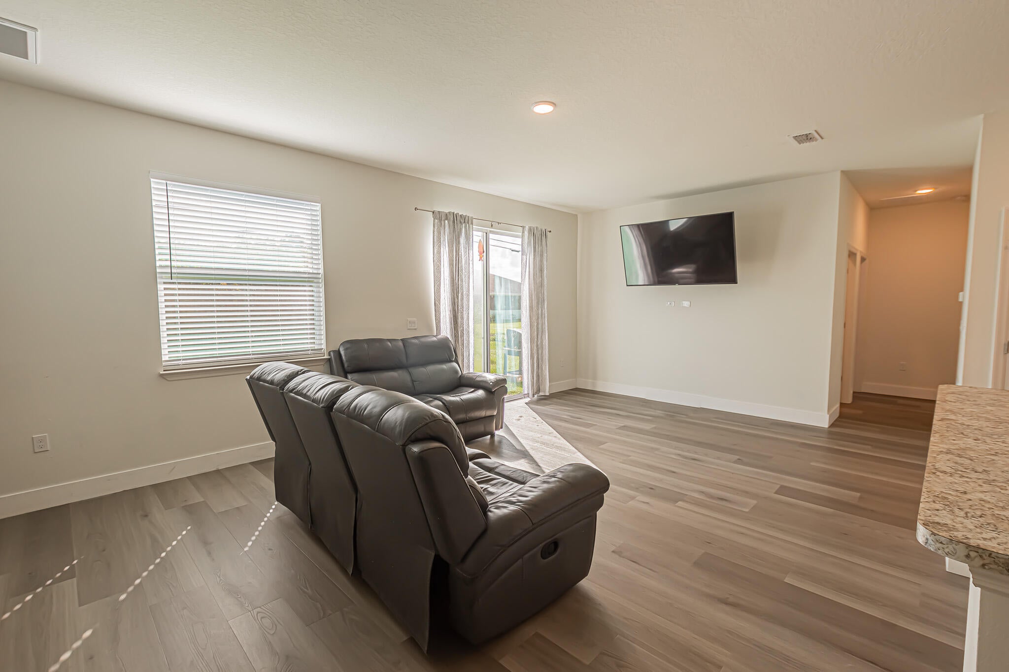 Beautiful 4 Bedroom, 2 Bath, 2-Car Garage Home Built in 2022! Solid CBS construction with an open floor plan and modern finishes throughout. The kitchen features stainless steel appliances, a breakfast bar, pantry, built-in microwave, disposal, and center island--perfect for everyday living and entertaining. The spacious primary suite includes a walk-in closet, dual vanities, and a walk-in shower. Interior highlights include LVT flooring, and carpet in the bedrooms. Big backyard Move-in ready and designed for comfort and style!