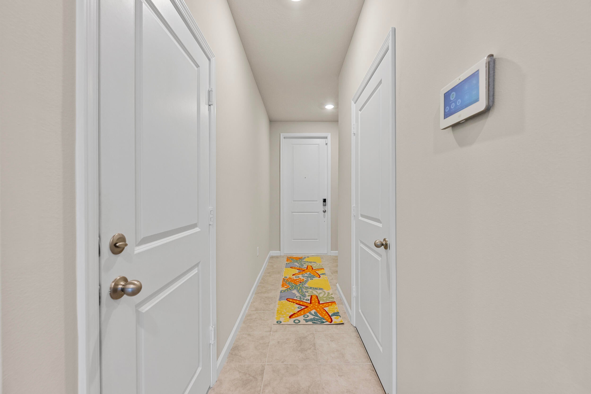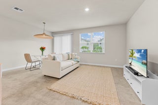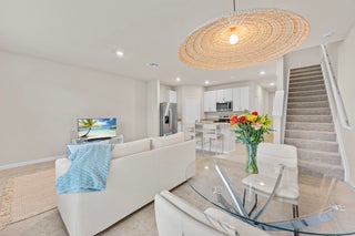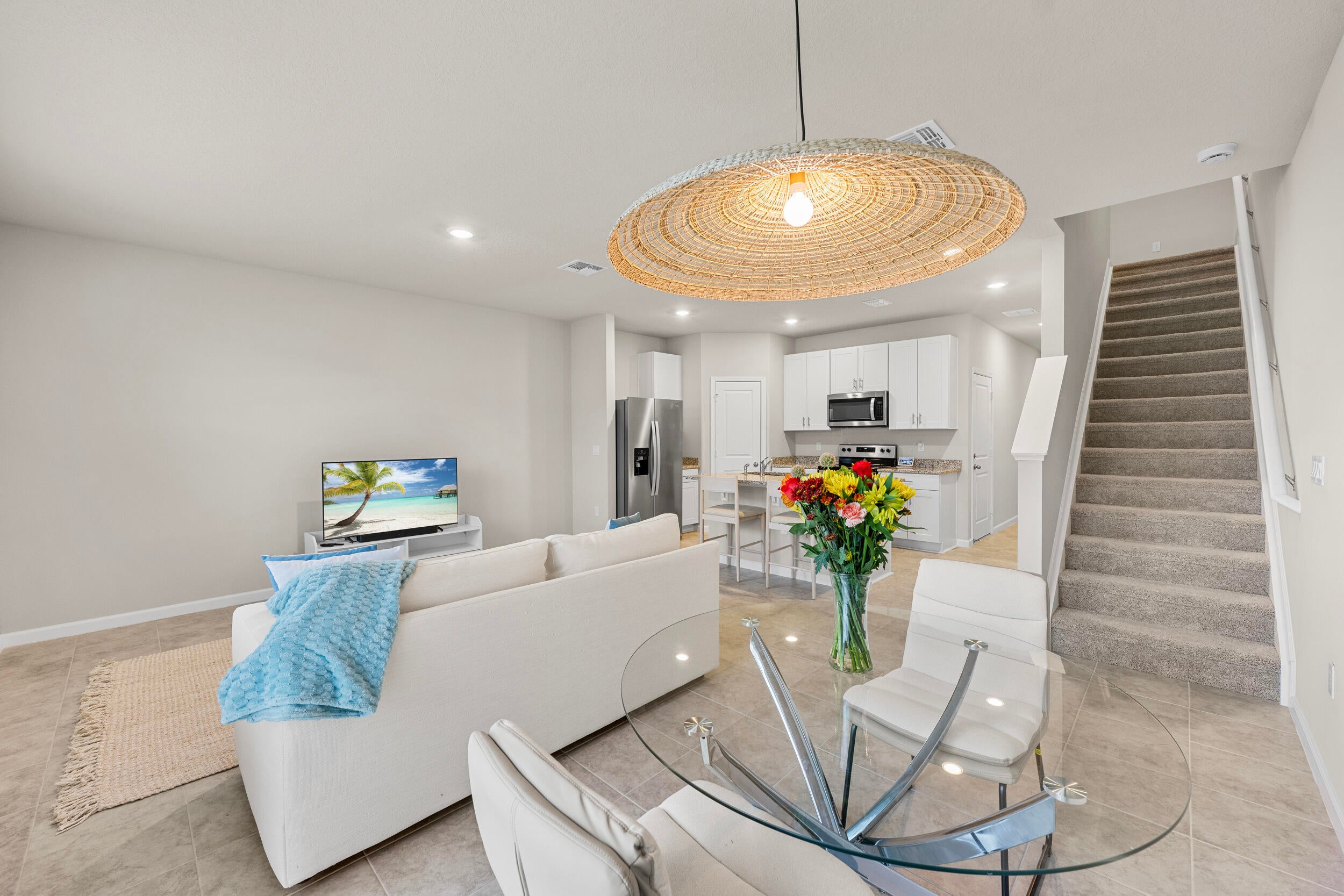 Welcome to this gently lived-in 3 B/R, 2.5 BA townhome w/1-car garage. Situated in a quaint and highly desirable gated community. Over 1,400 sq ft of thoughtfully designed living space, this home offers modern finishes and low-maintenance living. The open-concept main level features a spacious kitchen with granite countertops, white shaker cabinets, center island, and a full stainless steel appliance package - perfect for entertaining and everyday living. Impact glass throughout adds peace of mind and energy efficiency. Upstairs, you'll find a versatile loft area, a serene master suite with walk-in closet and private ensuite bath, a fully equipped laundry room, and two additional bedrooms. Enjoy community amenities including a cabana and refreshing pool. Conveniently located with easyaccess to I-95, nearby parks, water parks, schools, shopping, restaurants, and medical facilities. Fast closing availableready for your personal touches. Don't miss this exceptional opportunity!