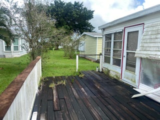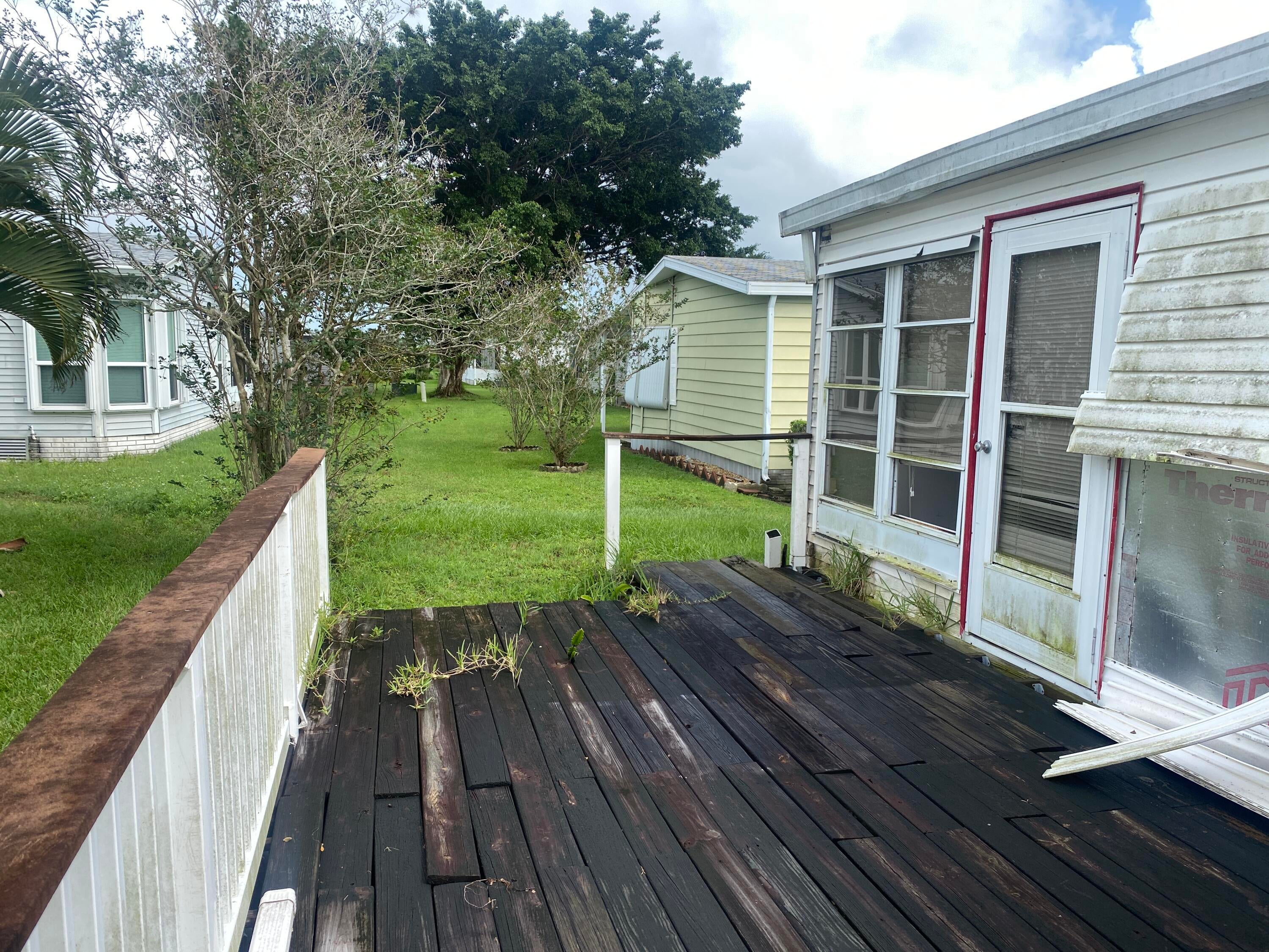Mobile home located in Savanna Club where you own the land! A unique resort lifestyle, 55+ community, with amenities including an 18-hole golf course, Performing Arts Center, four fully staffed clubhouses, a Tennis & Fitness Center and many social events. and just 20 minutes from the ocean. The property is situated on a quiet cul-de-sac street, surrounded by well-maintained properties and great neighbors! It features a large attached carport and open wood deck. Large open floor plan with big living room, dining room and kitchen with ample cabinets/counters. Three bedrooms plus den, two full baths and laundry room. This property needs significant repairs, so cash offers only, and sold as-is, all room sizes are aprx. Buyer will be required to sign a HHA for exterior code violations.