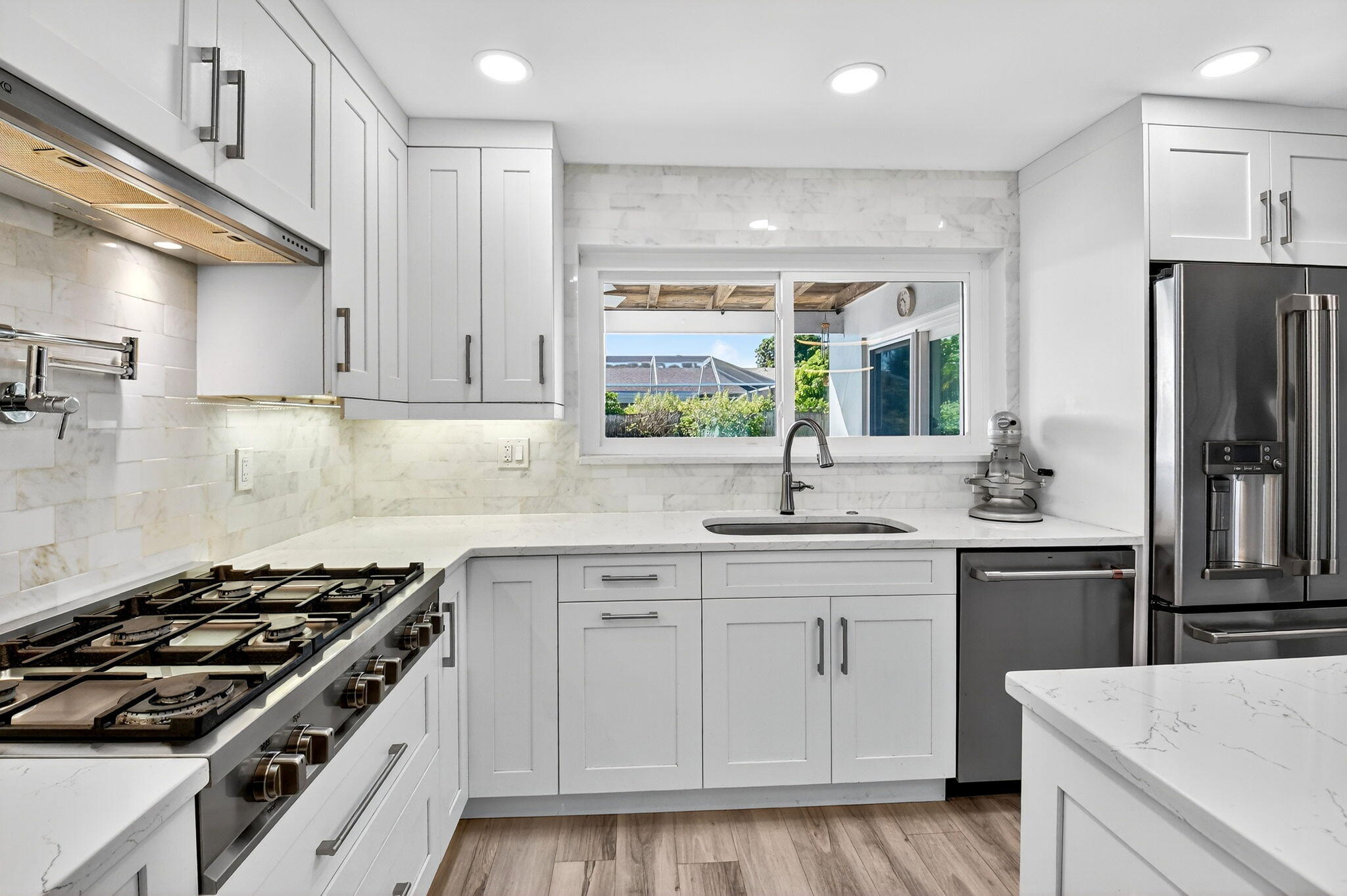 Won't last!! Remodeled pool home in the very desirable area of Forest Hills/Chapel Hill. A Gourmet's dream home!Huge expanded kitchen with professional Bertazzoni gas cooktop. Electric ovens, pot filler, large island. Remodeled bathrooms. Hurricane Impact windows and doors. Two Bedrooms plus den/dining room that could be converted to office or third bedroom. Tankless gas water heater. A/C replaced in 2019. Roof replaced in 2014. Large, fenced yard with pool, covered patio. One car garage and large driveway. Minutes from downtown Delray Beach and the Beach. Quaint quiet neighborhood.