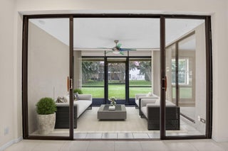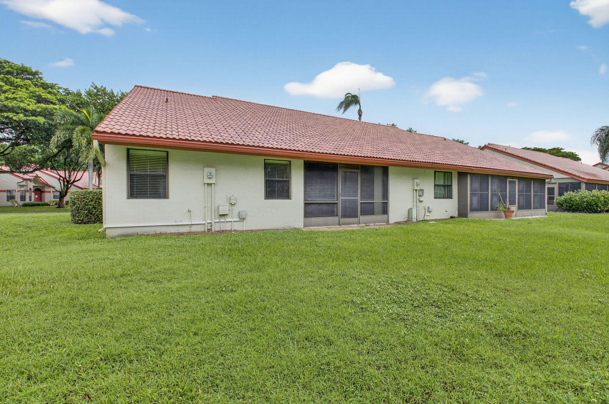 Welcome to this beautifully maintained 2BR villa with a versatile den/office--easily used as a 3rd bedroom--located in the sought-after gated 55+ community of The Lexington Club. Bright and spacious with soaring vaulted ceilings, this home offers abundant natural light and an open, airy feel.The charming eat-in kitchen features stainless steel appliances and modern finishes. Enjoy the enclosed lanai with hurricane-impact glass, ideal for relaxing year-round.Highlights include: One-car garage Remodeled bathrooms Newer hot water heater (2019) AC system replaced in 2016This move-in-ready home combines comfort, convenience, and an excellent location within a premier active-adult community.HOA FEE INCLUDES Bldg Ins., Roof Maint & Ins, Painting, Landscaping, Water, Pest Control, CABLE TV & WIFI. One pet up to 30 pounds Allowed. Close to Delray Marketplace, Florida's Turnpike and trendy Atlantic Ave.This move-in ready villa is just waiting for its next fortunate owner to call it home. Don't miss out on the opportunity to live in comfort and style in The Lexington Club!