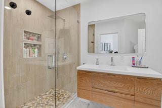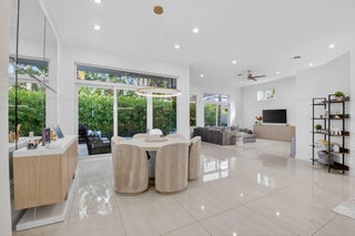 Bright and welcoming, this newly updated open-concept home offers a perfect balance of natural light and modern finishes. The backyard is ideal for relaxing or entertaining. A guest room includes a private ensuite bath, while the third bedroom features elegant built-ins and beautiful bay windows that fill the space with warmth. The kitchen is sleek and functional, showcasing white cabinetry, Quartz countertops, ample storage, and high-end stainless steel appliances.The primary suite is spacious and serene, featuring hardwood floors, plantation shutters with a backyard view, and a newly renovated bath with a freestanding tub, glass-enclosed shower, and Quartz-topped vanities.