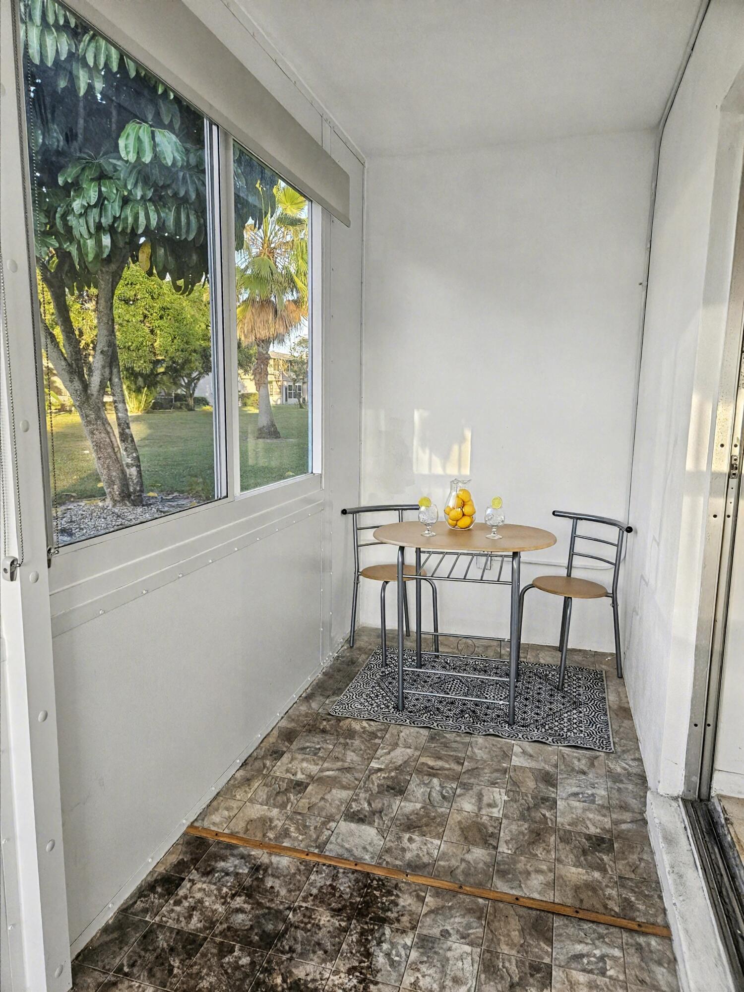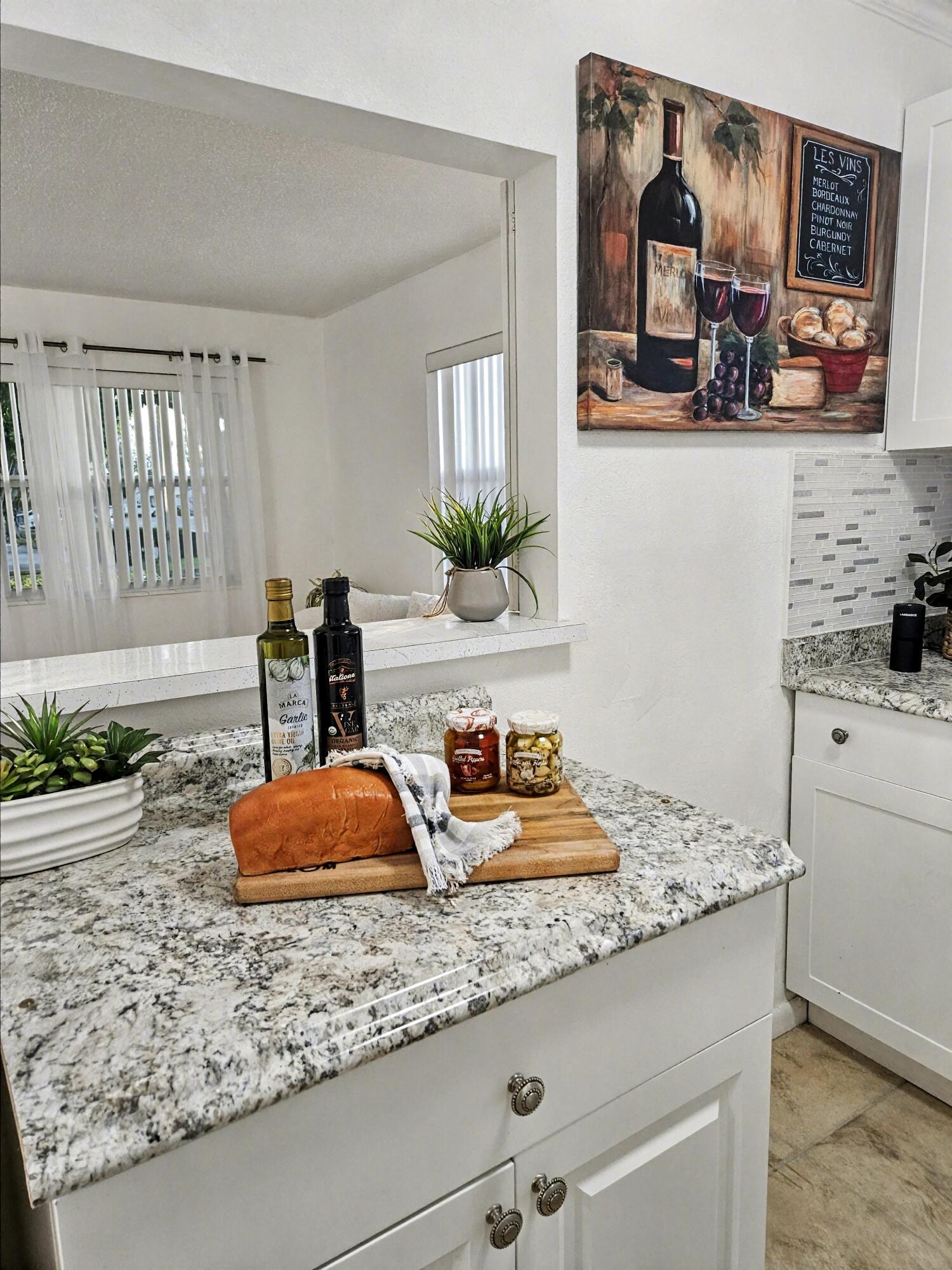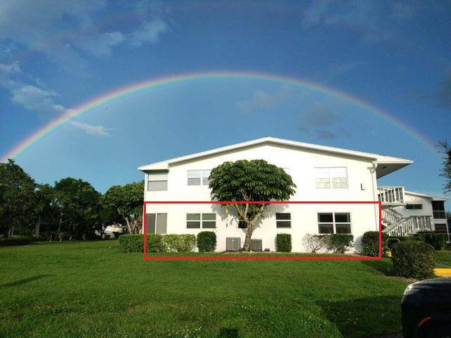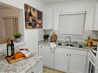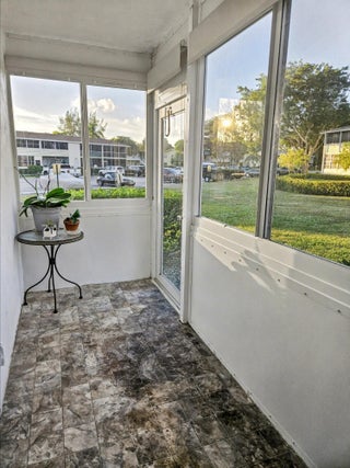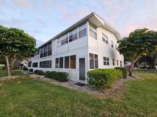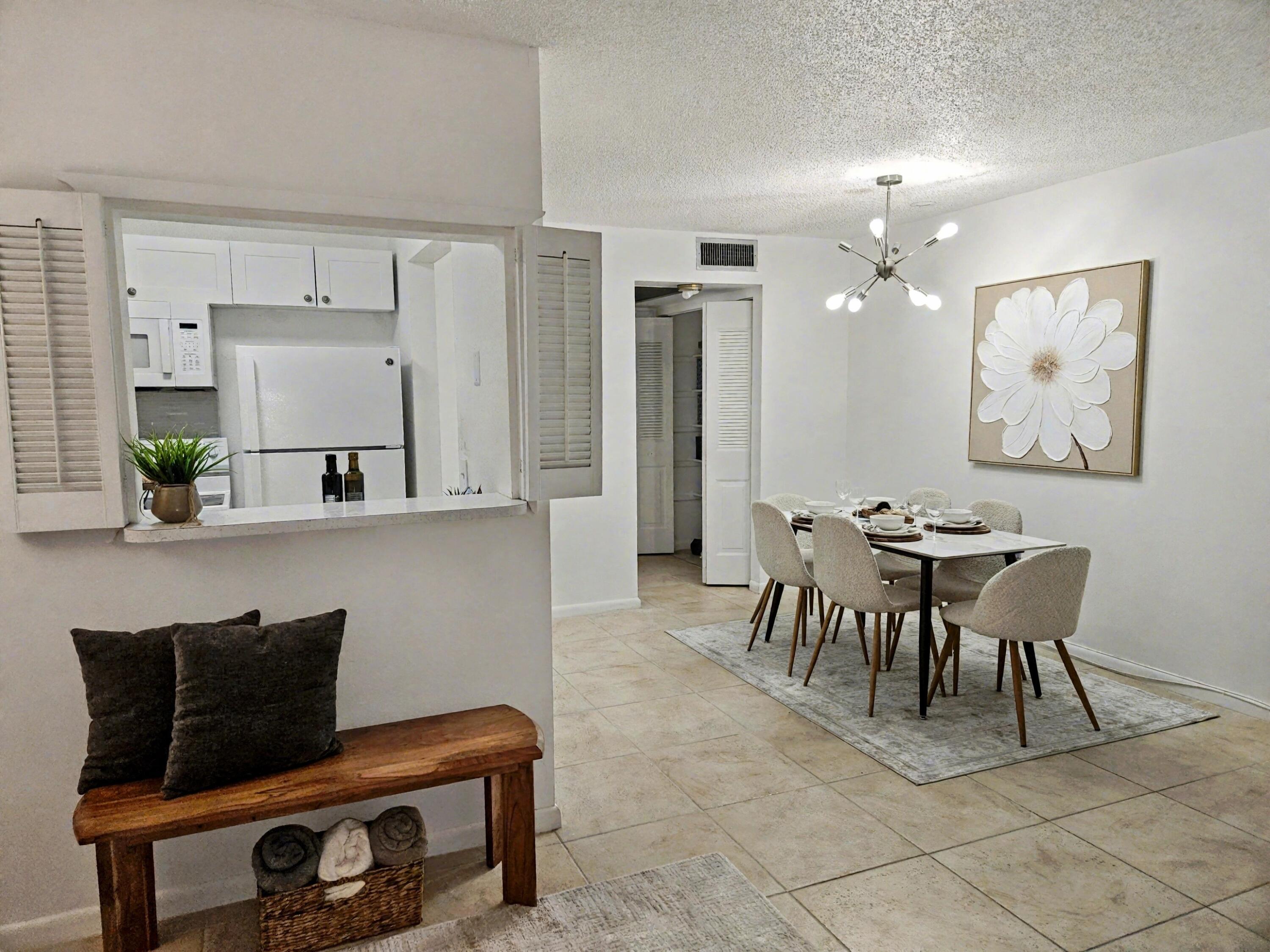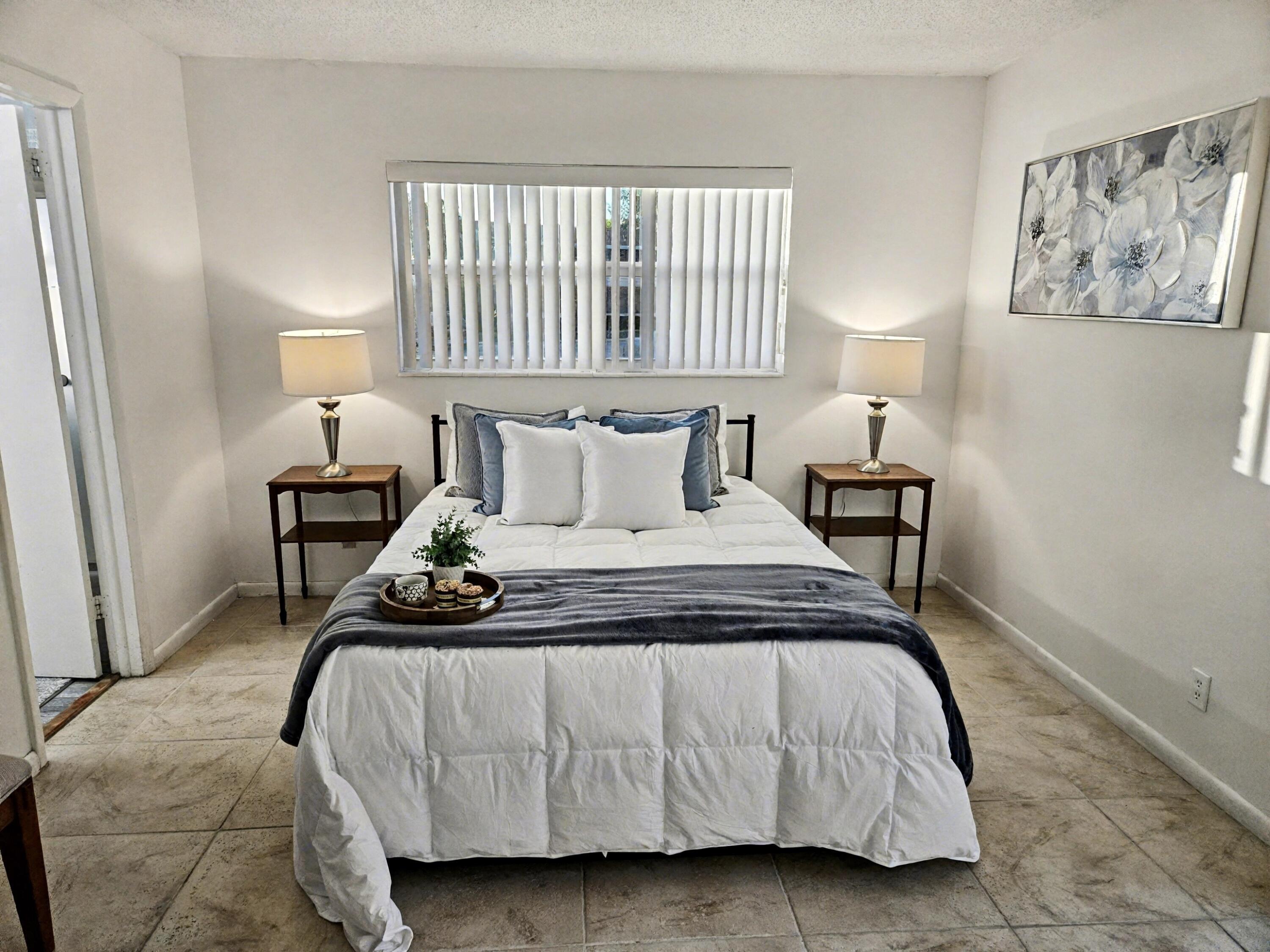 Step into this inviting first-floor corner condo and immediately feel at home. Designed for comfort and convenience, this stylish residence features central AC and hurricane-impact windows for year-round peace of mind. The open layout highlights sleek ceramic tile flooring, tastefully updated bathrooms, new lighting, and crisp white cabinetry complemented by a modern tile backsplash. Enjoy tranquil Florida evenings from your screened-in balcony with sunset views.Community laundry and mail rooms are conveniently located just steps from your door. Outside, discover an active 55+ lifestyle with 24-hour manned security, a courtesy bus, and endless amenities including a clubhouse, fitness center, indoor and outdoor pools, tennis and pickleball courts, shuffleboard, sauna, and even a movie theater. Perfectly situated near the Okeechobee Blvd gate, you'll find shops and restaurants within walking distance, plus quick access to the Turnpike, major highways, dining, pharmacies, and premier shopping destinations.