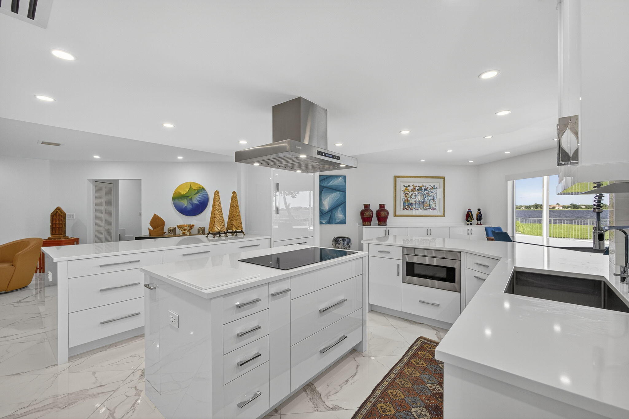 A modern masterpiece. This meticulously renovated contemporary home in the exclusive gated community of Presidential Estates boasts soaring vaulted ceilings and dynamic angular spaces, creating a striking ambiance filled with natural light. Step into the grand foyer, which flows seamlessly into an expansive formal living and dining area, perfect for sophisticated entertaining. The home features 5 spacious bedrooms with versatile living possibilities. The chef's kitchen opens to a cozy den and dining area, all framed by breathtaking views of Lake Mangonia and the sparkling pool. This residence combines serene privacy with the convenience of being moments to WPB's vibrant culture. Experience luxury living with stunning water vistas & modern elegance in the heart of West Palm Beach!