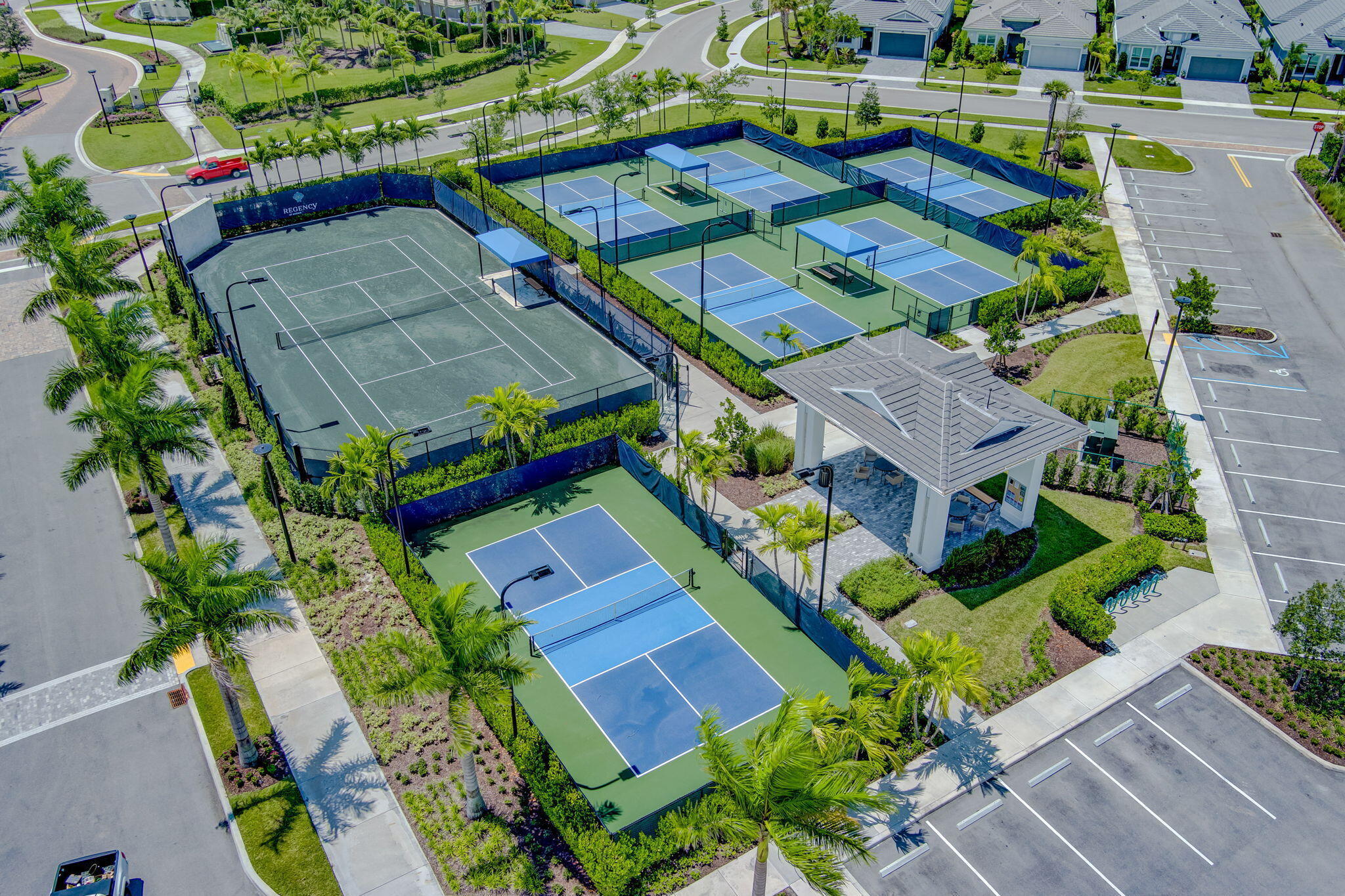 Toll Brothers 55+ community in Palm Beach Gardens, Florida. The Maya Contemporary is most welcoming floor plan, featuring 4 bedroom, 2.5 baths, large kitchen, and extended covered patio with outdoor kitchen and heated spa. Very private location, right across from clubhouse is luxury like a 5 star resort amenities. Walk to the pickleball field, and tennis courts. Resort style clubhouse is a highlight of the community. It has a large pool, fitness center, tennis and pickleball courts.