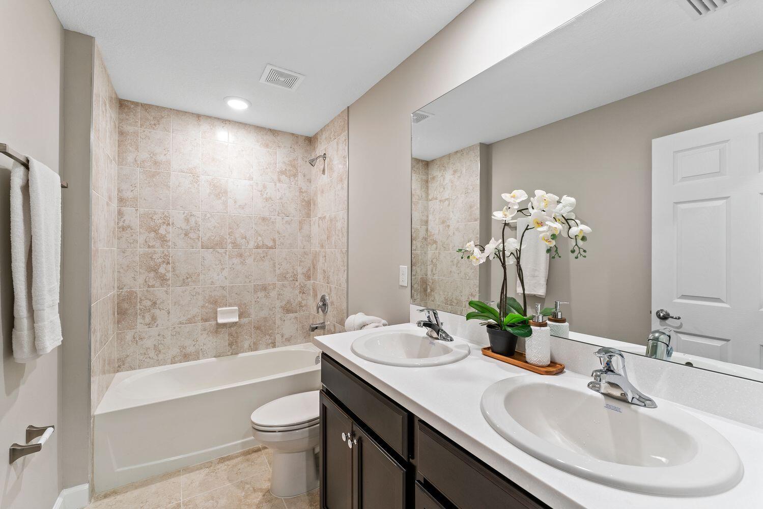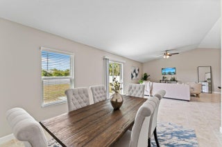 NEW CONSTRUCTION! 1-month free rent (applied to last mo) with12-mo lease, 2- mo free rent with a 24-mo lease at list price. CBS 4 bed, 2 bath, 2-car garage, 1,809 SF, open floor plan, LVP flooring throughout, fenced backyard. Quartz countertops, SS appliances, large island, and pantry. Master suite has walk-in closet, dual sinks, and a beautifully tiled shower, 3 addtl bedrooms share upgraded bath with dual sinks, laundry rm with new washer/dryer, and hurricane shutters. Close to schools, shopping, & highway access. Base rent is $2,625 + $145/mo for smart home features, internet & basic cable, AC filter service and tech fee. Monthly rental price is negotiable, contingent on landlord's approval. All room sizes are approximate. Photos are of model home, same layout & finishes for this home