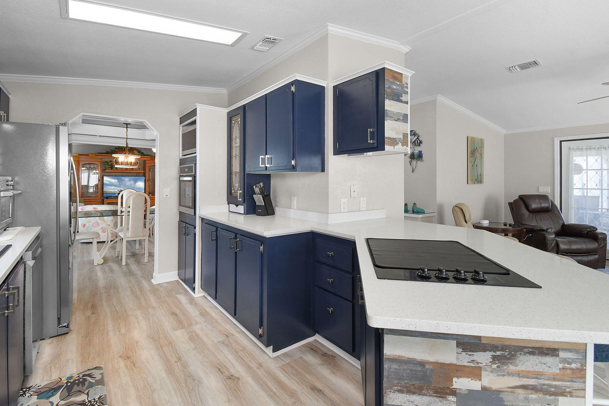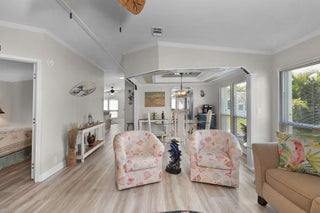 HONEY STOP THE CAR! THIS LAND-OWNED HOME HAS IT ALL! Scraped ceilings, new textured walls, New Quartz kitchen counters with new SS appliances. Luxury vinyl flooring, new vapor-barrier and tie downs, roof 2022, AC 2021, new plumbing, new windows, accordion hurricane shutters. Quartz counter tops in both bathrooms. Comes fully furnished/turn key including Evolution 4 seater golf cart. This is a perfect home for entertaining. Tenant in place beginning January-March at $3,000 a month. Vacant now! Must see!