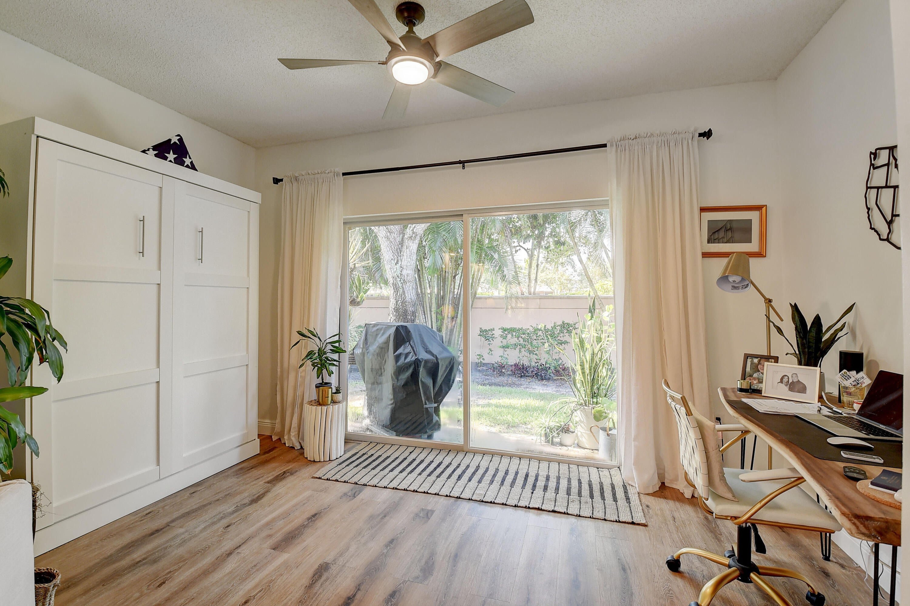 Recently renovated 2/2 condo plus office/ sunroom with and bonus murphy bed. You will feel like you walked into a Better Homes and Gardens feature property when opening the front door. Quartz counters tops, stainless steal appliances and beautiful flooring through out this open and airy floor plan. Only a few minutes walk to the local community pool. Located in the Active 55 and older community of Palm Isles which is just minutes from Delray Beaches Market Place and about 10 mins to Downtown on Atlantic Ave. Palm Isles amenities include multiple tennis and pickleball courts, indoor and outdoor pools great for swimming year round. HOA includes Water, ADP, Cable and internet.