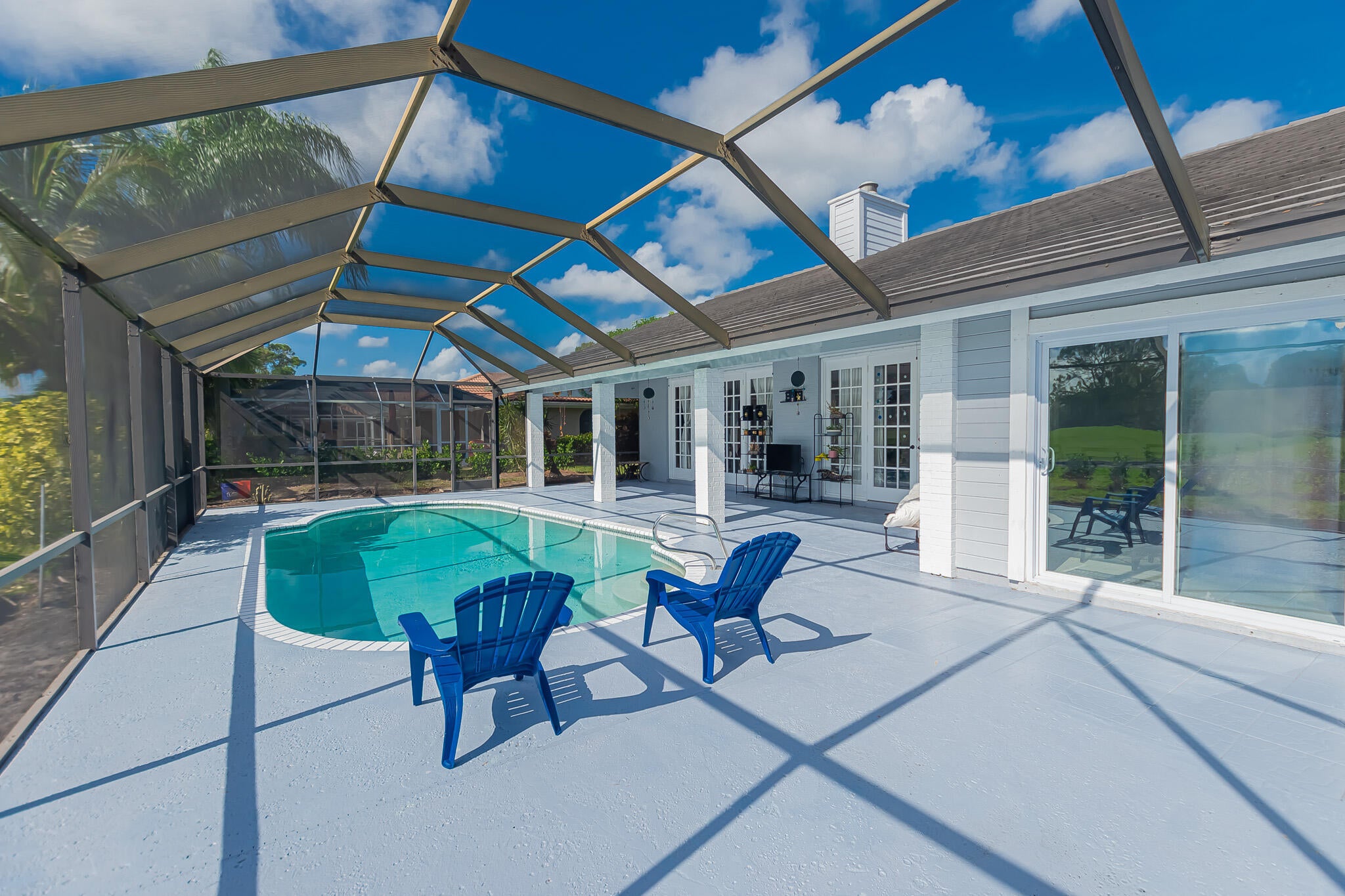 AMAZING GOLF FRONT POOL HOME IN COUNTRY CLUB ESTATES! Impressive 3BR/2.5BA/2.5CG custom home featuring a stunning 2-sided sandstone gas fireplace, 24x24 ceramic tile floors, and wood-look tile in bedrooms. Beautiful kitchen with wood cabinets, granite counters, SS appliances & shiplap ceiling. Updated baths, plantation shutters & formal dining w/tray ceiling. French doors open to a screened gas-heated pool & lanai overlooking the golf course. 2018 roof, impact windows & zoned A/Cs. Prime St. Lucie West location near shopping, dining & I-95!