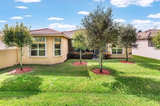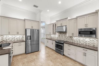 This beautiful Julia model features 3 bedrooms and a den, 3.5 baths and a private backyard with a garden view. The kitchen comes equipped with upgraded cabinetry, pot and pan drawers and lower cabinet pullouts, stainless steel appliances, an exterior vented hood and more. Additional upgrade highlights throughout include brick-laid neutral tile through main living areas, lots of bath upgrades, crown molding, tons of hi hats, Hunter Douglas blinds, Ring doorbell, gutters, accordion shutters and more. Please call for details on Valencia Reserve clubhouse renovations including renovation renderings. HOA Fee includes exterior painting of house, lawn care, alarm monitoring, cable and internet.