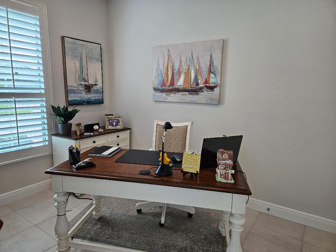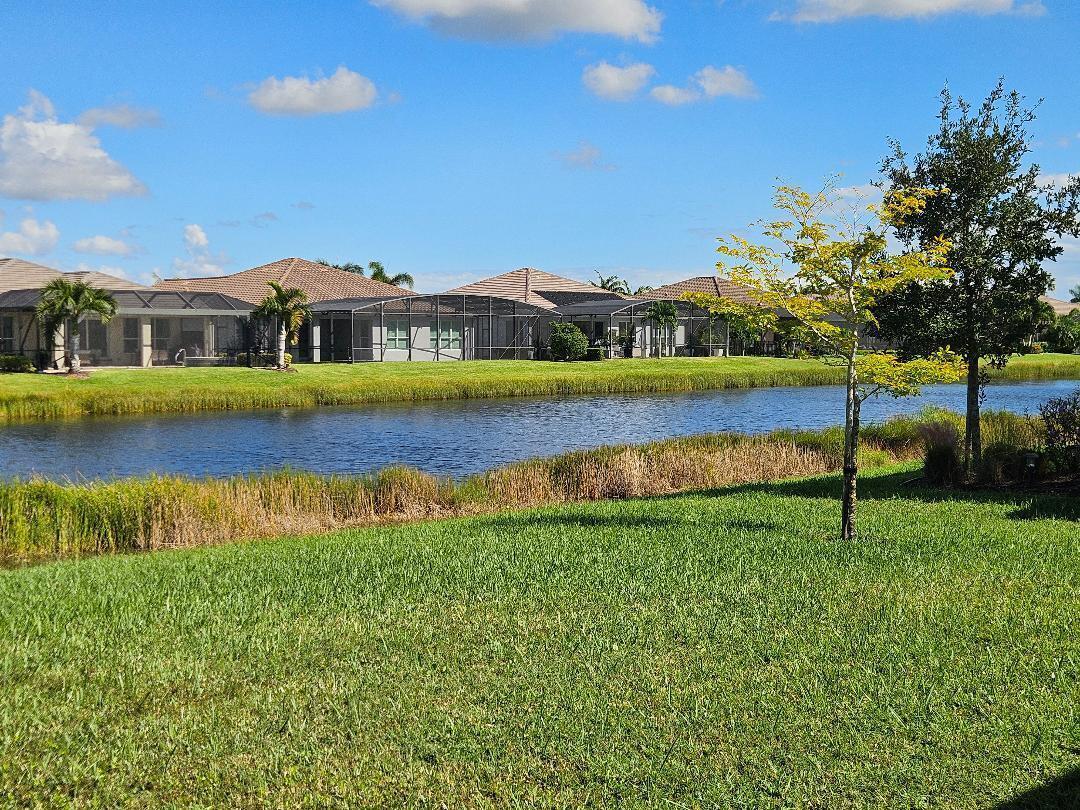 This is a must see lakefront home in exceptional condition (only used 6 months a year by owner). Two bedrooms PLUS separate office/bonus room located in the gated community of Vitalia in Traditions! Beautiful lakefront location looking over a peaceful flowing lake and Luxury homes across water along with a screened/covered 18.4 x 9.4 Liana! The hom Enjoy tile floors through-out the home other then bedrooms, beautiful kitchen cabinetry with pull outs, Gas Range and SS appliances & stylish Plantation Shutters & Stylish ceiling fans. Separate Laundry room with grey high end washer/dryer . Rent includes Internet and Cable television, Lawn Care, Alarm Monitoring, & use of all club house facilities! BEAUTIFULLY remodeled club house includes state of art Exercise Center... (Continued)...with no cost exercise classes almost every day, Billiards, full auditorium with various shows and events, Resort style pool and spa, Putting Greens, selection of Card Rooms, Tennis & Pickleball and all sorts of activities! This home is located in an up-scale & active 55 plus community!