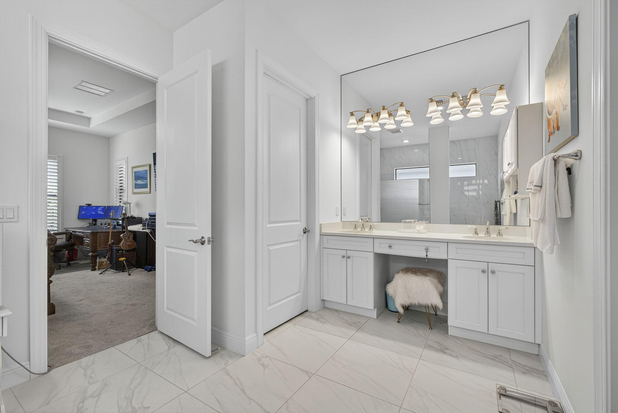 FINISHED IN 2023 - PALM BEACH floor plan with lake view includes 3 bedrooms, 3 full ensuite bathrooms and 1 half powder room. The gourmet kitchen features gas cooktop with hood, quartz counter tops, Plantation shutters throughout, screened-in extended patio, finished closets, upgraded lighting fixture and more throughout the home. Cresswind's amenities & packed activity calendar with pickleball teams, concerts & events.