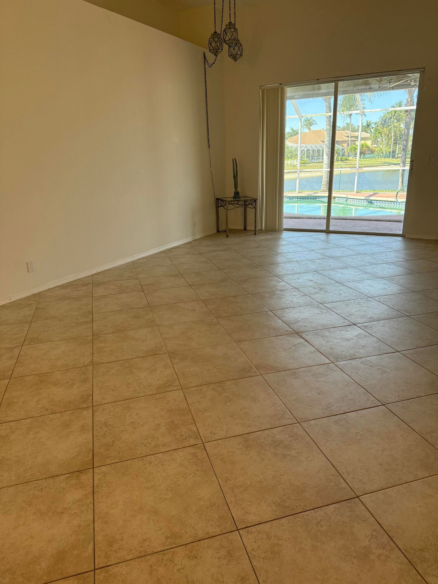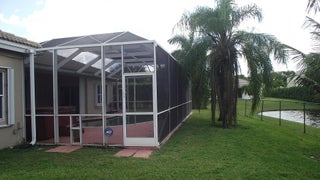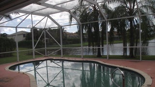 Grand Isles of Wellington with low HOA and stunning wide lakeview. In the heart of world-class equestrian. Near mall. 5 bedrooms, 3 full baths. Private pool and hot tub, screened on beautiful wide water lot. Storm protection shutters. Community clubhouse includes pool, spa, playground, tennis, pickleball, and basketball. Double-door entry, wide open hallway, split bedroom plan. Newer roof and AC. Propane generator. 3-car garage with newer epoxy flooring, split AC in garage, and ceiling fan. Paver driveway. Utility room with washer, dryer, and utility sink. Kitchen has double sink, granite countertops, breakfast bar, and stainless steel appliances. Large master has tray ceiling with sliding doors leading to patio. Master bath has Roman tub and separate shower. Large master walk-in closet
