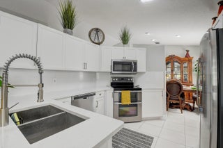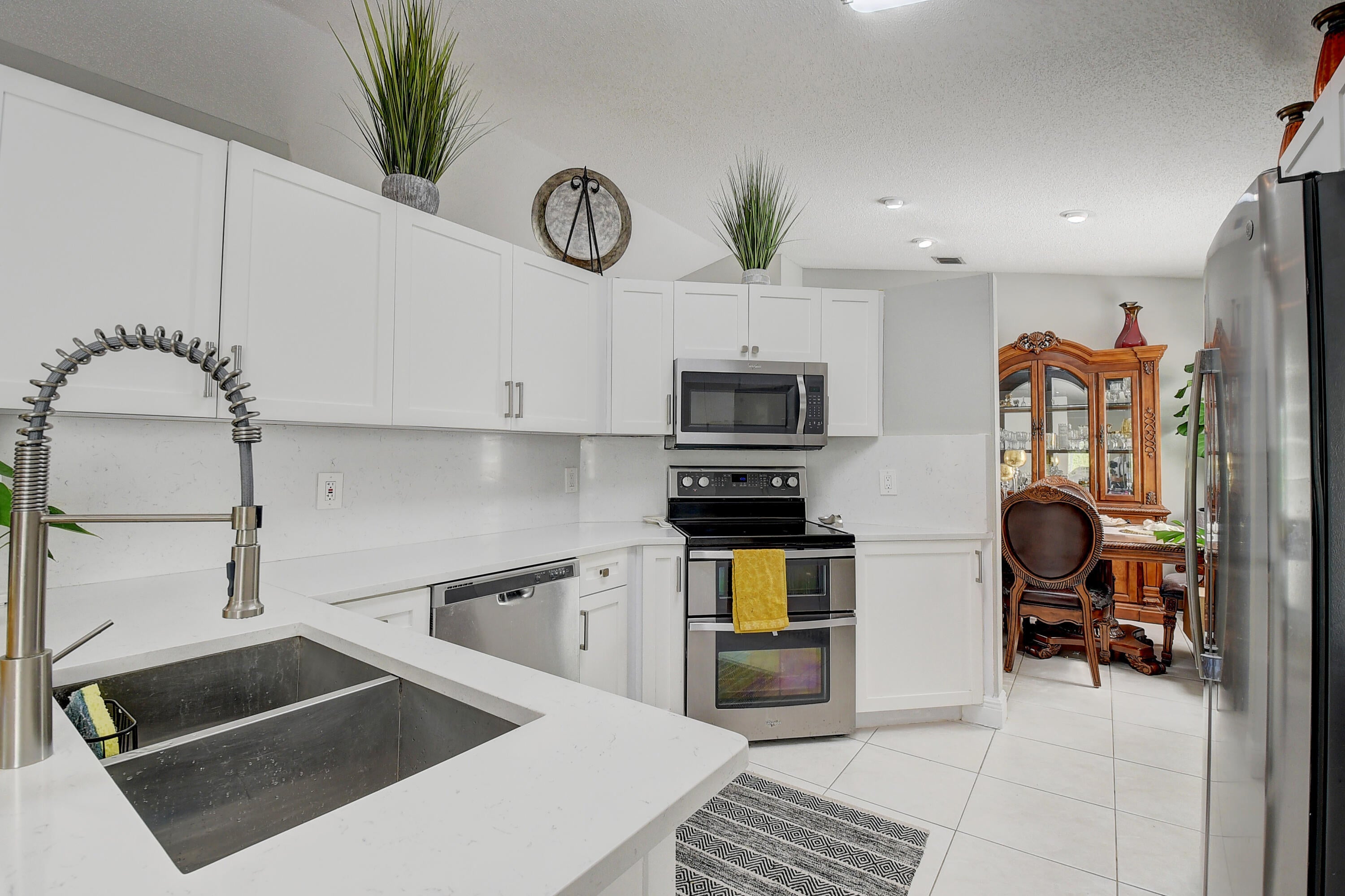 NEW ROOF SEPT 2022! Lake front Cypress Model is a SF 2/BR+Den/2BA/2CG & is equipped w/Accordion Hurricane Shutters. Den has a door so easy conversion to true 3BR, just add a closet. Home offers beautiful updated kitchen w/Quartz Countertops w/full backsplash, upgraded light fixture, SS appliance package, double oven, large SS sink w/upgraded faucet & built in pantry. Both Bathrooms have been renovated w/tile to ceiling & the works. Home is complete w/high hats galore, fans, fixtures & window treatments throughout. Floors are tile, laminate & bamboo wood in Primary BR w/newer 4'' baseboards. 2 new lighted sconces in DR. Seller replaced the Extended bird cage screen in yard. Patio is tiled & has security light. Seller also replaced the yard side fence & upgraded the landscape. Priced to selTwo upgraded bathrooms include frameless shower doors, tile to ceiling, framed mirrors, upgraded vanities & sinks, cabinets & lights. The Grove offers a renovated & updated clubhouse! Home is conveniently located in walking distance to Clubhouse, tennis & pool & more! Second bathroom offers shower tile to ceiling, upgraded vanity/sink, upgraded HAUS toilet. Bedroom two is complete with a wall mounted flat screen TV. Laundry room offers cabinets for extra storage and an updated GE dryer. Garage offers a splash sink & keyless entry plus upgraded coach lights. Don't miss this one. Won't last long. There are plenty of activities available for all at The Grove. See below list. Exercise Room, Aerobics Studio. Arts & Crafts Studio, Social Lounge, Ballroom with Stage, Several Card Rooms, Library complete with Computers for Resident use, Billiards, Outdoor Resort-Style Pool, Outdoor Spa, Outdoor Patio, 4 Har-Tru Tennis Courts, Bocce Ball Court, Shuffleboard Court, Scenic Lakes & Ponds, Walking & Biking Trails & Clubs for everyone. Close to beaches, shopping, malls, restaurants and more.
