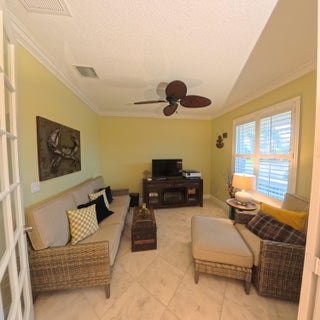 Discover refined living in the prestigious Bedford Park at Tradition. This beautiful 3 bedroom 2-bath home features a versatile den (possible fourth bedroom/office) a private pool & screened lanai, perfect for year-round enjoyment. Tile flooring throughout and crown molding. Kitchen boast 42 inch cabinets, gas stove, chef's island, walk in pantry, built-in double wall oven, stainless steel appliances. Butlers Pantry or coffee bar near formal dining. Have breakfast in your breakfast nook overlooking the pool. Owners Suite features additional space for reclining, studying, or exercising. Huge owners bathroom with walk-in shower, dual sinks, private toilet, & two walk-in closets. 2 Car garage plus additional parking. Ideally situated minutes from Tradition Square's live music, dining, andshopping, as well as I-95, Cleveland Clinic Hospital, and Clover Park Stadium. Residents also enjoy community club house with pool and meeting room. The perfect blend of location, amenities, and comfort! Turnkey opportunity-select furnishings may be available for purchase separately.