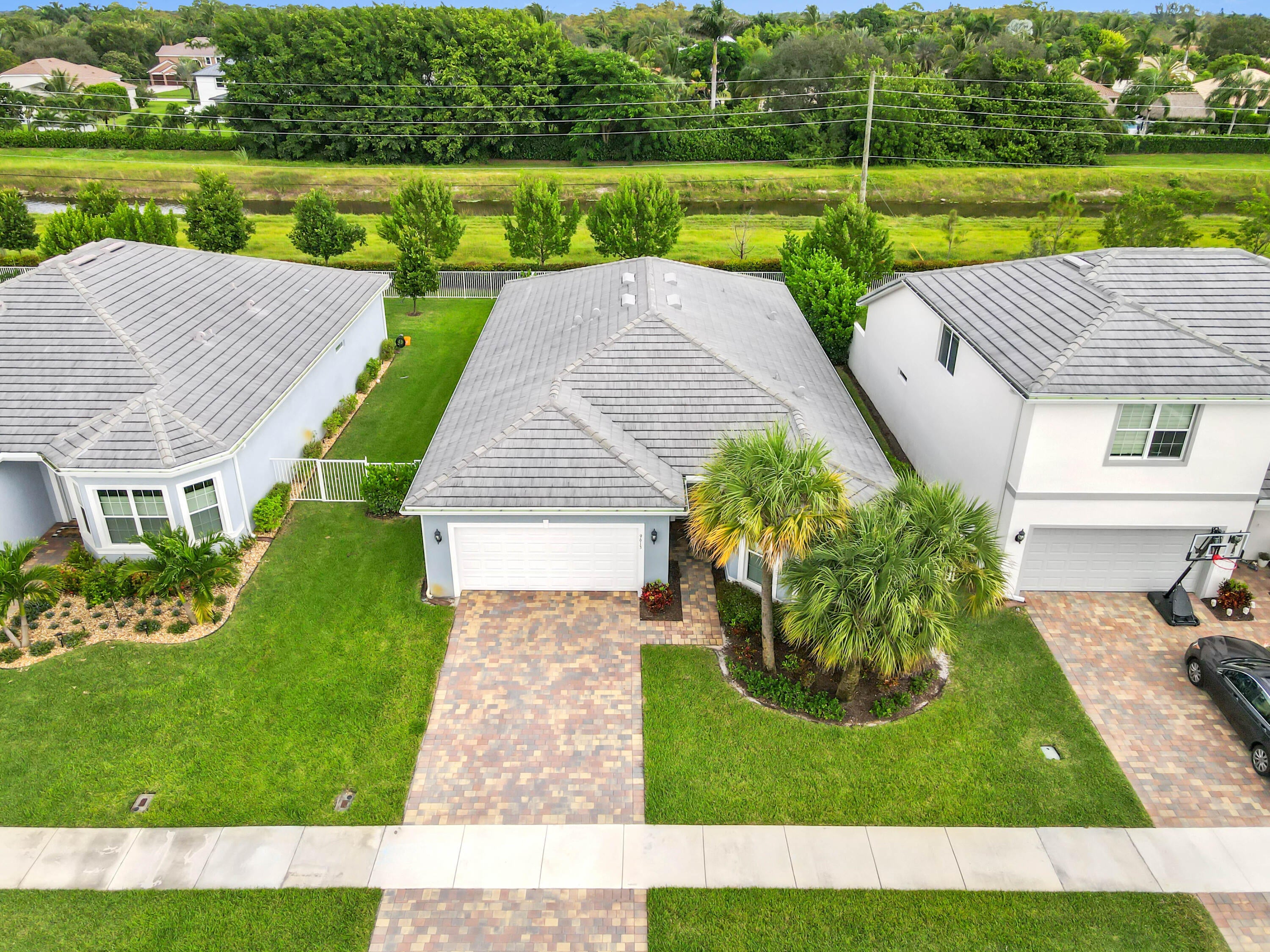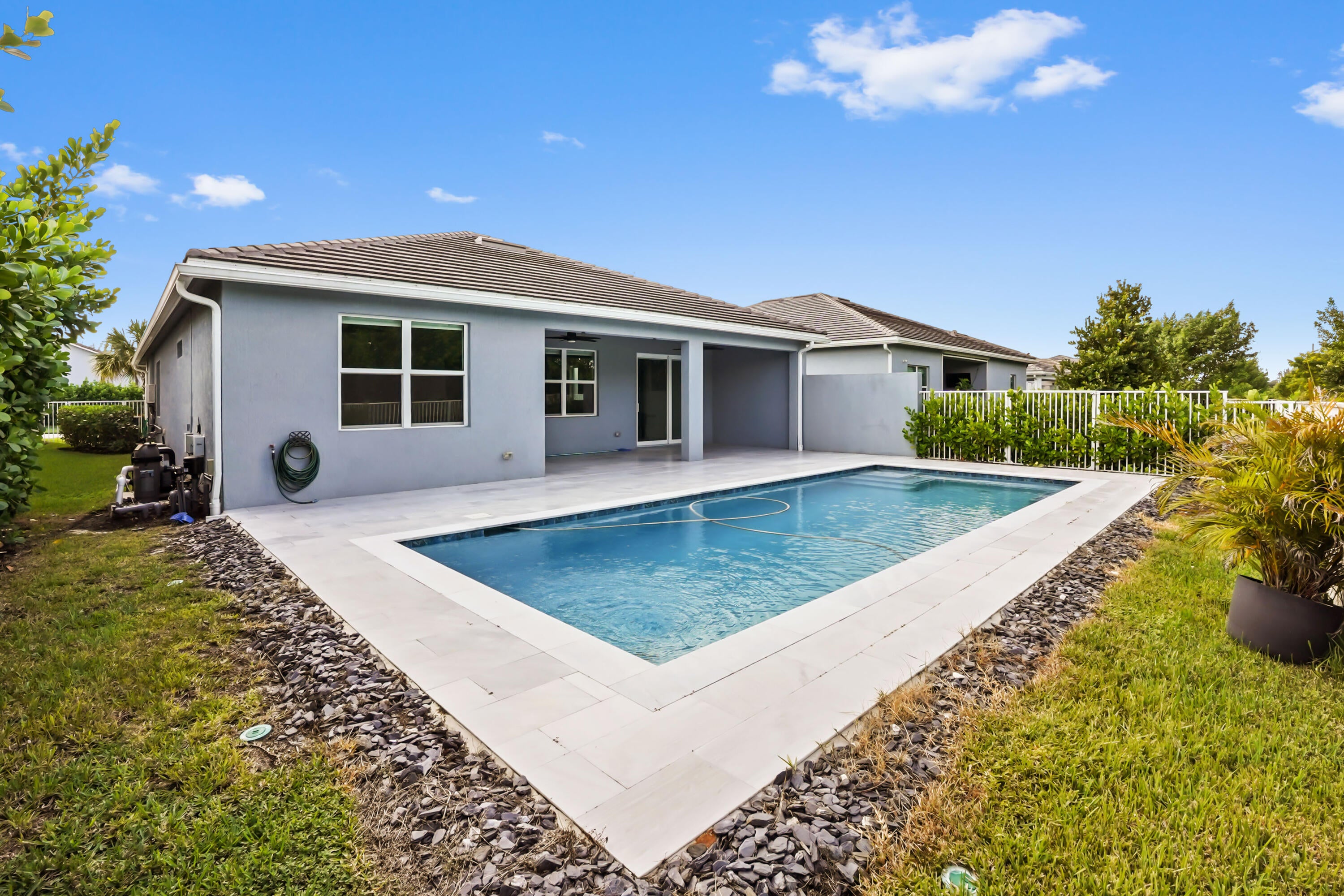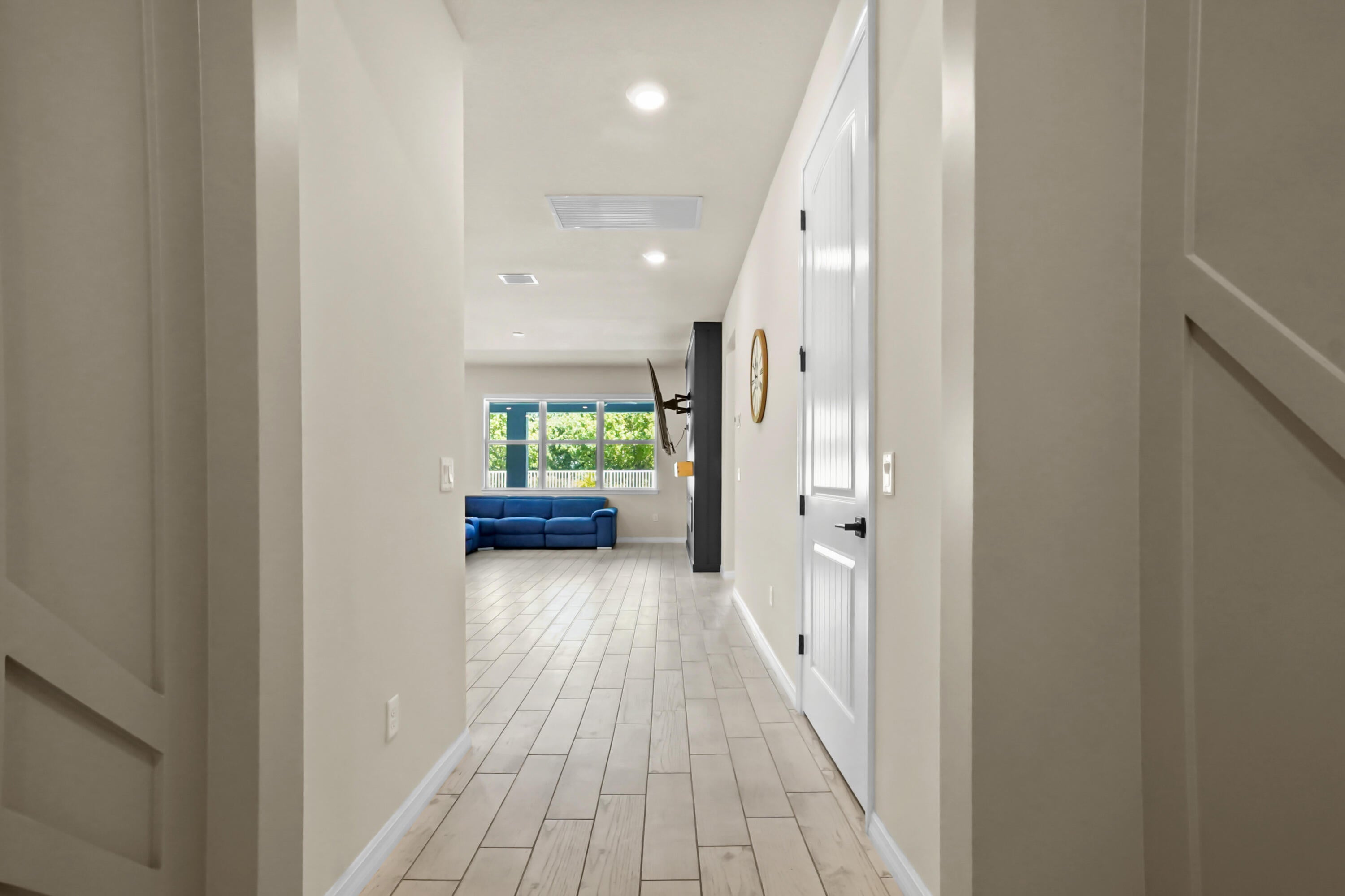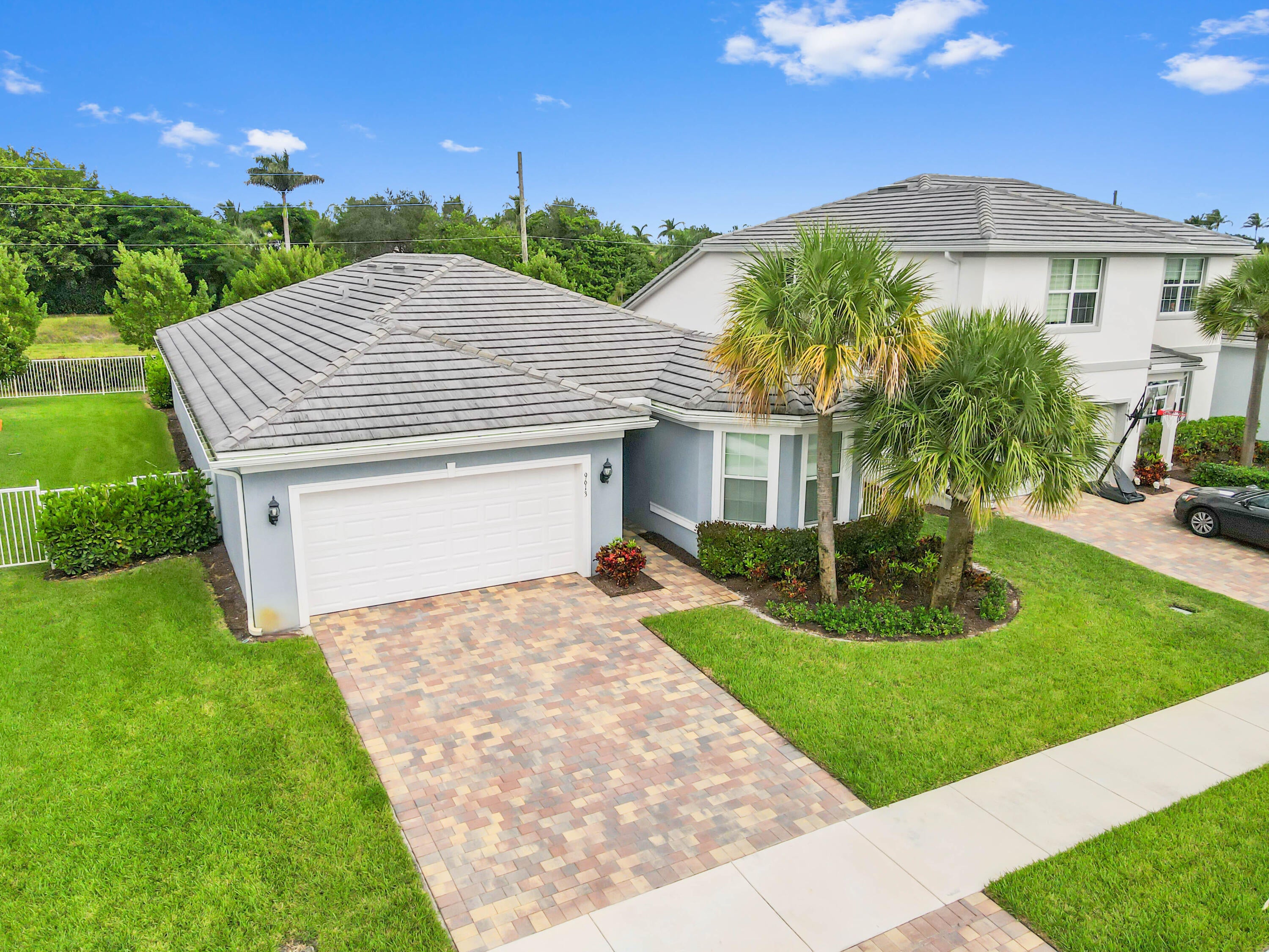 Prepare to be impressed by this absolutely stunning and meticulously upgraded single-family pool home, perfectly situated in the desirable, lake-focused community of Windsong Estates in Lake Worth. The residence boasts exceptional curb appeal, featuring a modern flat-tile roof, a beautiful multi-toned paver driveway, and a charming light blue stucco exterior framed by tropical landscaping. From the moment you arrive, the home's contemporary style is evident, promising a tranquil and luxurious lifestyle.Step inside to discover an interior that is modernized for today's living. The main areas feature elegant flooring, and a highly customized entry hallway sets a sophisticated tone with its designer wainscoting and light color palette. The kitchen is a chef's delight, showcasing light shaker-style cabinetry, crisp white countertops, a striking dark-toned central island perfect for seating, and stainless steel appliances. The open-concept design seamlessly connects the kitchen and dining area to the main living space, which is anchored by a sophisticated, custom-built media wall with a sleek electric fireplace, creating a perfect space for relaxation and entertaining. The Master Suite is a true sanctuary, featuring a dramatic tray ceiling and elegant light flooring, leading to a hallway with a beautiful modern bathroom. This bath boasts a long, dark vanity with dual sinks, a spacious walk-in shower fully finished in large-format tile, and a private water closet. The home offers a practical side with a dedicated laundry room and a private backyard oasis featuring a sparkling in-ground pool and a covered lanai, all finished with clean, modern tile pavers. This home perfectly blends high-end finishes with a premium location.