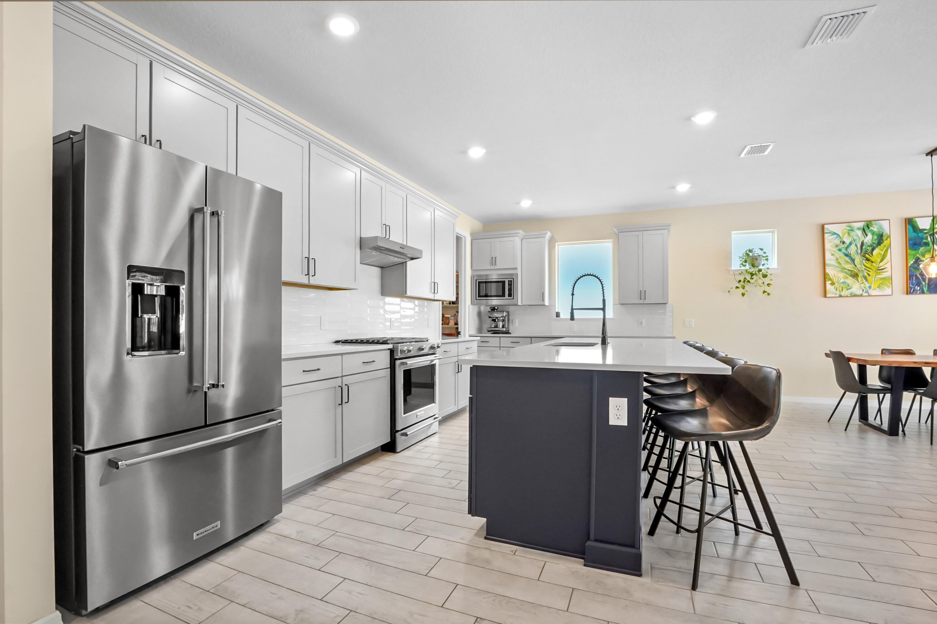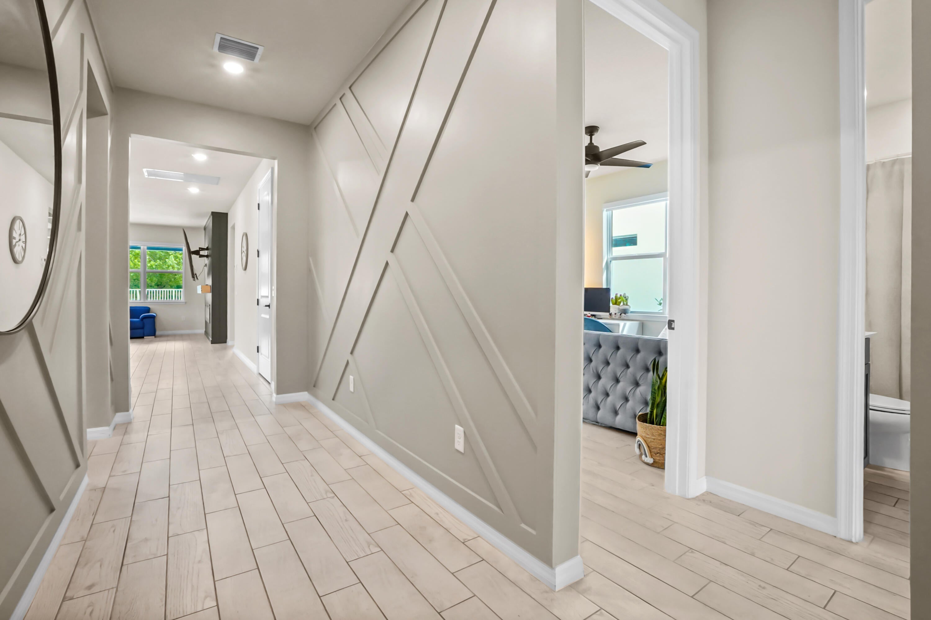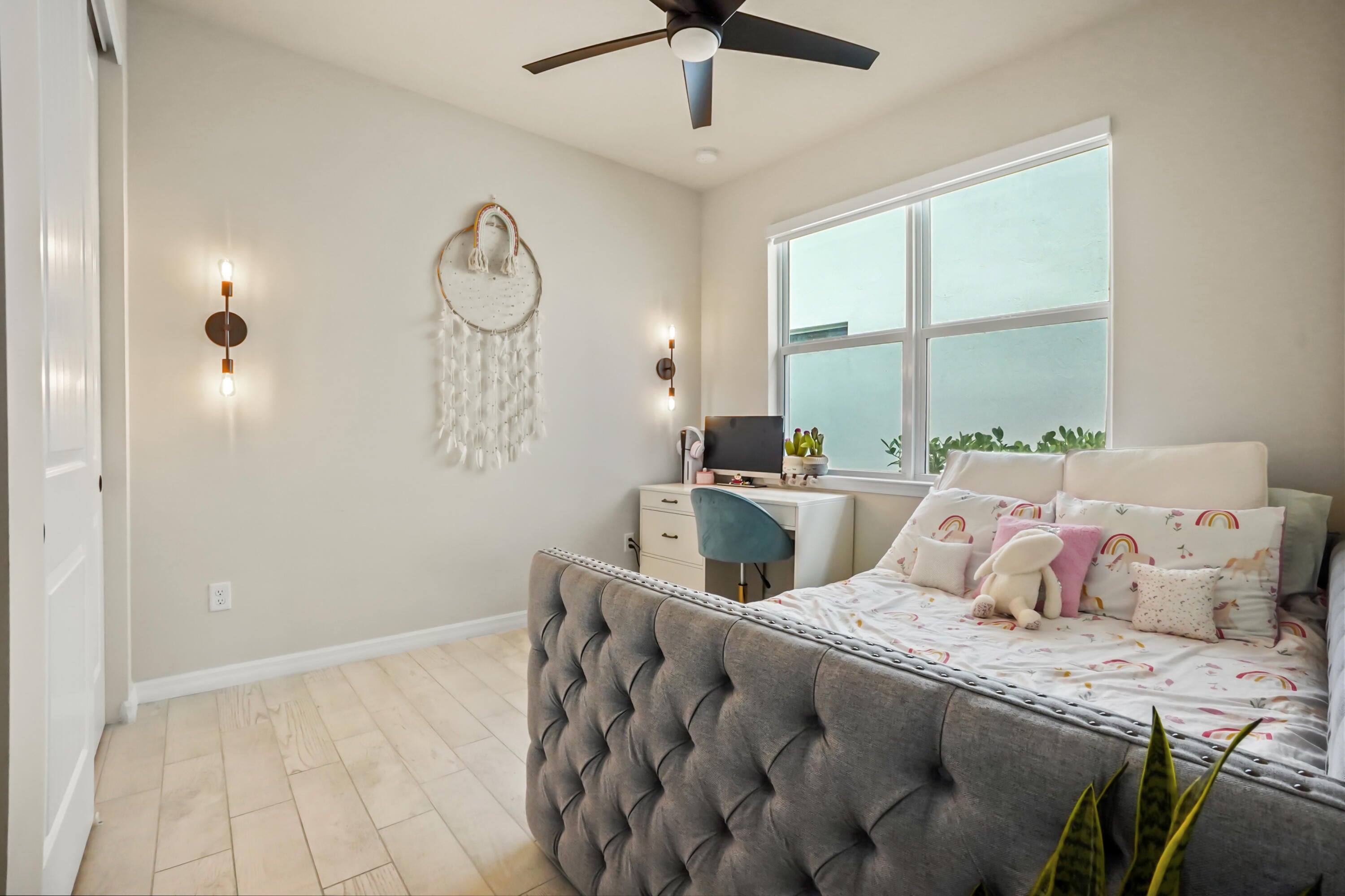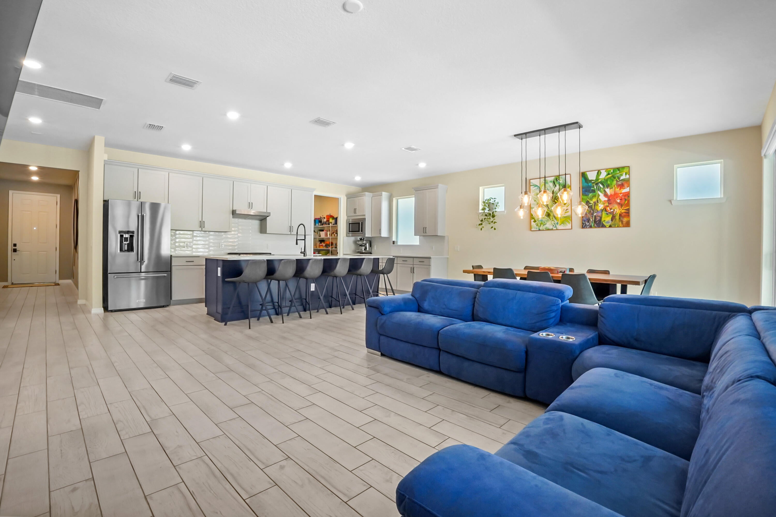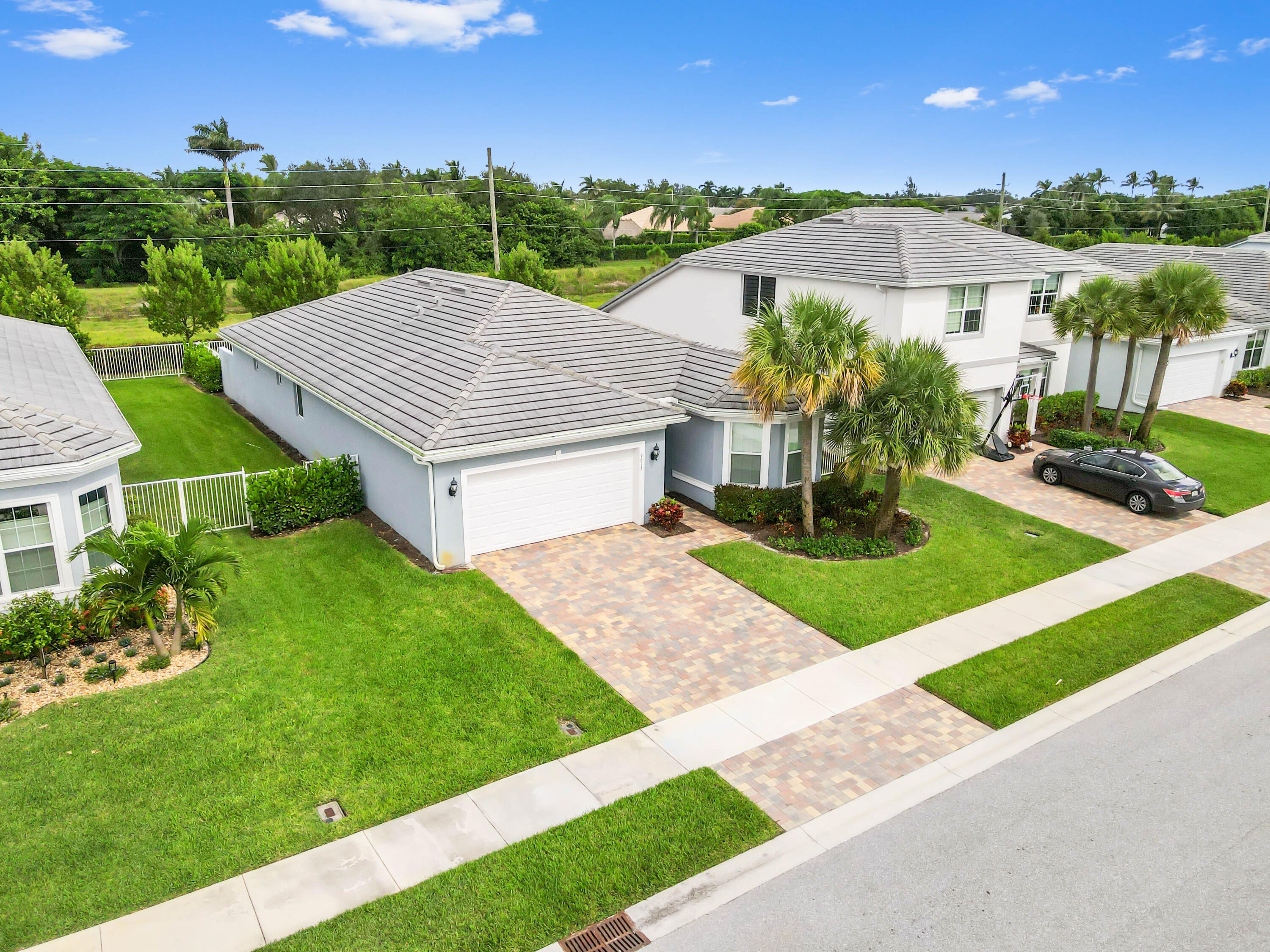 Prepare to be impressed by this absolutely stunning and meticulously upgraded single-family pool home, perfectly situated in the desirable, lake-focused community of Windsong Estates in Lake Worth. The residence boasts exceptional curb appeal, featuring a modern flat-tile roof, a beautiful multi-toned paver driveway, and a charming light blue stucco exterior framed by tropical landscaping. From the moment you arrive, the home's contemporary style is evident, promising a tranquil and luxurious lifestyle.Step inside to discover an interior that is modernized for today's living. The main areas feature elegant flooring, and a highly customized entry hallway sets a sophisticated tone with its designer wainscoting and light color palette. The kitchen is a chef's delight, showcasing light shaker-style cabinetry, crisp white countertops, a striking dark-toned central island perfect for seating, and stainless steel appliances. The open-concept design seamlessly connects the kitchen and dining area to the main living space, which is anchored by a sophisticated, custom-built media wall with a sleek electric fireplace, creating a perfect space for relaxation and entertaining. The Master Suite is a true sanctuary, featuring a dramatic tray ceiling and elegant light flooring, leading to a hallway with a beautiful modern bathroom. This bath boasts a long, dark vanity with dual sinks, a spacious walk-in shower fully finished in large-format tile, and a private water closet. The home offers a practical side with a dedicated laundry room and a private backyard oasis featuring a sparkling in-ground pool and a covered lanai, all finished with clean, modern tile pavers. This home perfectly blends high-end finishes with a premium location.