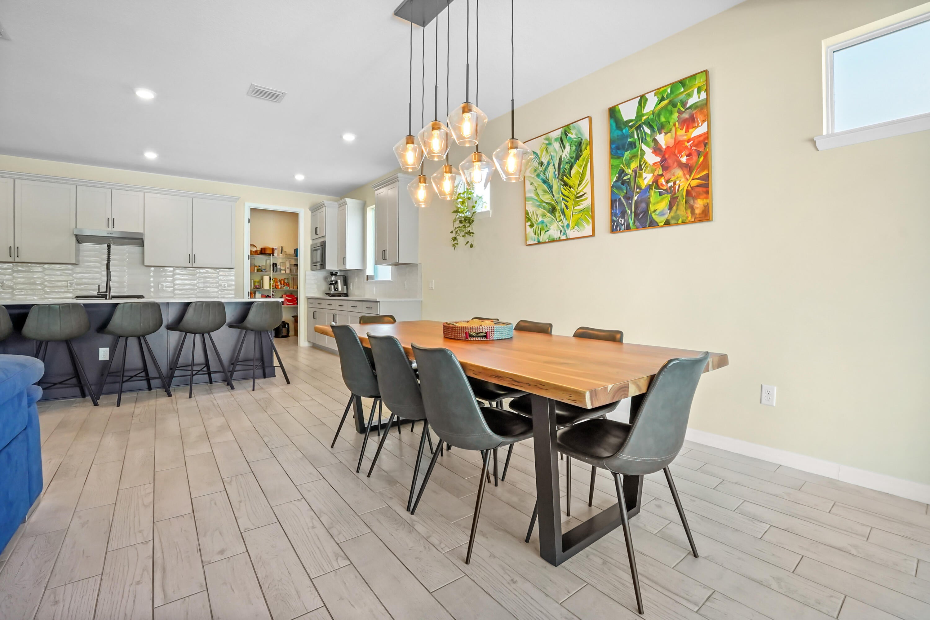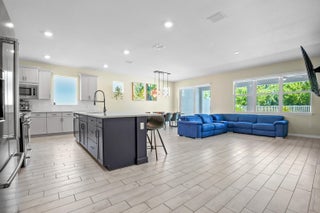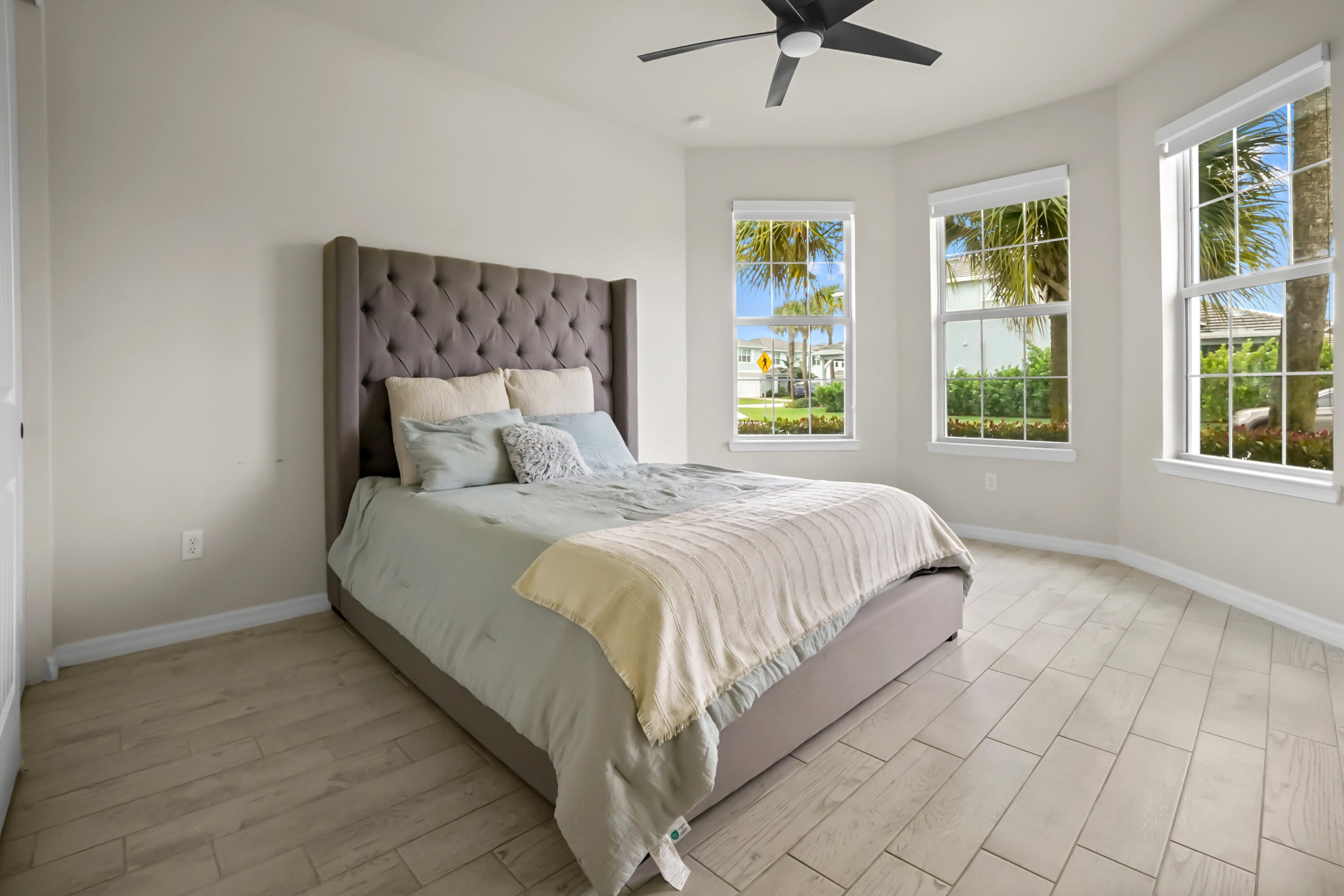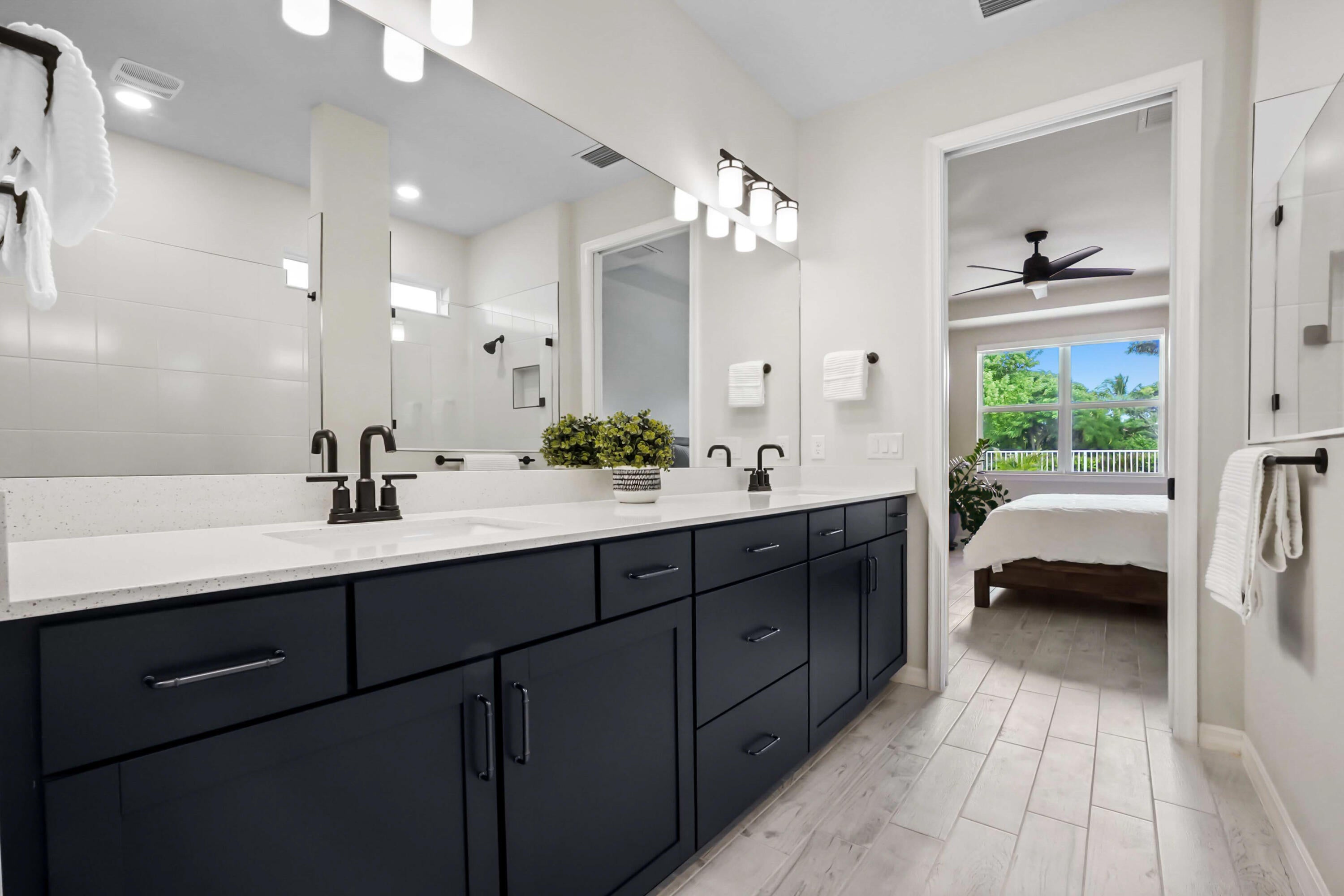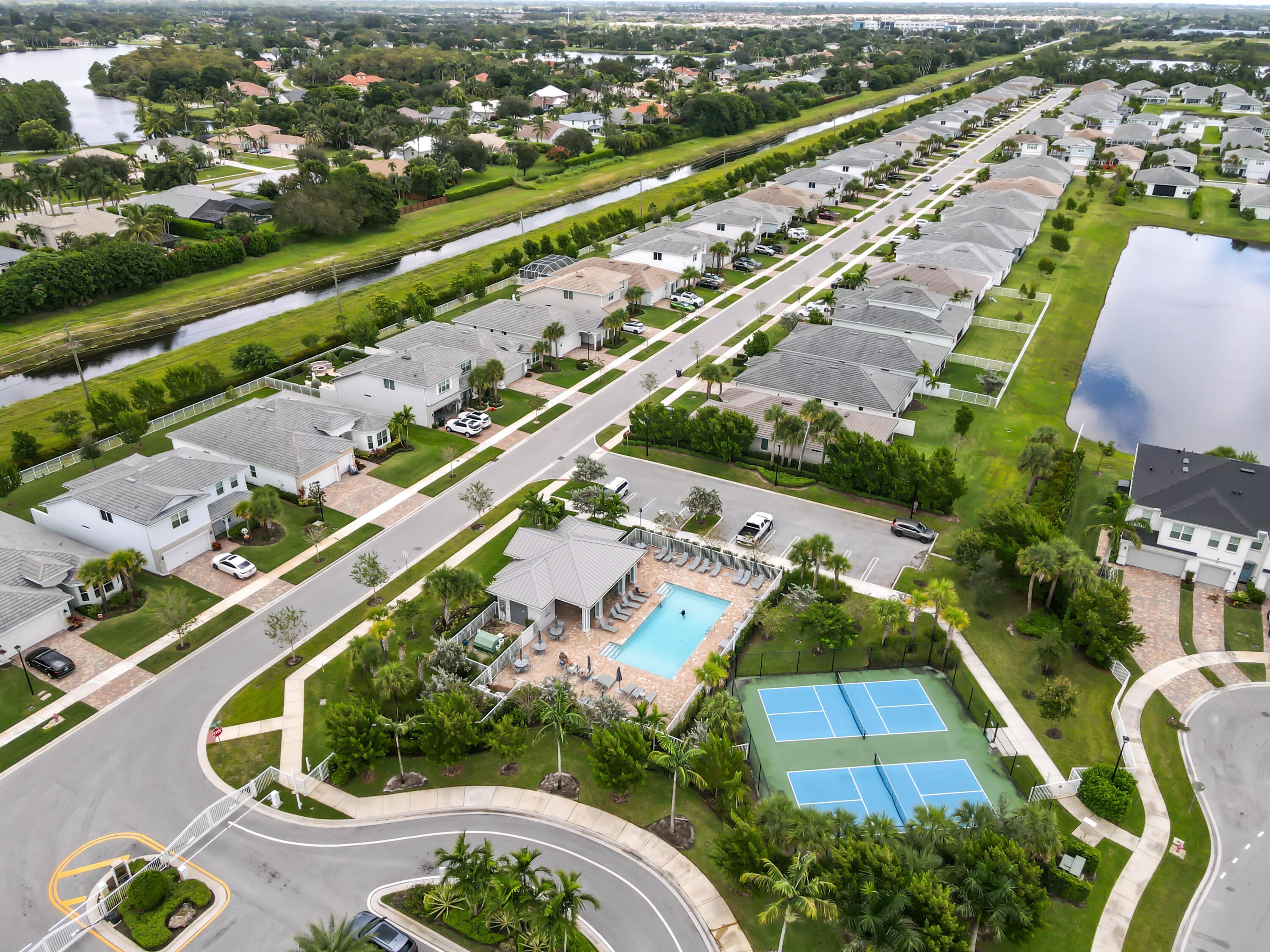 Prepare to be impressed by this absolutely stunning and meticulously upgraded single-family pool home, perfectly situated in the desirable, lake-focused community of Windsong Estates in Lake Worth. The residence boasts exceptional curb appeal, featuring a modern flat-tile roof, a beautiful multi-toned paver driveway, and a charming light blue stucco exterior framed by tropical landscaping. From the moment you arrive, the home's contemporary style is evident, promising a tranquil and luxurious lifestyle.Step inside to discover an interior that is modernized for today's living. The main areas feature elegant flooring, and a highly customized entry hallway sets a sophisticated tone with its designer wainscoting and light color palette. The kitchen is a chef's delight, showcasing light shaker-style cabinetry, crisp white countertops, a striking dark-toned central island perfect for seating, and stainless steel appliances. The open-concept design seamlessly connects the kitchen and dining area to the main living space, which is anchored by a sophisticated, custom-built media wall with a sleek electric fireplace, creating a perfect space for relaxation and entertaining. The Master Suite is a true sanctuary, featuring a dramatic tray ceiling and elegant light flooring, leading to a hallway with a beautiful modern bathroom. This bath boasts a long, dark vanity with dual sinks, a spacious walk-in shower fully finished in large-format tile, and a private water closet. The home offers a practical side with a dedicated laundry room and a private backyard oasis featuring a sparkling in-ground pool and a covered lanai, all finished with clean, modern tile pavers. This home perfectly blends high-end finishes with a premium location.