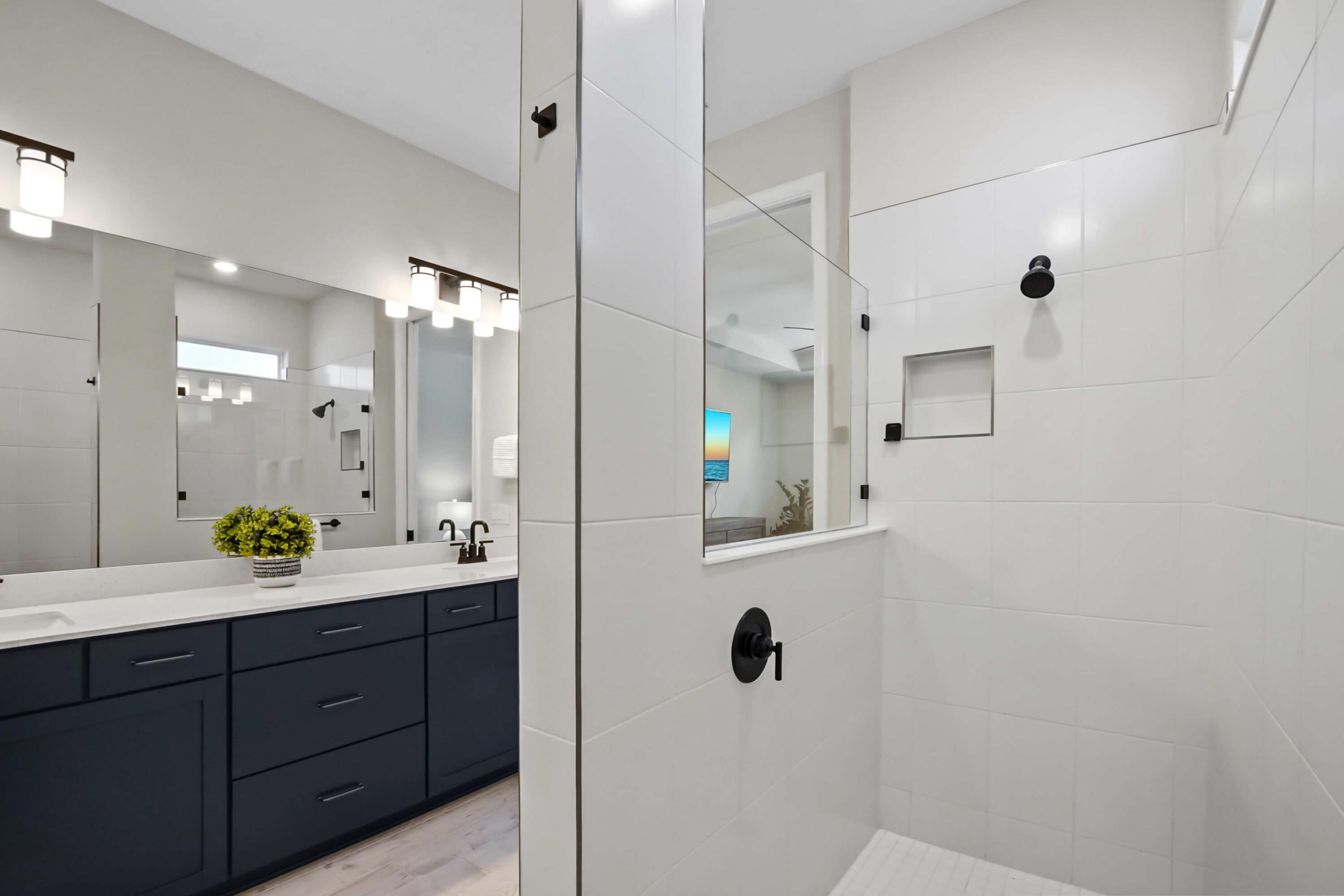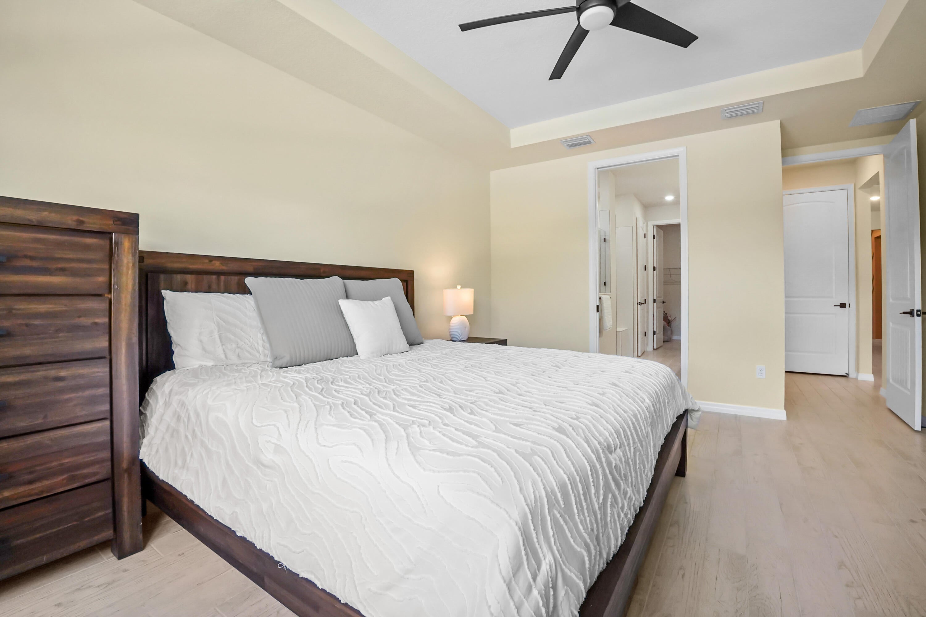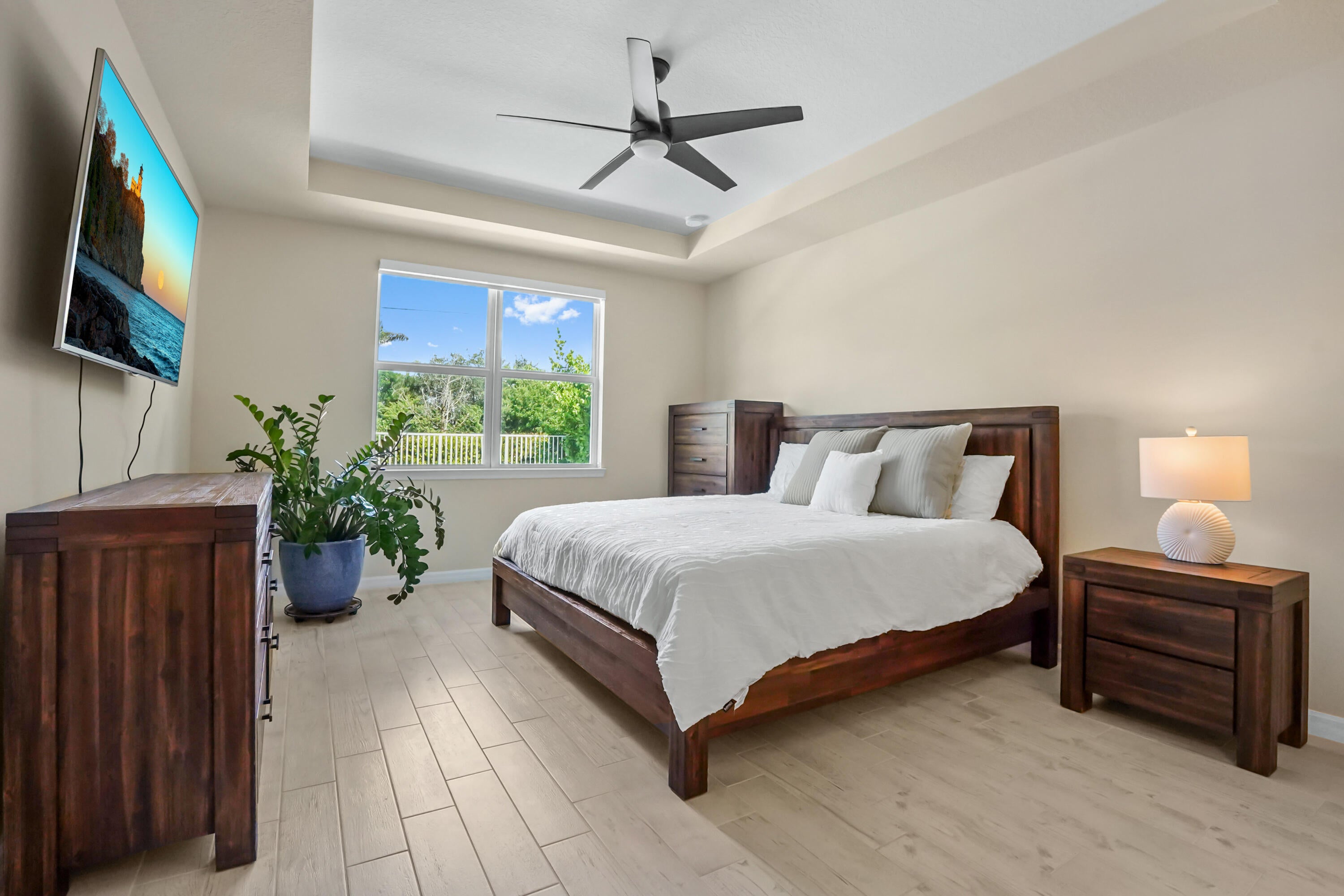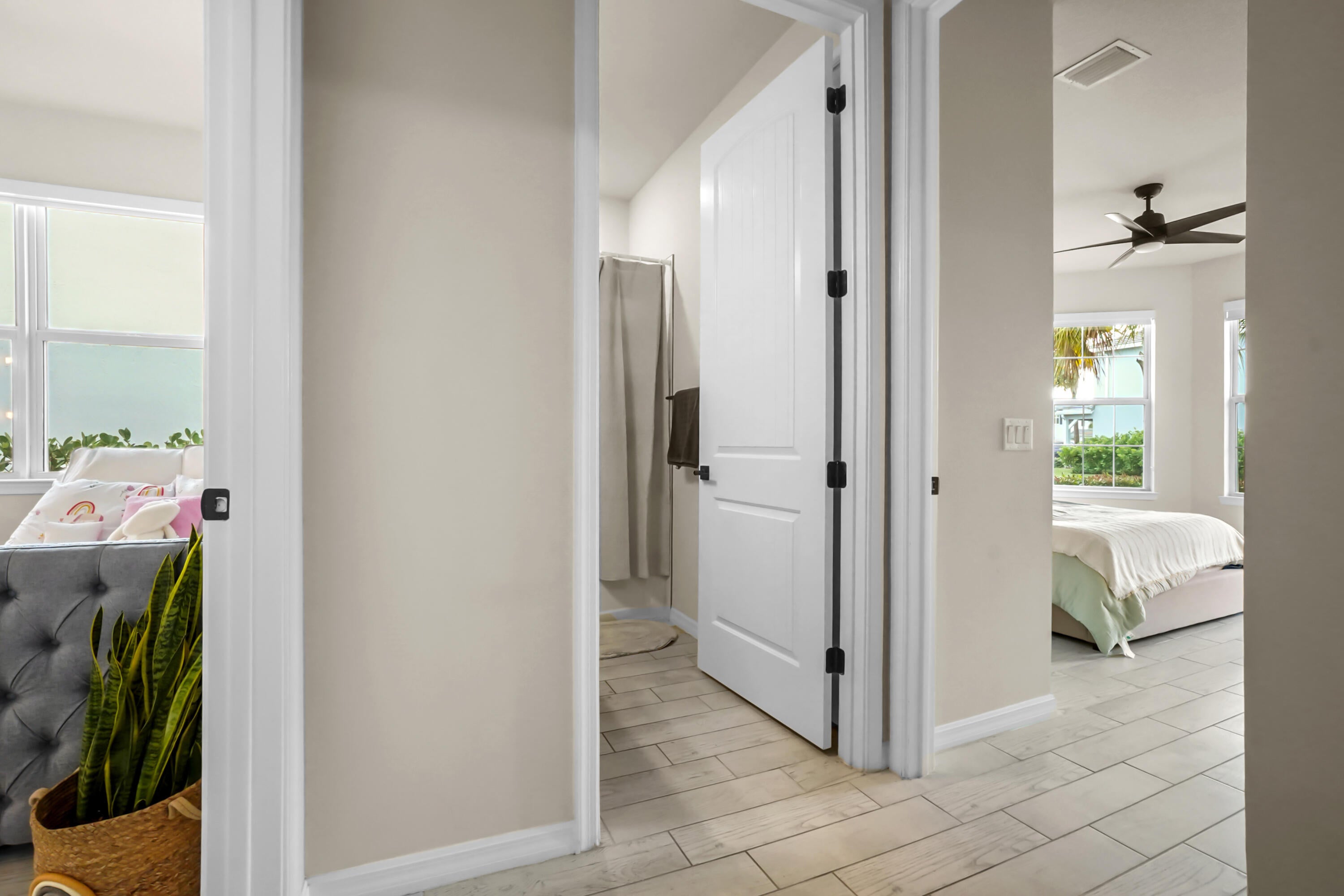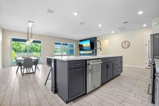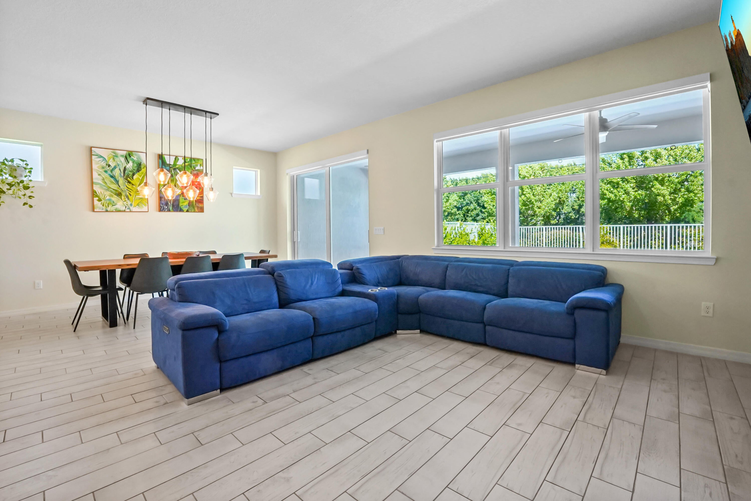 Prepare to be impressed by this absolutely stunning and meticulously upgraded single-family pool home, perfectly situated in the desirable, lake-focused community of Windsong Estates in Lake Worth. The residence boasts exceptional curb appeal, featuring a modern flat-tile roof, a beautiful multi-toned paver driveway, and a charming light blue stucco exterior framed by tropical landscaping. From the moment you arrive, the home's contemporary style is evident, promising a tranquil and luxurious lifestyle.Step inside to discover an interior that is modernized for today's living. The main areas feature elegant flooring, and a highly customized entry hallway sets a sophisticated tone with its designer wainscoting and light color palette. The kitchen is a chef's delight, showcasing light shaker-style cabinetry, crisp white countertops, a striking dark-toned central island perfect for seating, and stainless steel appliances. The open-concept design seamlessly connects the kitchen and dining area to the main living space, which is anchored by a sophisticated, custom-built media wall with a sleek electric fireplace, creating a perfect space for relaxation and entertaining. The Master Suite is a true sanctuary, featuring a dramatic tray ceiling and elegant light flooring, leading to a hallway with a beautiful modern bathroom. This bath boasts a long, dark vanity with dual sinks, a spacious walk-in shower fully finished in large-format tile, and a private water closet. The home offers a practical side with a dedicated laundry room and a private backyard oasis featuring a sparkling in-ground pool and a covered lanai, all finished with clean, modern tile pavers. This home perfectly blends high-end finishes with a premium location.
