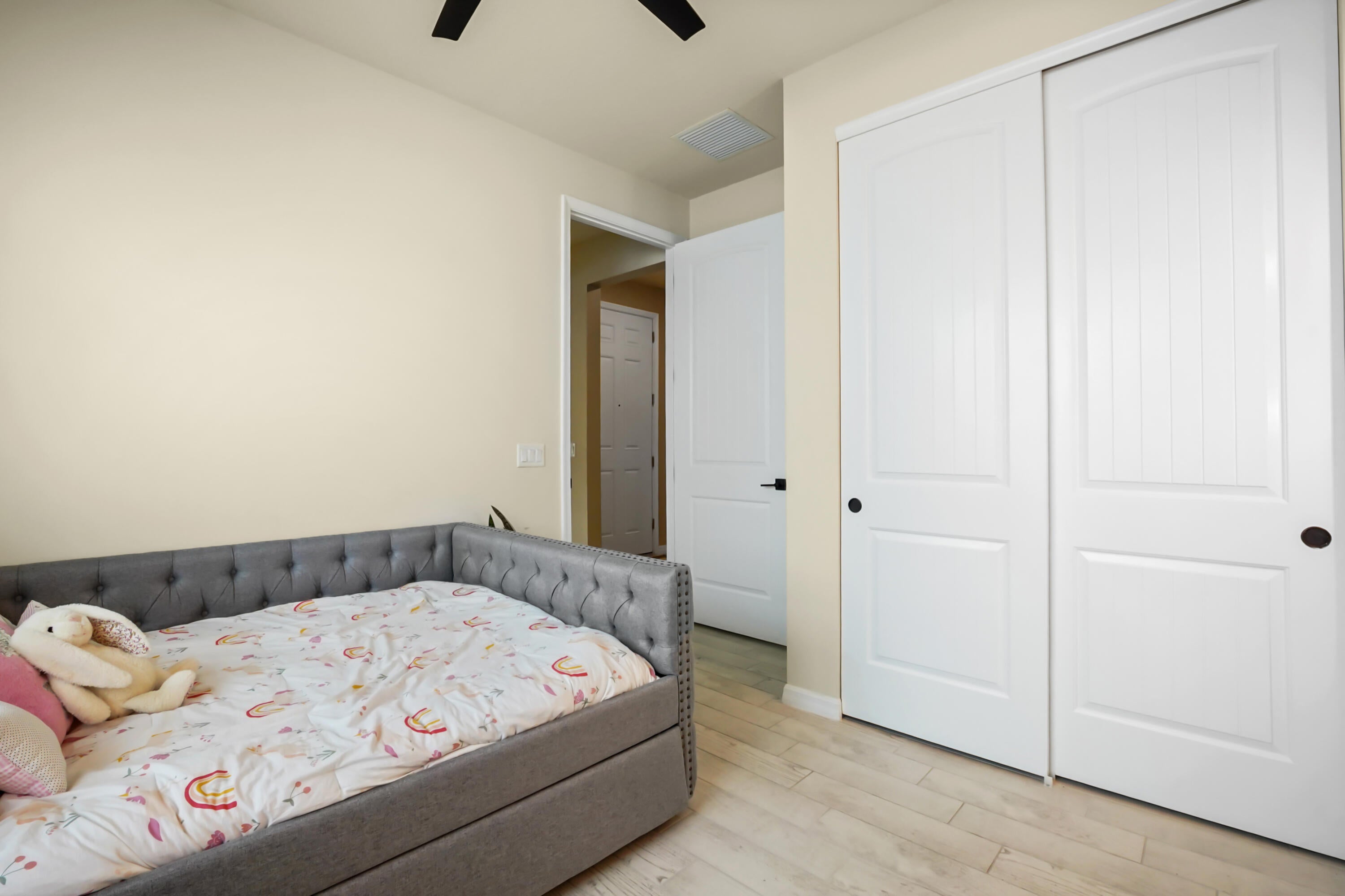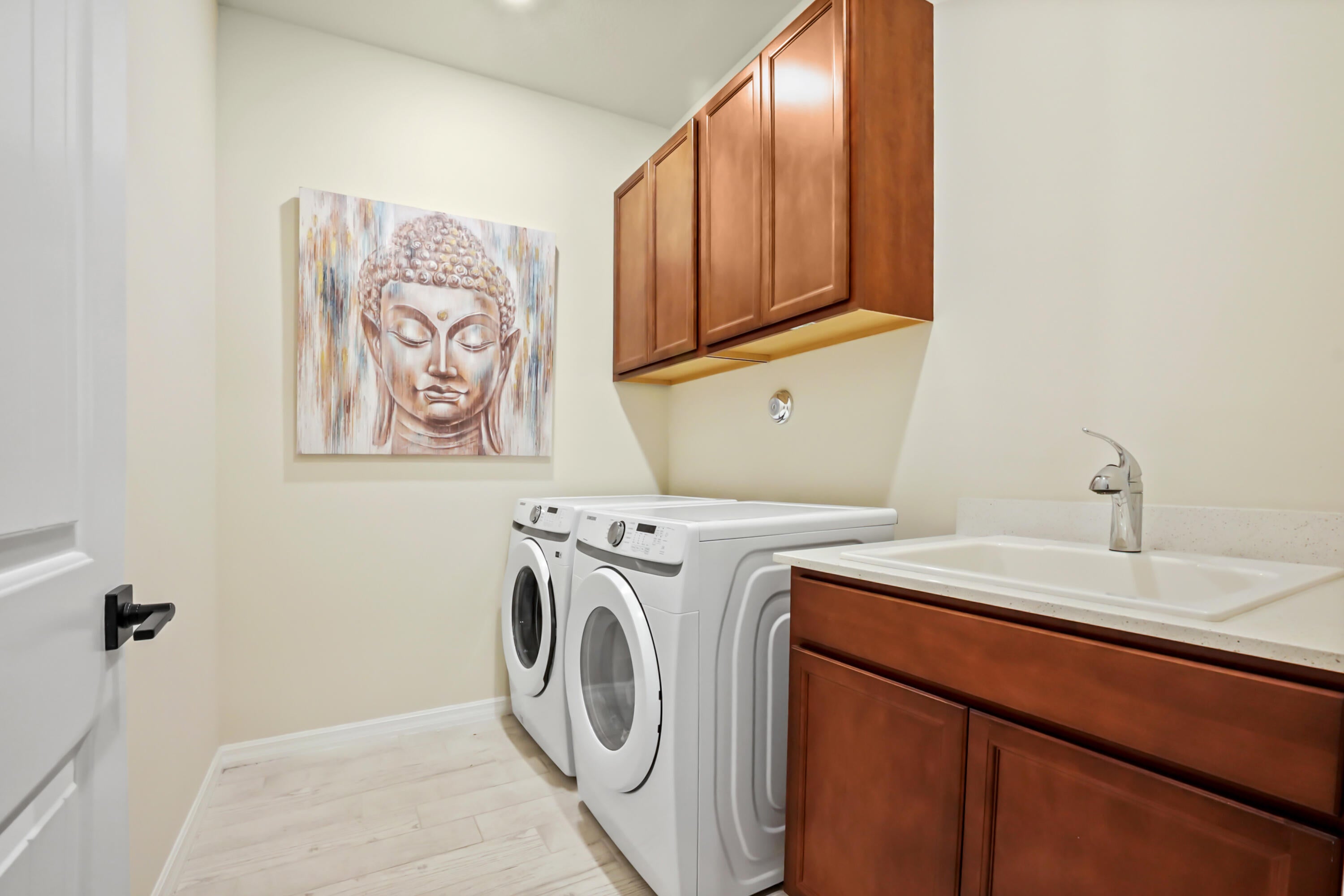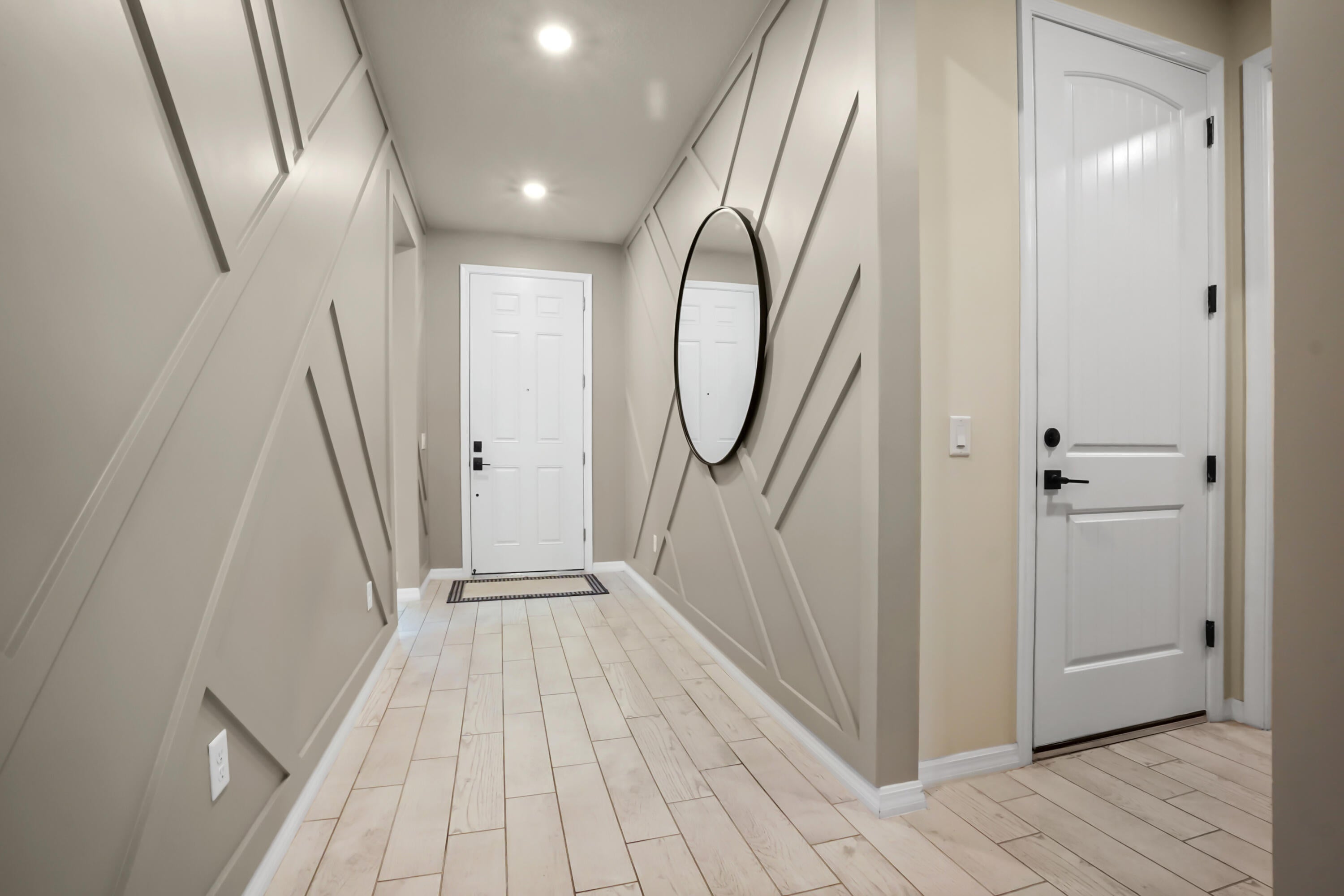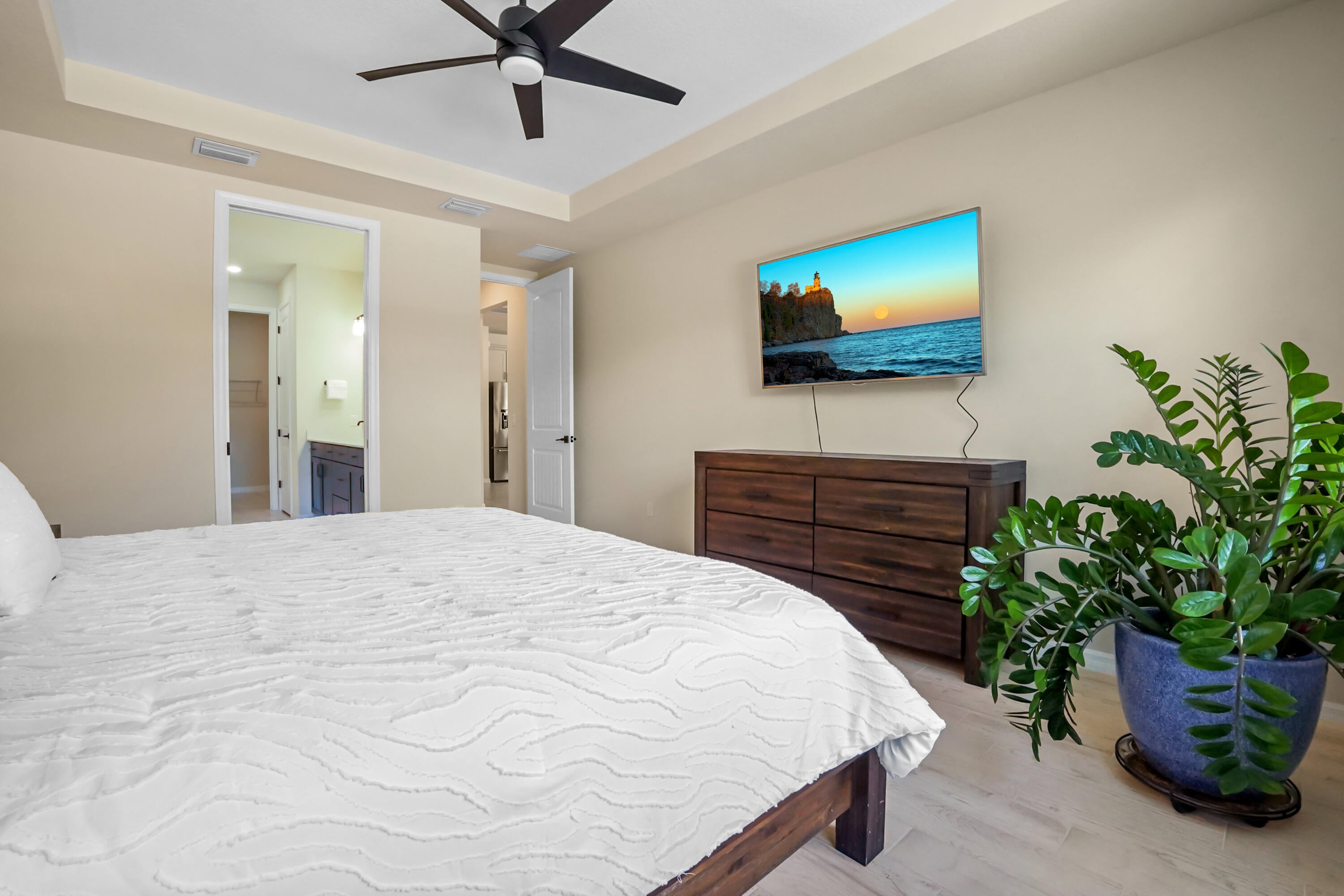 Prepare to be impressed by this absolutely stunning and meticulously upgraded single-family pool home, perfectly situated in the desirable, lake-focused community of Windsong Estates in Lake Worth. The residence boasts exceptional curb appeal, featuring a modern flat-tile roof, a beautiful multi-toned paver driveway, and a charming light blue stucco exterior framed by tropical landscaping. From the moment you arrive, the home's contemporary style is evident, promising a tranquil and luxurious lifestyle.Step inside to discover an interior that is modernized for today's living. The main areas feature elegant flooring, and a highly customized entry hallway sets a sophisticated tone with its designer wainscoting and light color palette. The kitchen is a chef's delight, showcasing light shaker-style cabinetry, crisp white countertops, a striking dark-toned central island perfect for seating, and stainless steel appliances. The open-concept design seamlessly connects the kitchen and dining area to the main living space, which is anchored by a sophisticated, custom-built media wall with a sleek electric fireplace, creating a perfect space for relaxation and entertaining. The Master Suite is a true sanctuary, featuring a dramatic tray ceiling and elegant light flooring, leading to a hallway with a beautiful modern bathroom. This bath boasts a long, dark vanity with dual sinks, a spacious walk-in shower fully finished in large-format tile, and a private water closet. The home offers a practical side with a dedicated laundry room and a private backyard oasis featuring a sparkling in-ground pool and a covered lanai, all finished with clean, modern tile pavers. This home perfectly blends high-end finishes with a premium location.