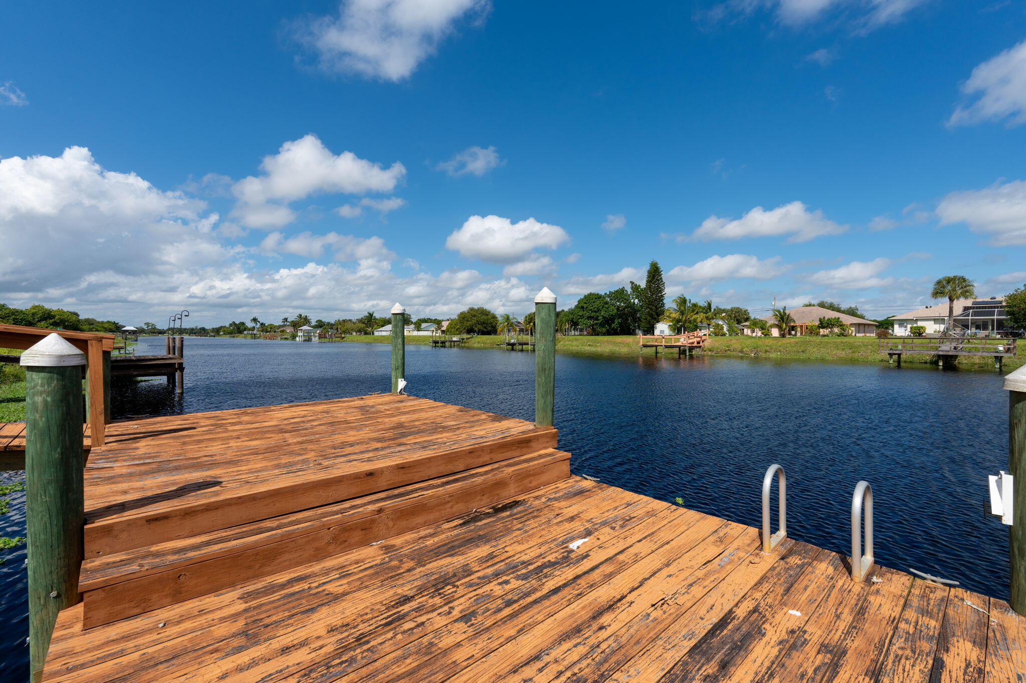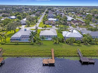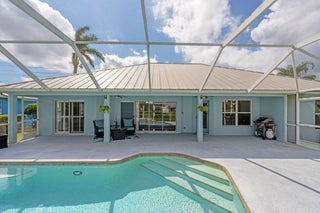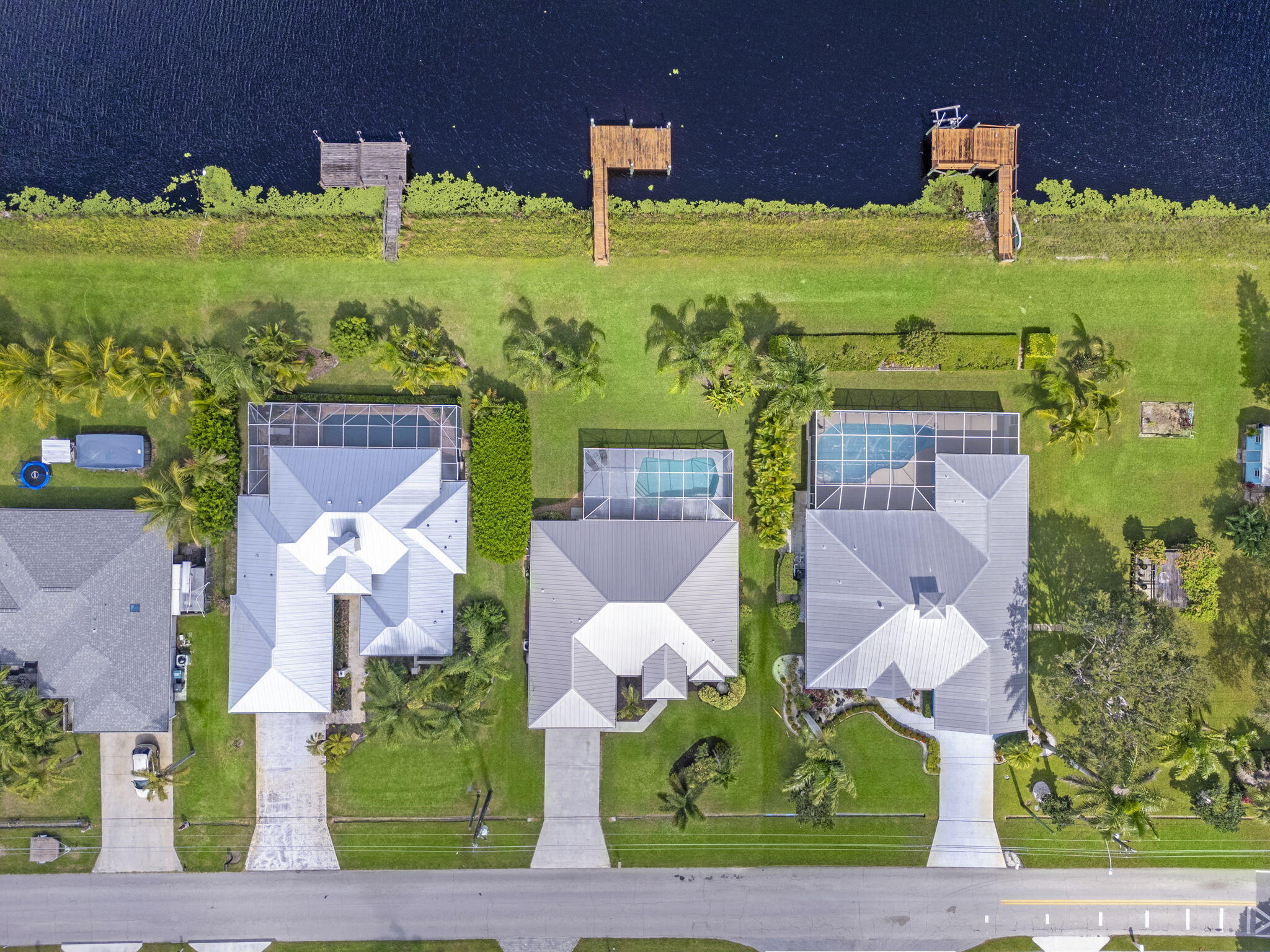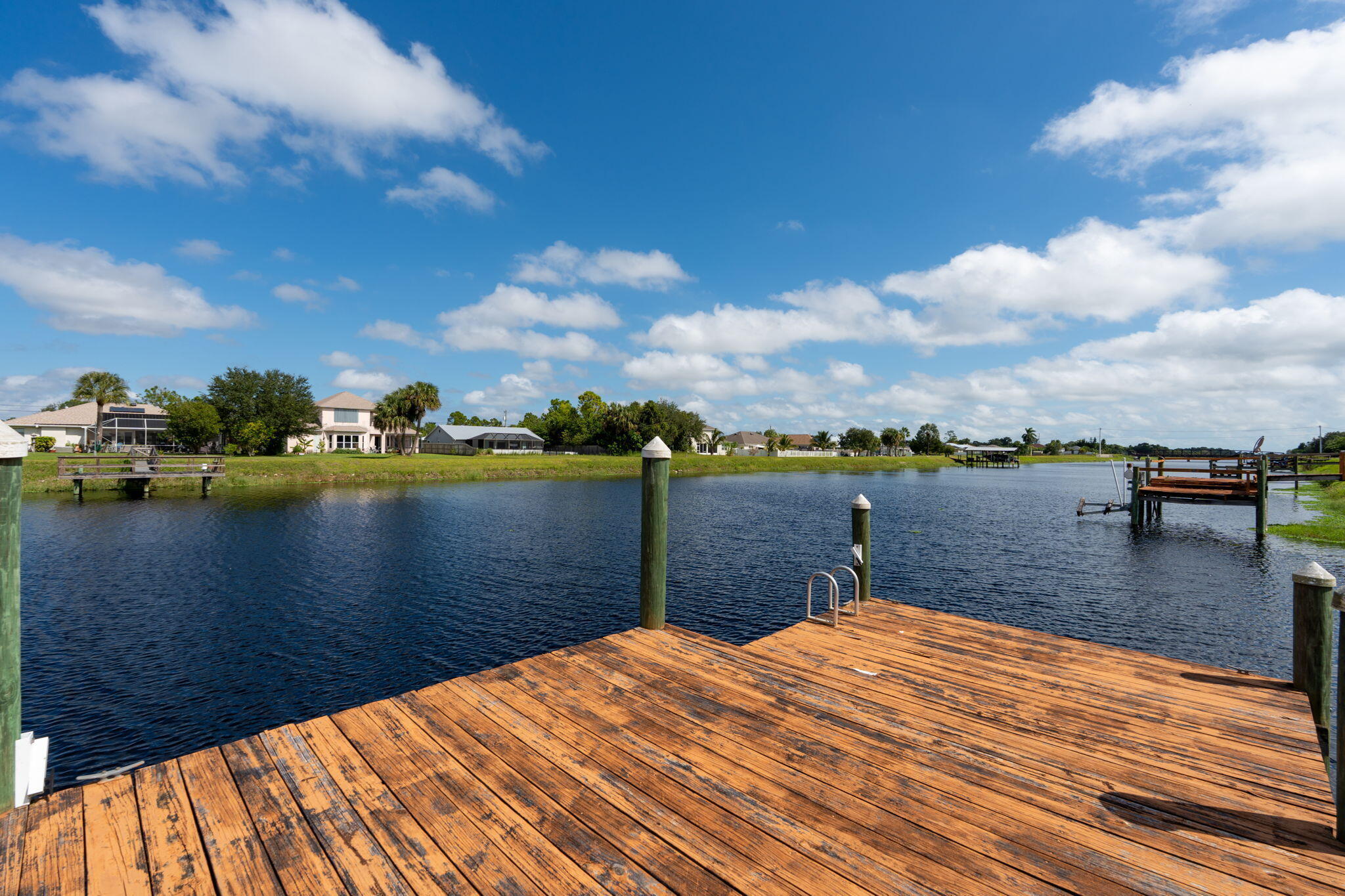 Welcome to your dream waterfront home! This beautiful 3-bedroom, 2-bath residence blends comfort, style, and true Florida living. Enjoy peace of mind with a metal roof, new AC, new water heater, and updated shut-off valves. Inside, the open floor plan, plantation shutters, and freshly painted cabinets and vanities create a bright, modern feel. Step outside to your screened-in heated pool and spacious patio with Pocket Sliding glass doors perfect for relaxing or entertaining. The private 12'x24' dock With 12' Walkway on the C-24 canal for boating enthusiasts. 10 Minutes away from C-24 Canal Park, which offers river and ocean access. With no HOA, a generator power inlet, and a newer washer and dryer, this home has everything you need for easy, worry-free living.