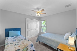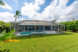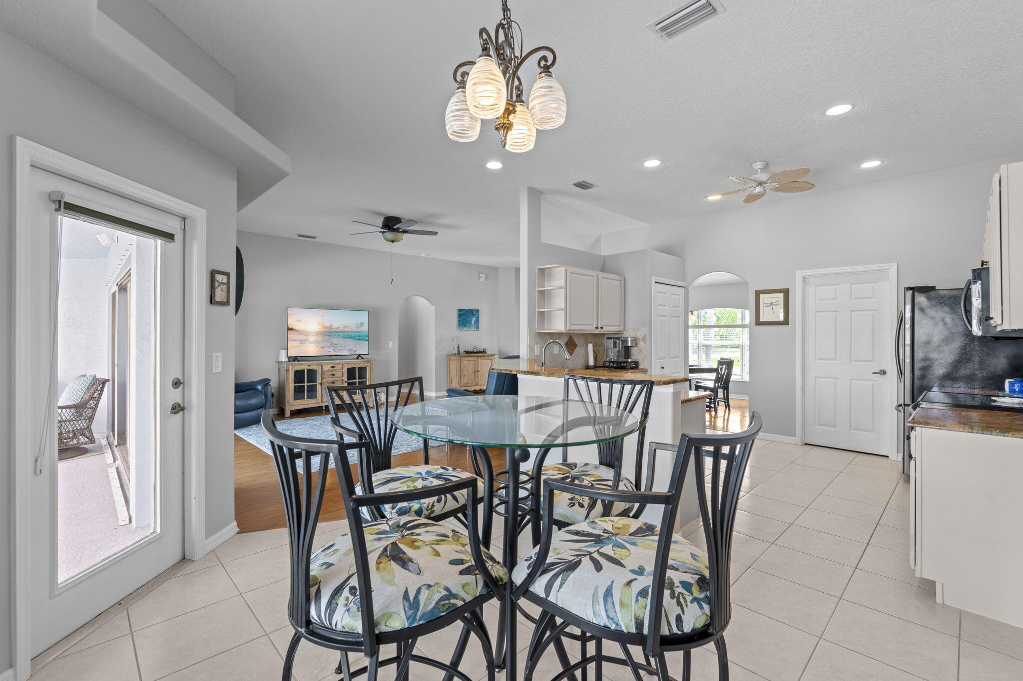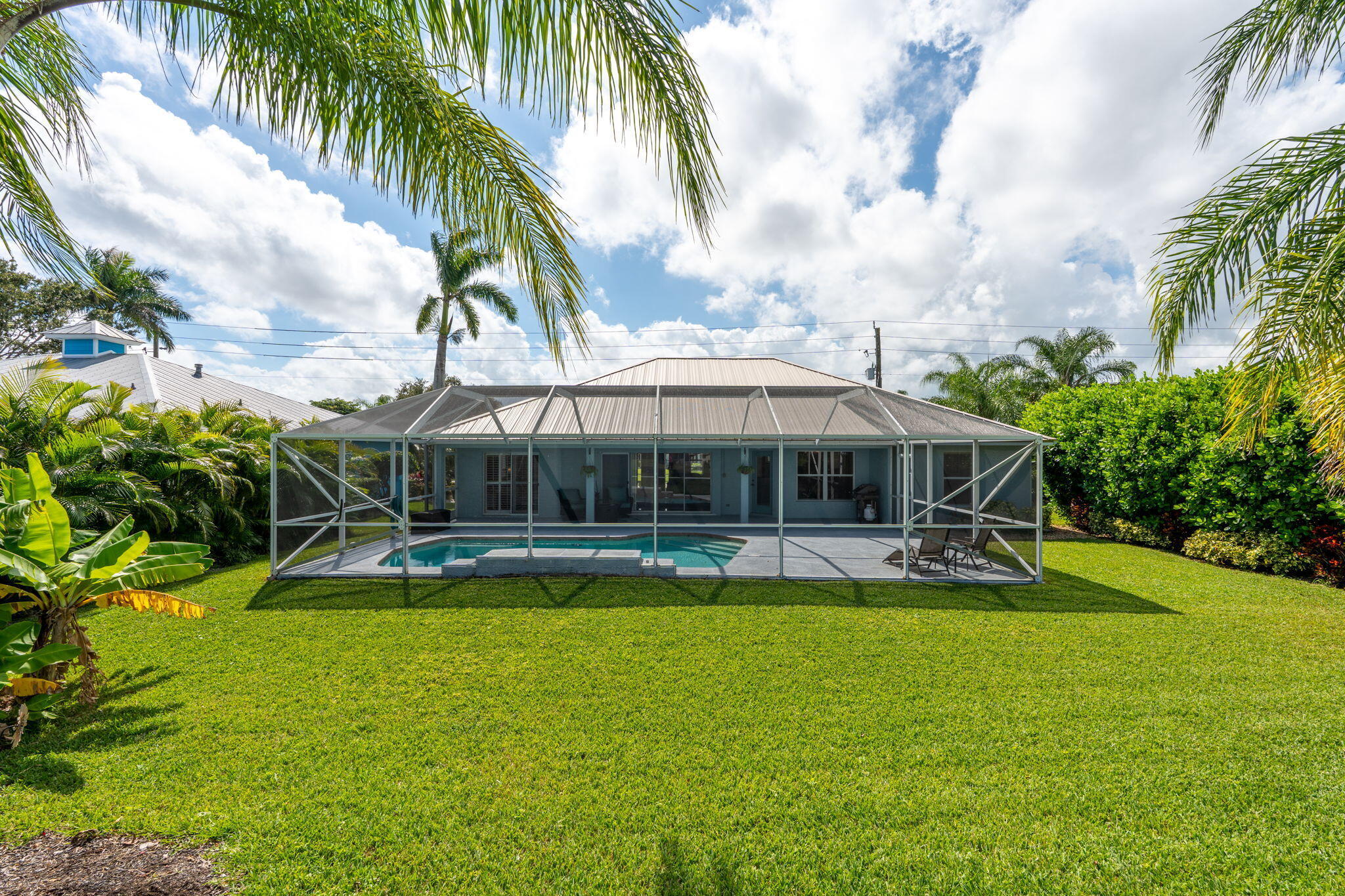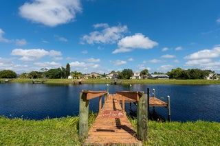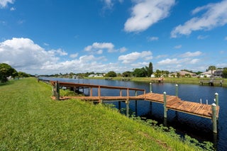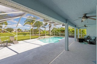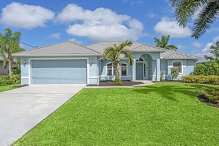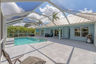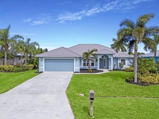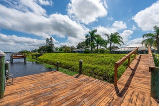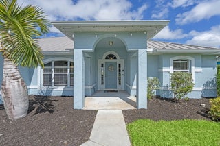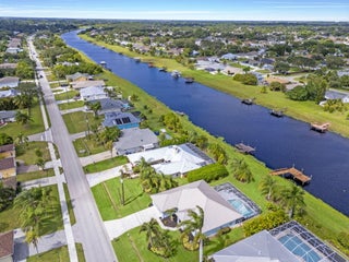 Welcome to your dream waterfront home! This beautiful 3-bedroom, 2-bath residence blends comfort, style, and true Florida living. Enjoy peace of mind with a metal roof, new AC, new water heater, and updated shut-off valves. Inside, the open floor plan, plantation shutters, and freshly painted cabinets and vanities create a bright, modern feel. Step outside to your screened-in heated pool and spacious patio with Pocket Sliding glass doors perfect for relaxing or entertaining. The private 12'x24' dock With 12' Walkway on the C-24 canal for boating enthusiasts. 10 Minutes away from C-24 Canal Park, which offers river and ocean access. With no HOA, a generator power inlet, and a newer washer and dryer, this home has everything you need for easy, worry-free living.