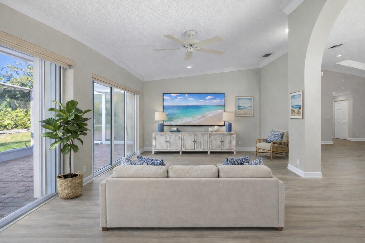 Welcome to Luxury Living in the Heart of Palm Beach county! Prestigious Gated Community in Palm Isles Offering Resort Style Living at its Finest. This open plan 3 Bedroom 2 Bath Home is Light and bright with double sliders featuring remote-controlled blinds opening to a private screened patio. Exterior freshly painted in 2025; refrigerator new in 2024. Modern kitchen with stainless steel appliances, granite, pantry, and counter seating. Spacious bar area is perfect for entertaining. Primary suite offers a walk-in closet and updated en-suite with dual-sink vanity. Enjoy resort-style amenities in the newly renovated Clubhouse--600 seat theater, cafe, indoor/outdoor pools, tennis, pickleball, planned activities, arts & crafts and much more!