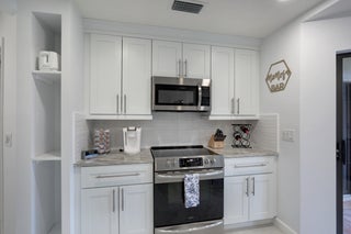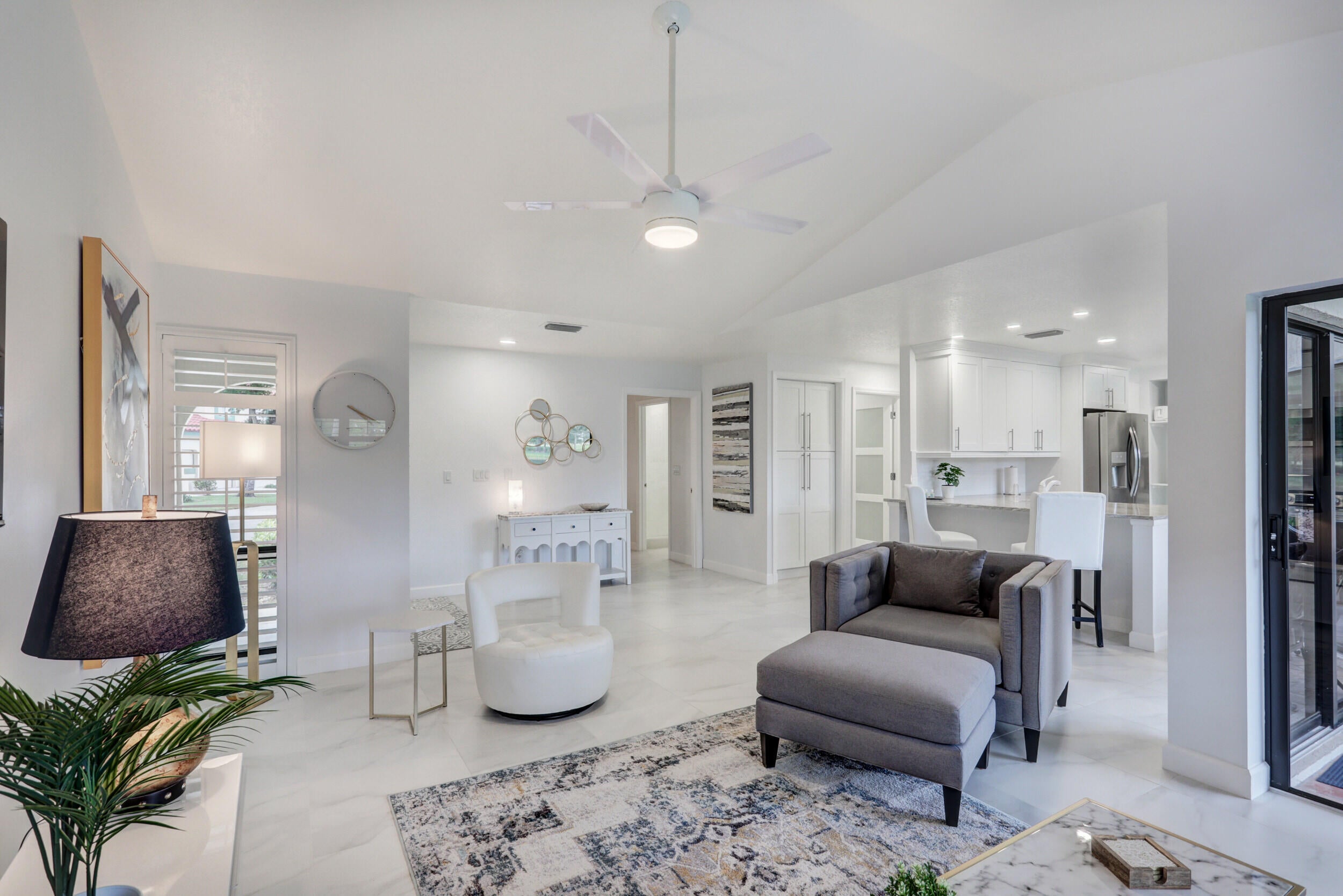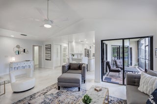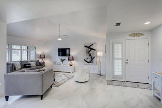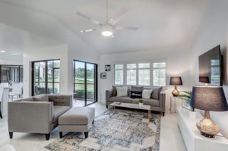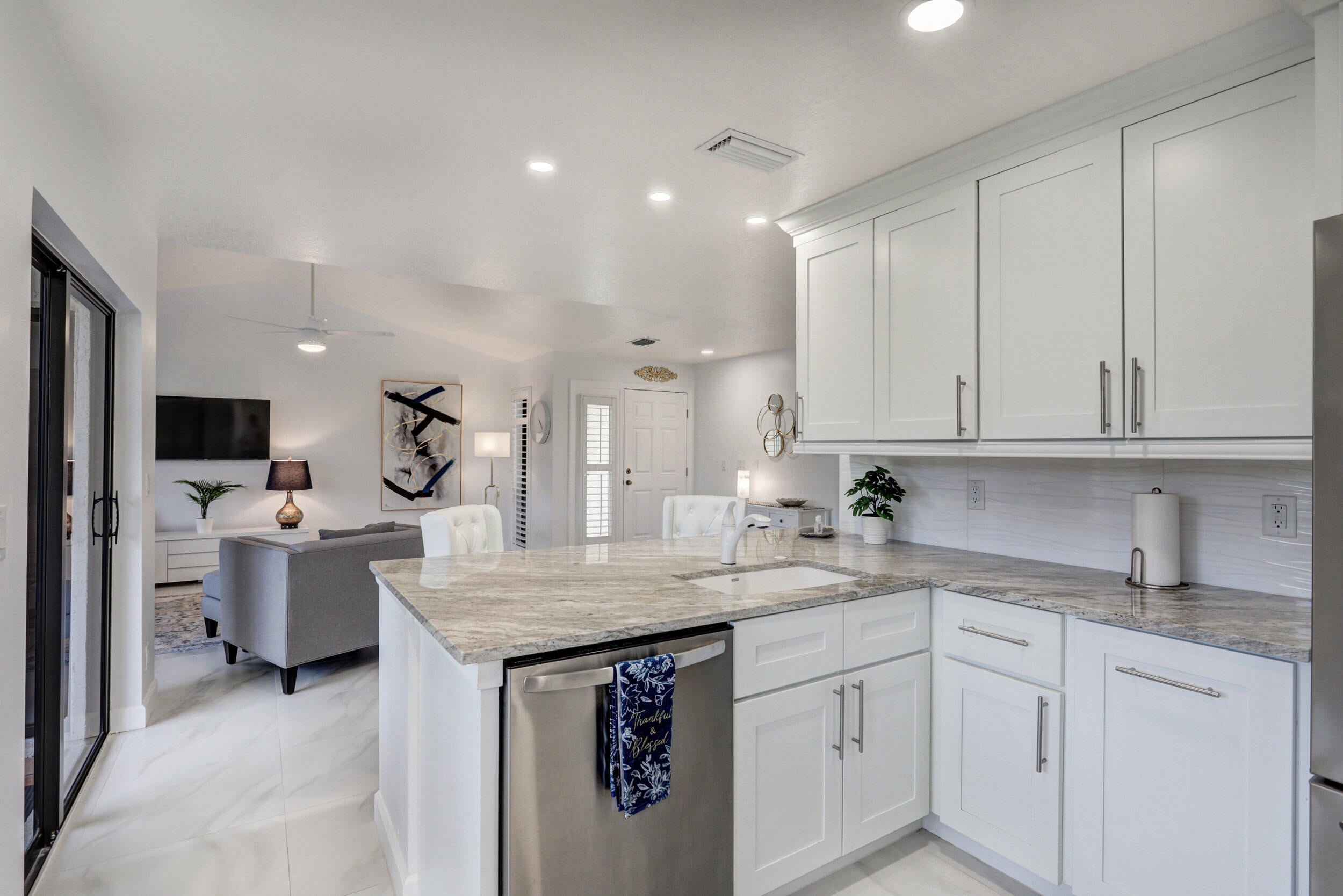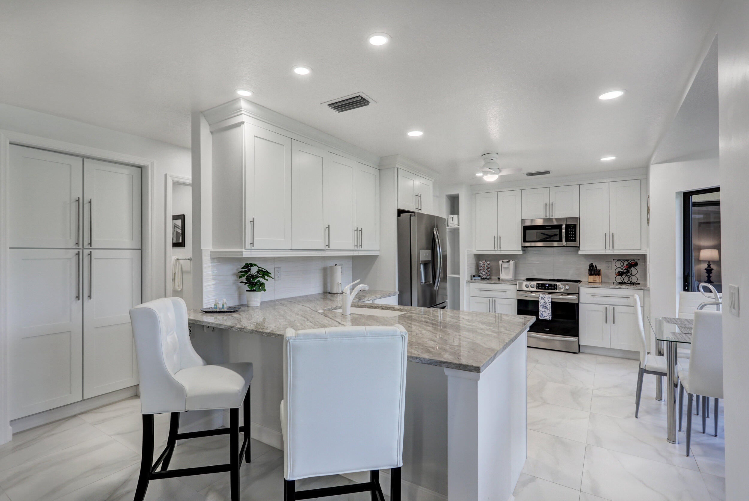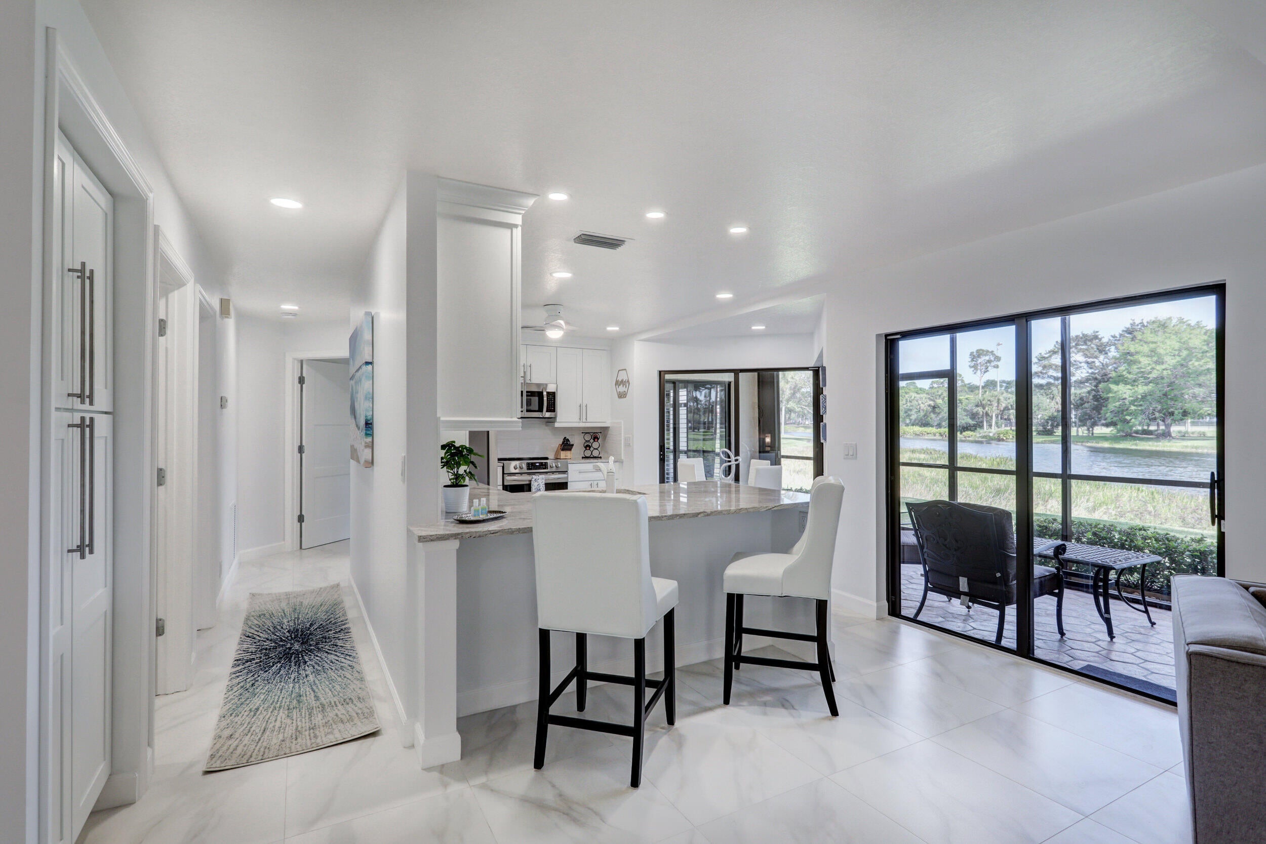 Step into refined comfort with this beautifully furnished and fully renovated 2-bedroom, 2-bath residence in the prestigious PGA National community. Thoughtfully designed with modern finishes and sophisticated details, this home includes a private 1-car garage and a serene screened patio offering sweeping lake views--an ideal backdrop for morning coffee or evening cocktails. Every element has been curated for convenience and style, making this property truly turnkey. The open layout blends effortlessly with upscale furnishings, creating a warm yet elegant atmosphere. Perfectly situated across from the sparkling pool and the lush PGA National Park, you'll enjoy resort-style amenities right outside your door--