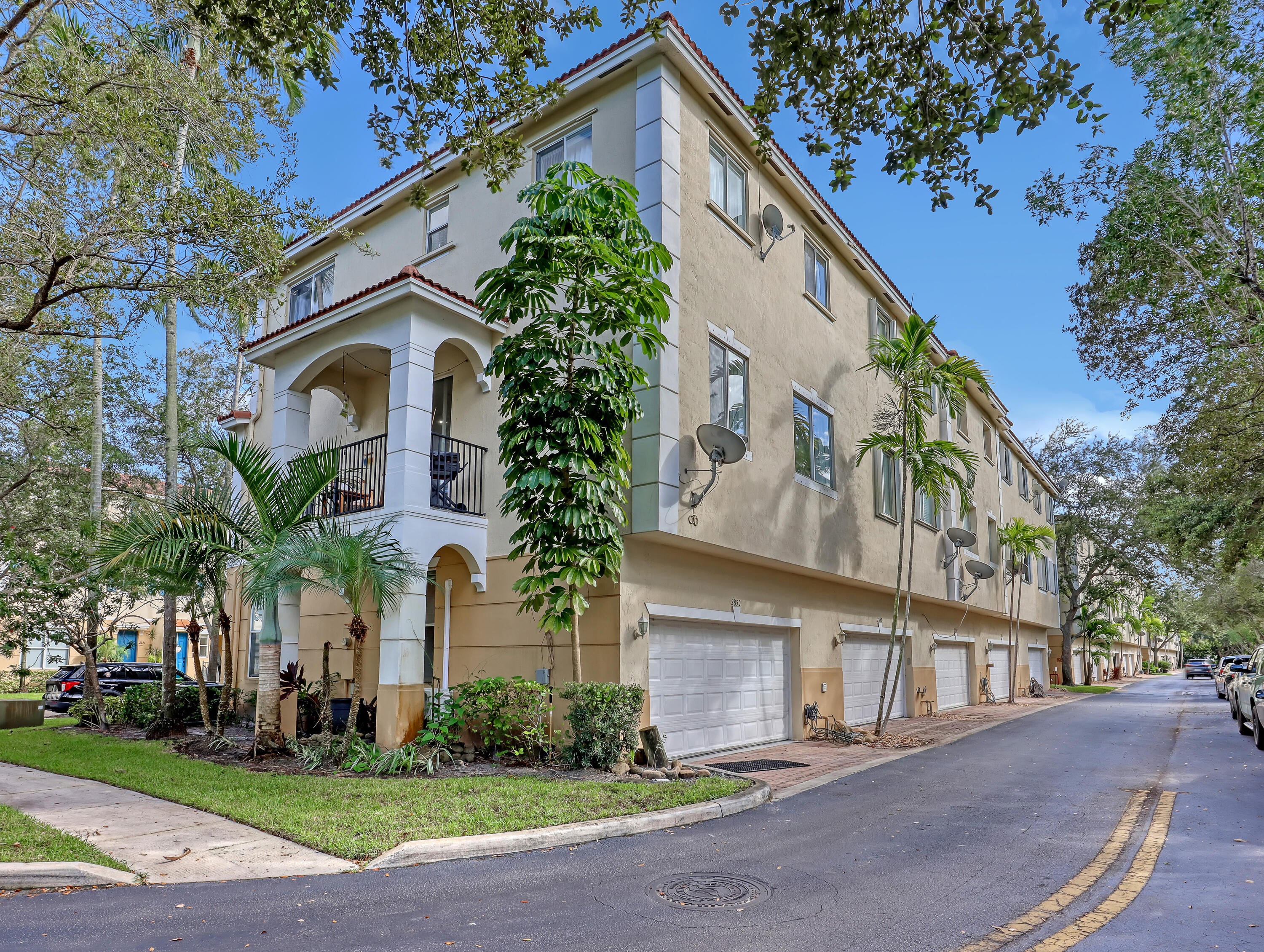 Welcome to Parkside Square, a hidden gem in Boynton Beach. This beautifully maintained 3-story end-unit townhome offers 3 bedrooms plus a den, 2.5 baths, and a 2-car garage with over 1,800 sq. ft. of bright living space. Enjoy an open-concept second floor with a spacious living and dining area, island kitchen with wood cabinetry, stainless steel smart appliances, and a covered balcony with tranquil views. The primary suite features dual vanities, a soaking tub, separate shower, and walk-in closet. Updates include new AC (2024), washer/dryer (2024), hurricane shutters, updated bath, epoxy garage floor, garage mini-split, fresh paint, and new lighting. Low HOA with pool, gym, pickleball, basketball and playground. Close to shopping, dining, I-95, and beach.