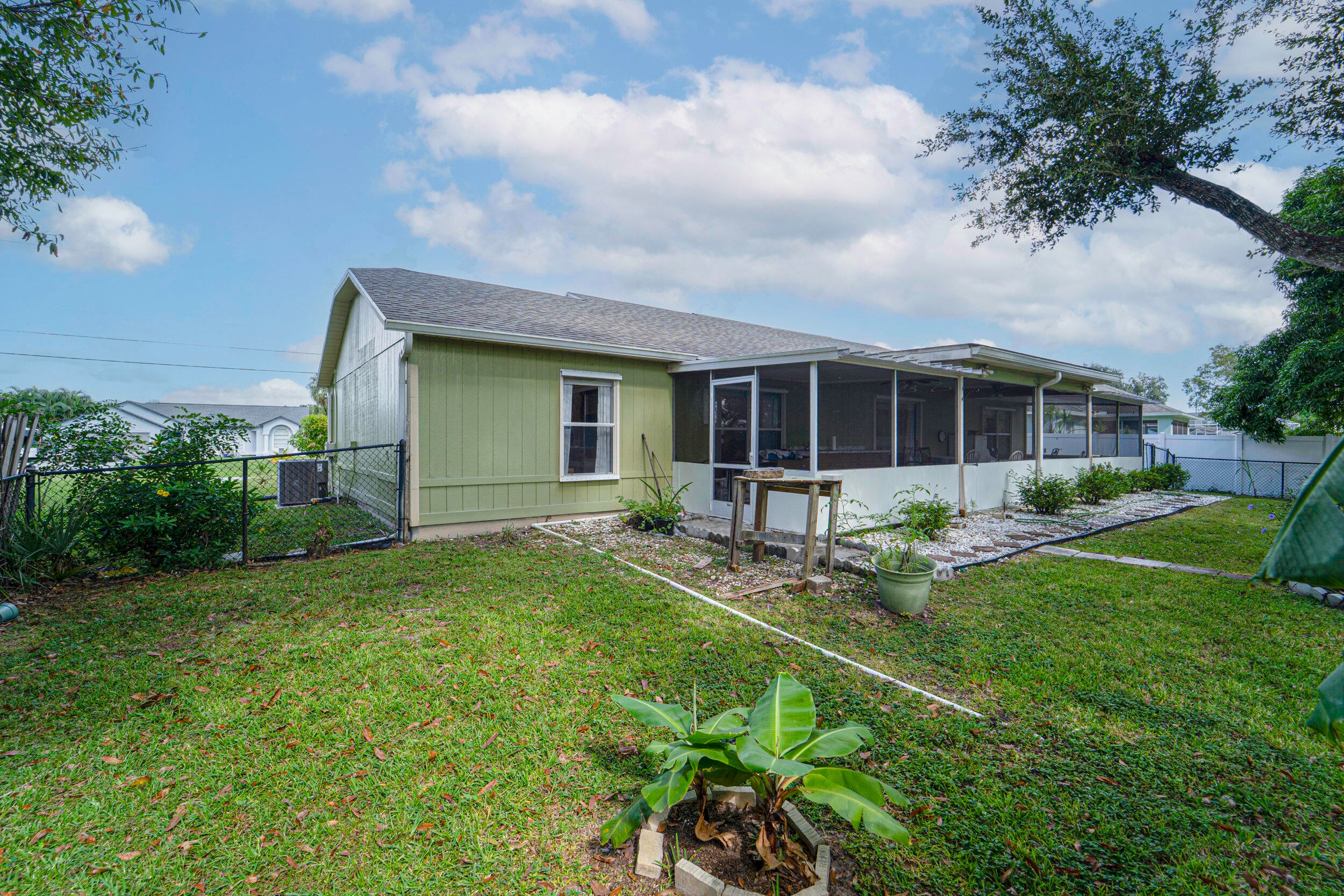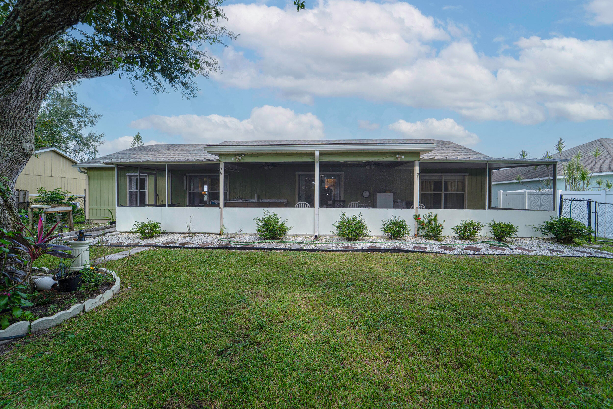 2023 roof! This beautiful 3BR/2BA home in central Port St. Lucie offers modern comfort & unbeatable convenience near shopping, dining, parks, and I-95 plus a short drive to Mets Ballpark. Enjoy vaulted ceilings & wood/tile floors throughout. Kitchen features newer granite countertops, stainless steel appliances & extra cabinetry. The split floor plan includes a primary suite with Jacuzzi tub & walk-in shower. With a 2024 A/C & 2024 water heater you can be confident in their reliability. The fully fenced backyard with no direct rear neighbors & spacious front porch gives you 2 choices for outdoor relaxation. Located on a quiet yet accessible street this home blends style, privacy & peace of mind!
