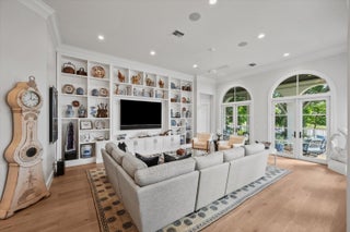 Built-in Shelves, Entry Lvl Lvng Area, Fireplace(s), French Door, Split Bedroom, Volume Ceiling, Walk-in Closet
