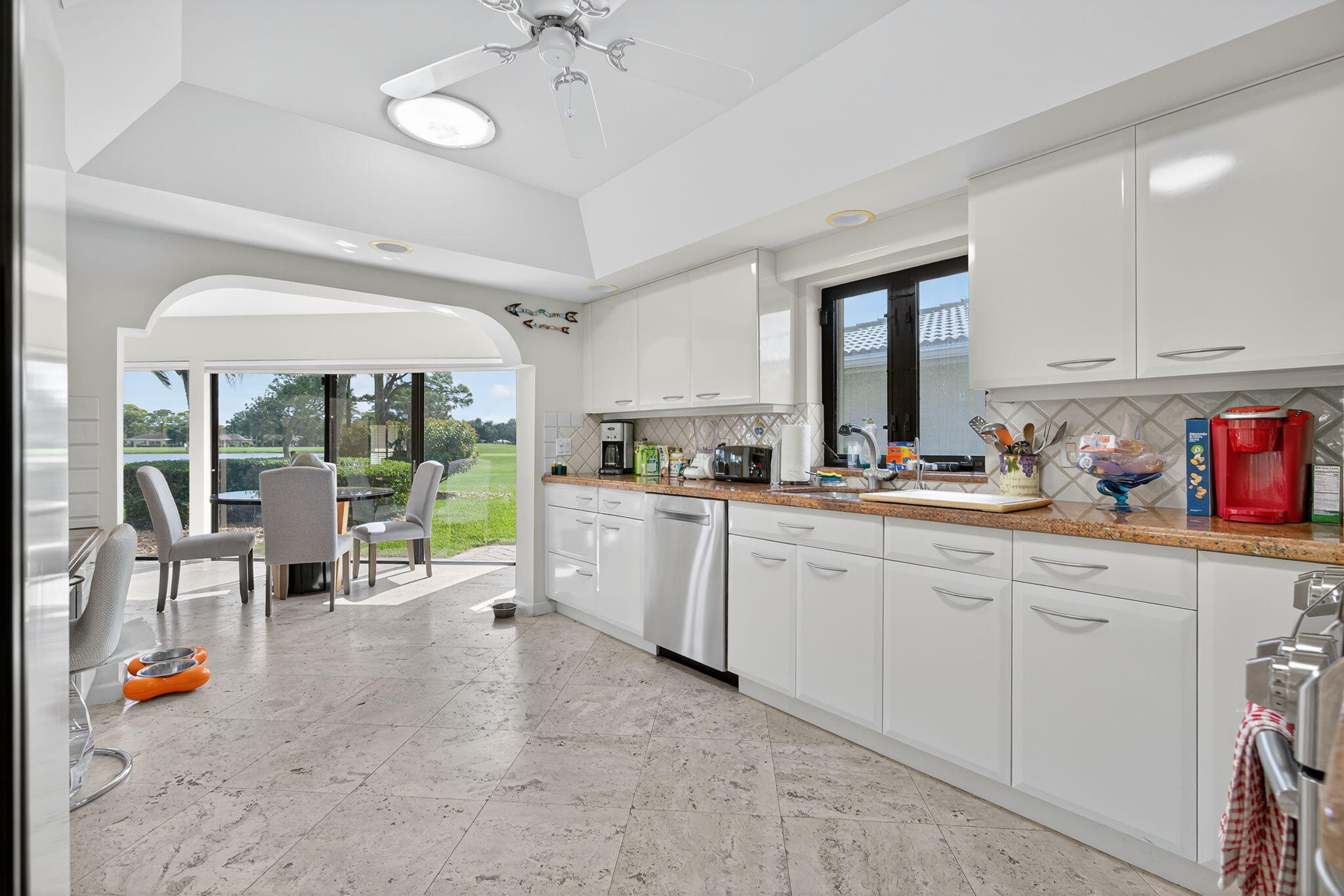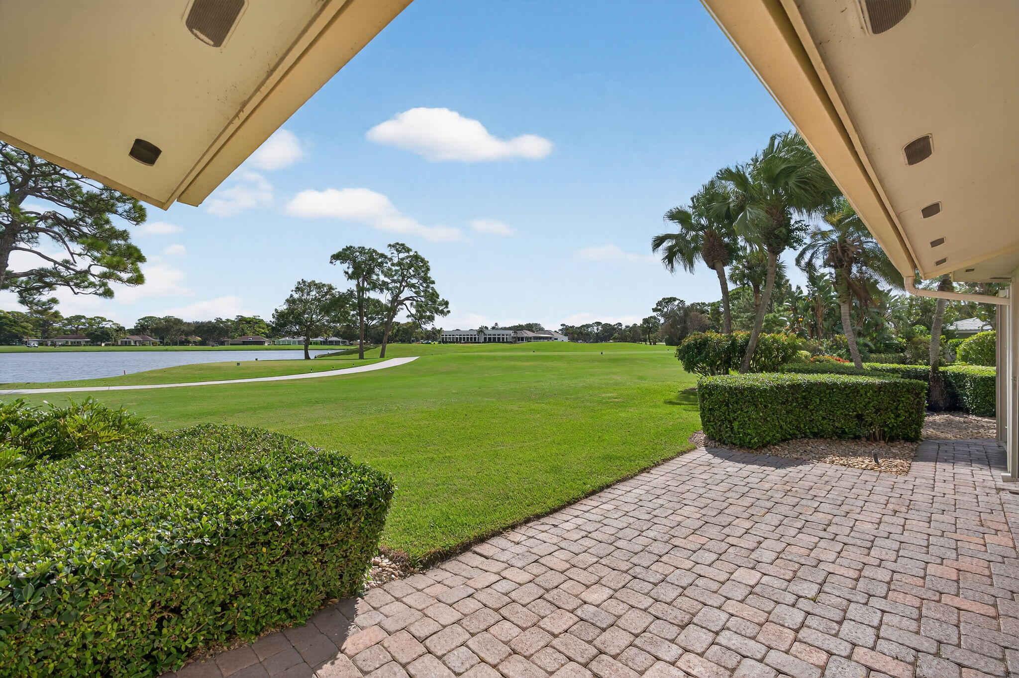 A spectaculate view awaits you as you enter this bright, airy, CBS home overlooking the 17th hole and its expansive lake as well as the East Clubhouse. Lots of square footage, vaulted ceilings and open floor plan allow you to create your own paradise in this sought after location in Eastpointe. Cozy, West Village is away from the community traffic, yet a stone's through from the East Clubhouse as well as I-95. One of a kind!
