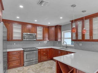 Welcome to your dream home! This beautifully maintained 4-bedroom, 2-bath residence is ideally located just minutes from the beach, downtown Boca Raton, Mizner Park, the Brightline station, FAU, Town Center Mall, and I-95. Nestled in a desirable, A-rated school district with no HOA, it offers both convenience and freedom.Inside, the split floor plan features bright open living spaces with 24-inch porcelain tile, recessed lighting, and abundant natural light through PGT impact windows. Recent upgrades include a tankless water heater, new HVAC system, and upgraded electrical panel with generator transfer switch.The chef's kitchen boasts rich wood cabinetry, quartz countertops, a wine cabinet, tiled backsplash, stainless steel appliances, and a breakfast bar with pendant lighting