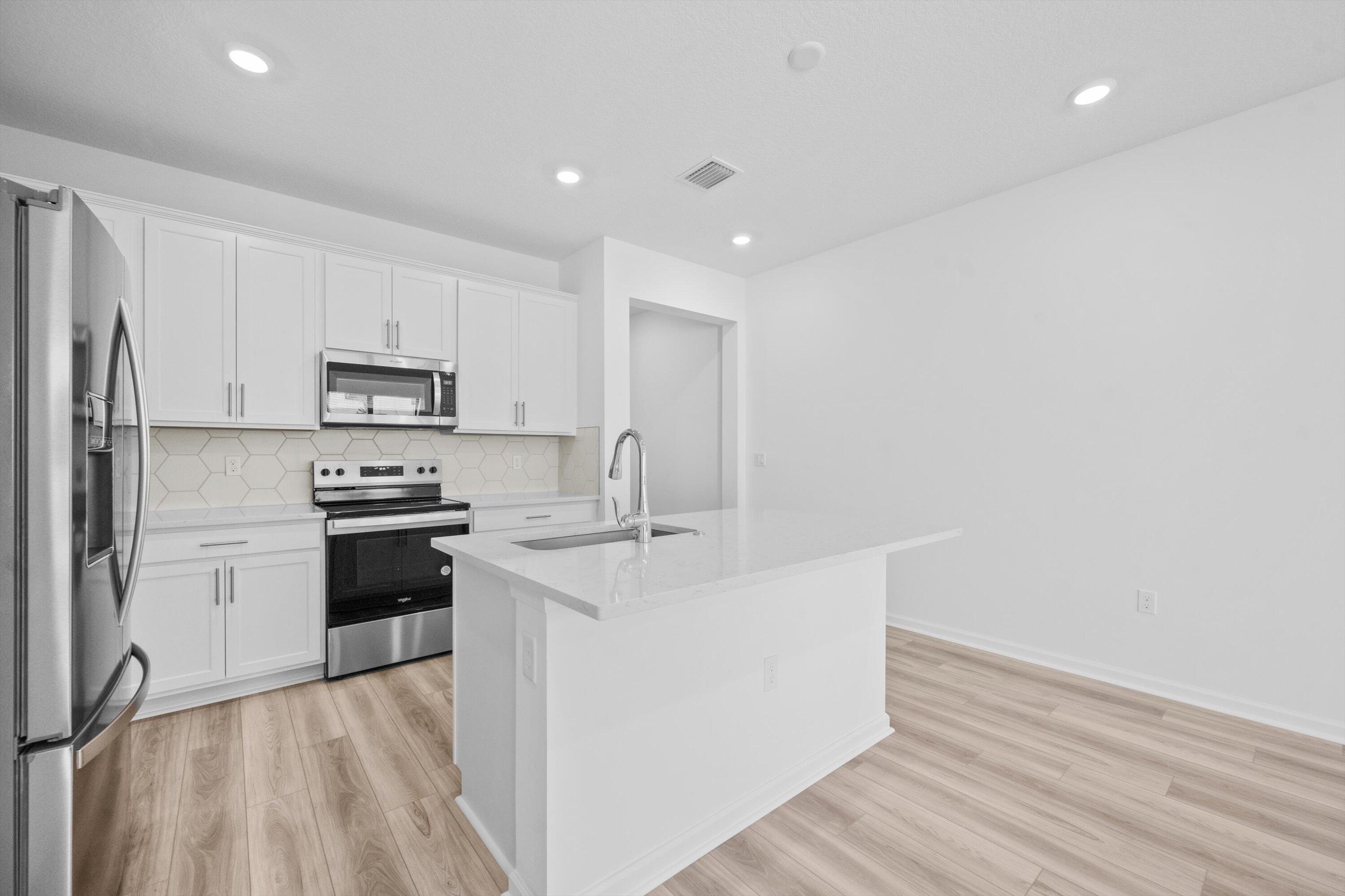 Welcome to this brand-new 2025-built 3-bedroom, 2.5-bath, 1 car-garage townhome in the beautiful Camellia community of Stuart. This modern home features an open-concept design with a bright kitchen that flows seamlessly into the spacious living area filled with natural light. Enjoy luxury vinyl plank flooring and designer finishes throughout.Upstairs offers 3 large bedrooms and a laundry closet with washer and dryer included. The primary suite features a large walk-in closet and a luxurious bathroom with dual sinks. Additional highlights include a private fenced backyard with sitting area, custom blinds, and an attached garage with storage. SEE MORE REMARKS...Residents enjoy resort-style amenities including river access with kayak and paddleboard storage, a scenic walking trail around the lake, and a large pool with lounge area and cabana room. Conveniently located near highways, shopping, dining, and downtown Stuart. Just completed, move-in ready, and ready to make your own.