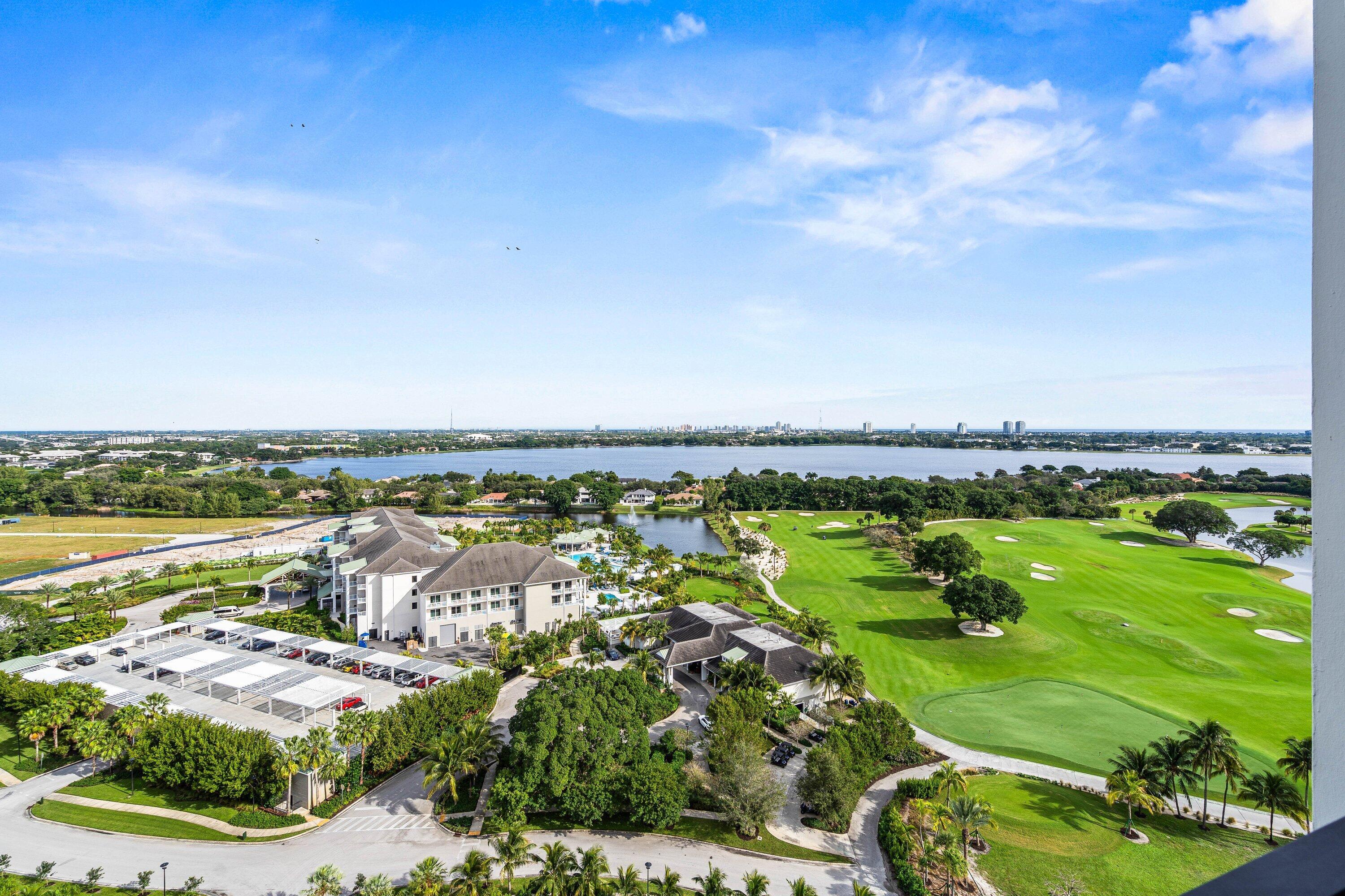 Fantastic opportunity to own the 21st elevation Penthouse in a private golf community with no membership mandatory. This1bedroom/1.5 bath PH with breath-taking panoramic view of intracoastal, ocean, downtown skyline, and newly designed Jack Nicklaus golf course is completely renovated and features custom made kitchen with granite countertop and steel appliances, new bathrooms, floor-to-ceiling sliding glass doors. Covered large balcony is perfect for relaxing and entertainment. Additional perks include secure access, parking, individual storage area. The building offers completed upgrades as new roof, cooling tower, building AC unit, elevators, generator, concrete restoration, balconies, painting. HOA includes Wi-Fi, cable, water, gym, pool. The location is great-minutes to airport,ocean, downtown, walking distance to Palm Beach Lakes outlet with shopping galore and restaurants.
