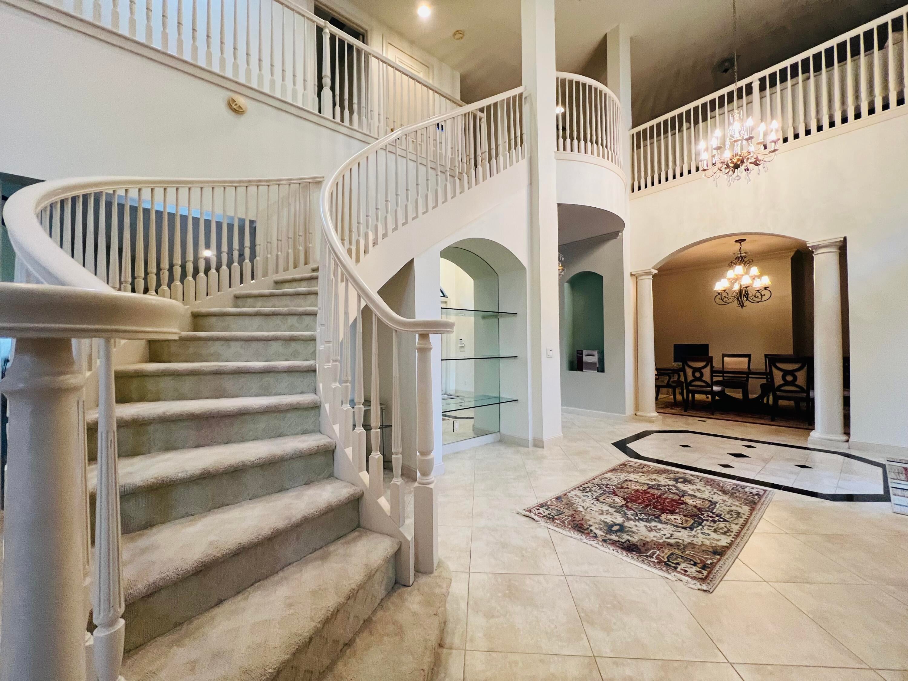 Spectacular 5-Bedroom Pool Home in The Estates at The Isles of Wellington! This stunning 5-bedroom, 5.5-bathroom home with a den offers beautiful lake views and is perfectly situated in the exclusive Estate section of The Isles at Wellington. Step inside to soaring ceilings and a grand spiral staircase that set the tone for this impressive residence. The spacious kitchen features an island, pantry, and updated appliances, opening seamlessly to the family room with picturesque views of the pool and lake. The first-floor primary suite offers two oversized walk-in closets, direct pool access, and a luxurious layout. The main floor also includes formal living and dining areas, a den/office, a cabana bath, and a convenient wet bar--ideal for entertaining. Newer roof and new A/C units!Upstairs, you'll find four generous guest bedrooms, three full bathrooms, and a versatile loft/living area. The backyard is a true South Florida retreat, featuring a sparkling pool, fenced yard, and ample space for an outdoor kitchenperfect for enjoying those beautiful sunsets. Additional highlights include a 3-car garage and access to world-class community amenities such as a clubhouse, resort-style pool, fitness center, basketball, and tennis courts. Conveniently located near top-rated schools, shopping, dining, and the Florida Turnpike. Experience luxury living at its finest in The Isles at Wellington!