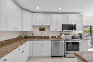 Don't miss this opportunity to make this exceptional 1st floor corner apartment your own. Modern updates, spectacular lake views, & inviting outdoor spaces. Open concept w/white ceramic floors throughout living areas. Very Light & Bright, Sliding glass doors from kitchen & dining area to outdoor patio. Perfect for entertaining/golf cart parking. Screened Lanai to enjoy gentle breezes & tranquility. Updated primary en suite. New A/C, newer hot water heater, washer & dryer. LED lighting throughout, and NO POPCORN ;-)