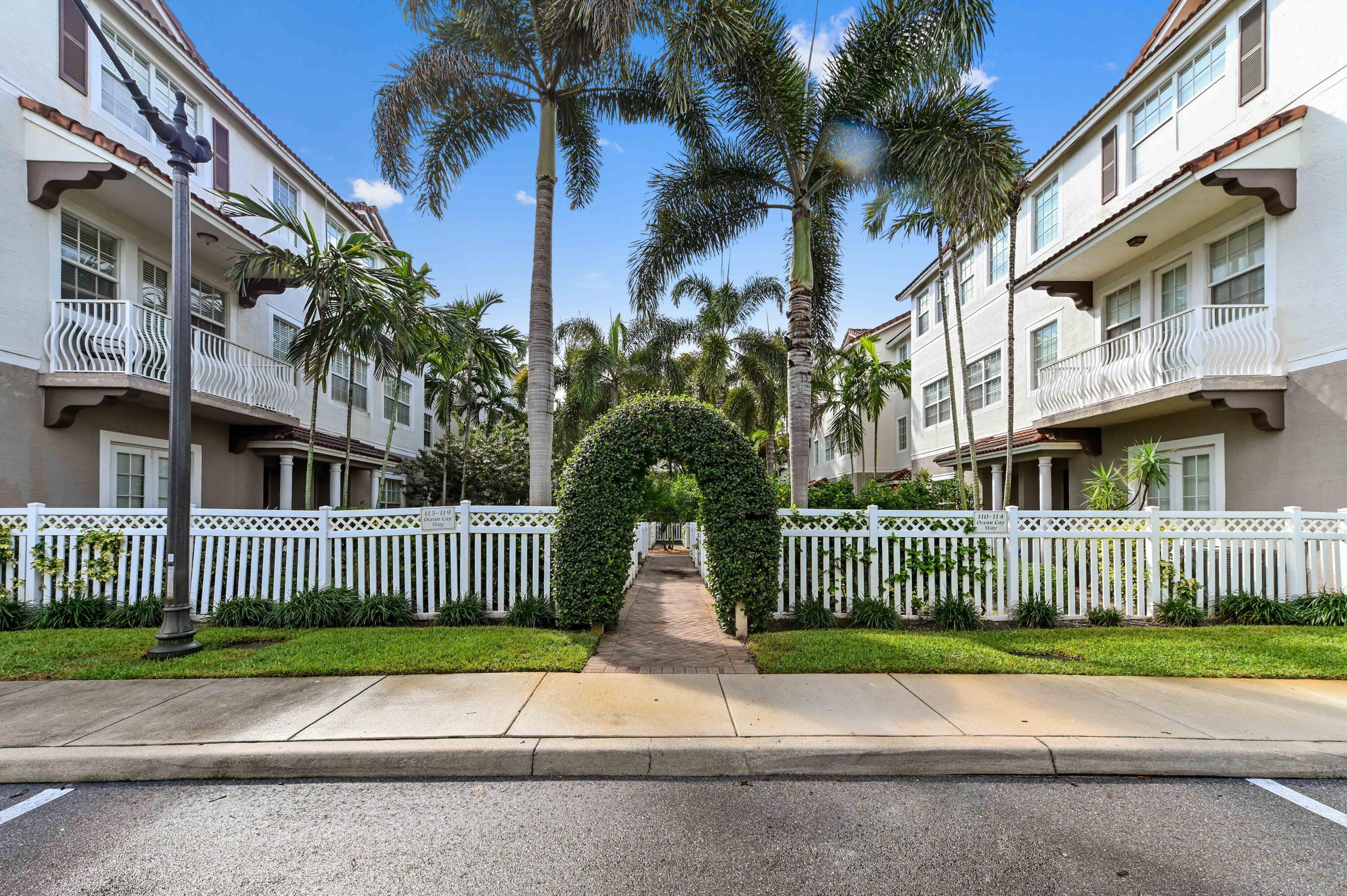 Welcome to this stunning three-story intracoastal townhome in Ocean Cay, where modern comfort and a vibrant community lifestyle converge. The community offers a picturesque entrance with a white picket fence and a charming hedge-covered archway, leading down a brick-paver walkway framed by towering palm trees. The exterior features a classic Florida Mediterranean style with private attached two car garage.Step inside to a bright, open-concept floor plan defined by clean, neutral ceramic tile flooring that flows throughout the main living area. The living room is spacious and welcoming, with ample natural light and offers a versatile space perfect for a media area or home office setup on the ground floor. The kitchen has an expansive island, stainless steel appliances and granite countertops. The house also has several upgrades including impact windows and doors throughout the home, Wi-Fi enabled garage door, washer/dryer under a year old and the property has a 2023 AC! Residents of this community enjoy an exceptional, private resort style experience. Highlighted with a beautifully maintained brick-paver pool deck surrounds a sparkling community pool and is framed by lush palm trees, creating a secluded tropical oasis. This tranquil setting, combined with the townhome's open layout and prime location near the Intracoastal Waterway, makes it an ideal sanctuary for convenient, stylish living.