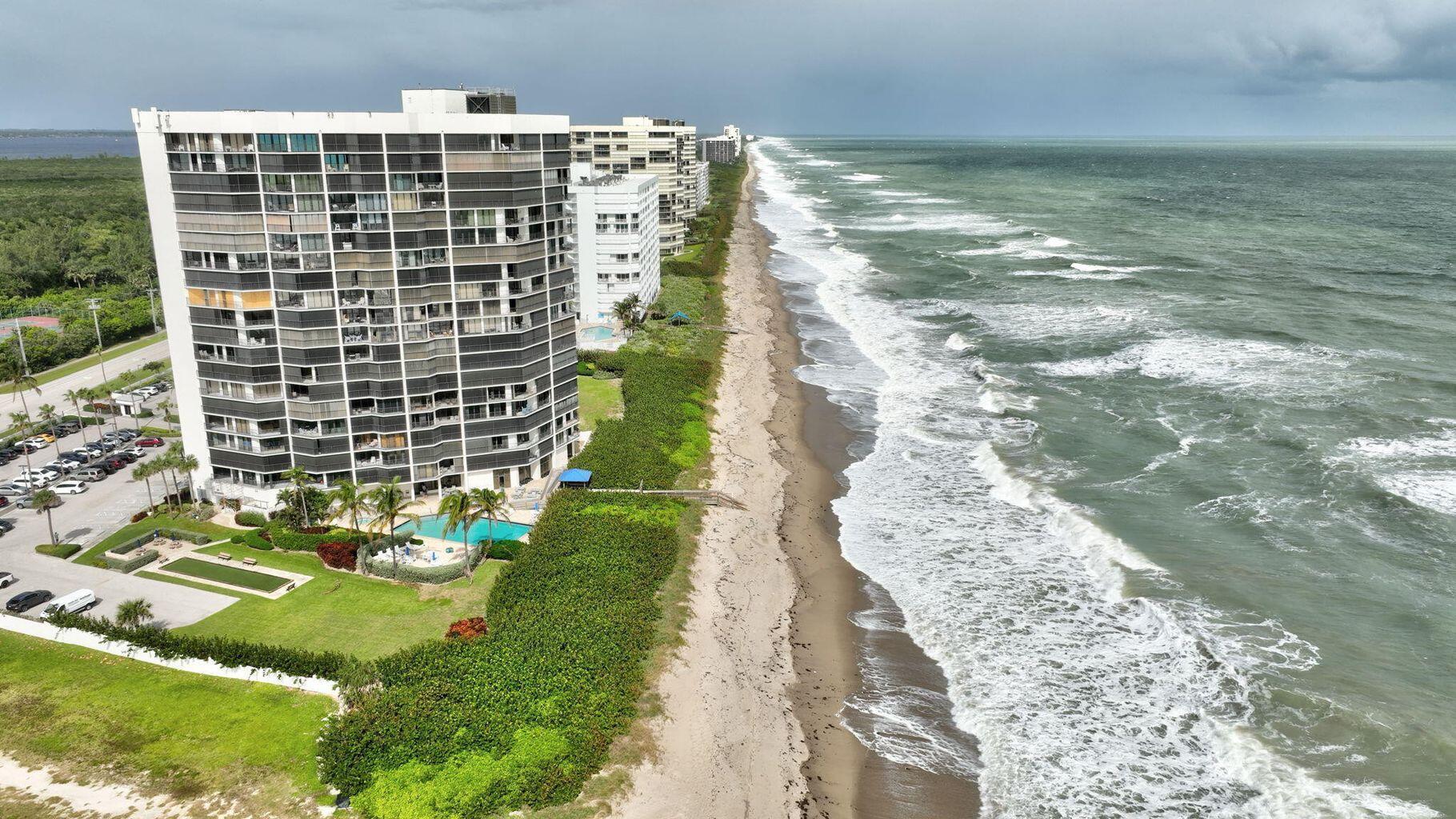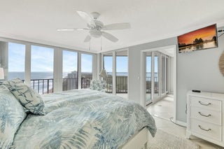 OUTSTANDING views in this SE corner Penthouse unit beautifully updated, available furnished. Prime building location. Priceless Ocean & Intracoastal views... imagine sunrise & sunset from home! Foyer entry to open kitchen/living space. Top grade updates throughout... Quartz counters, breakfast bar, black stainless appliances & additional cabinets/pantry. Washer & dryer. Primary suite with floor to ceiling windows overlooking the ocean. Large double vanity & oversized shower. Guest bedroom has forever views of the Intracoastal. Renovated guest bath with neutral tone granite & tile. Spacious balcony with east, south & SW exposure. Private beach access, gorgeous pool, fitness center, community room, tennis/pickle ball, private lot to park your RV or Boat trailer.