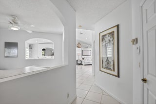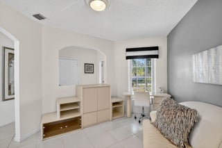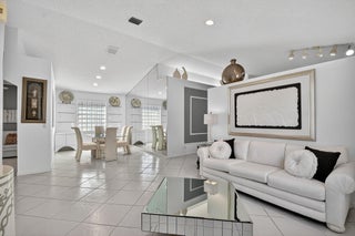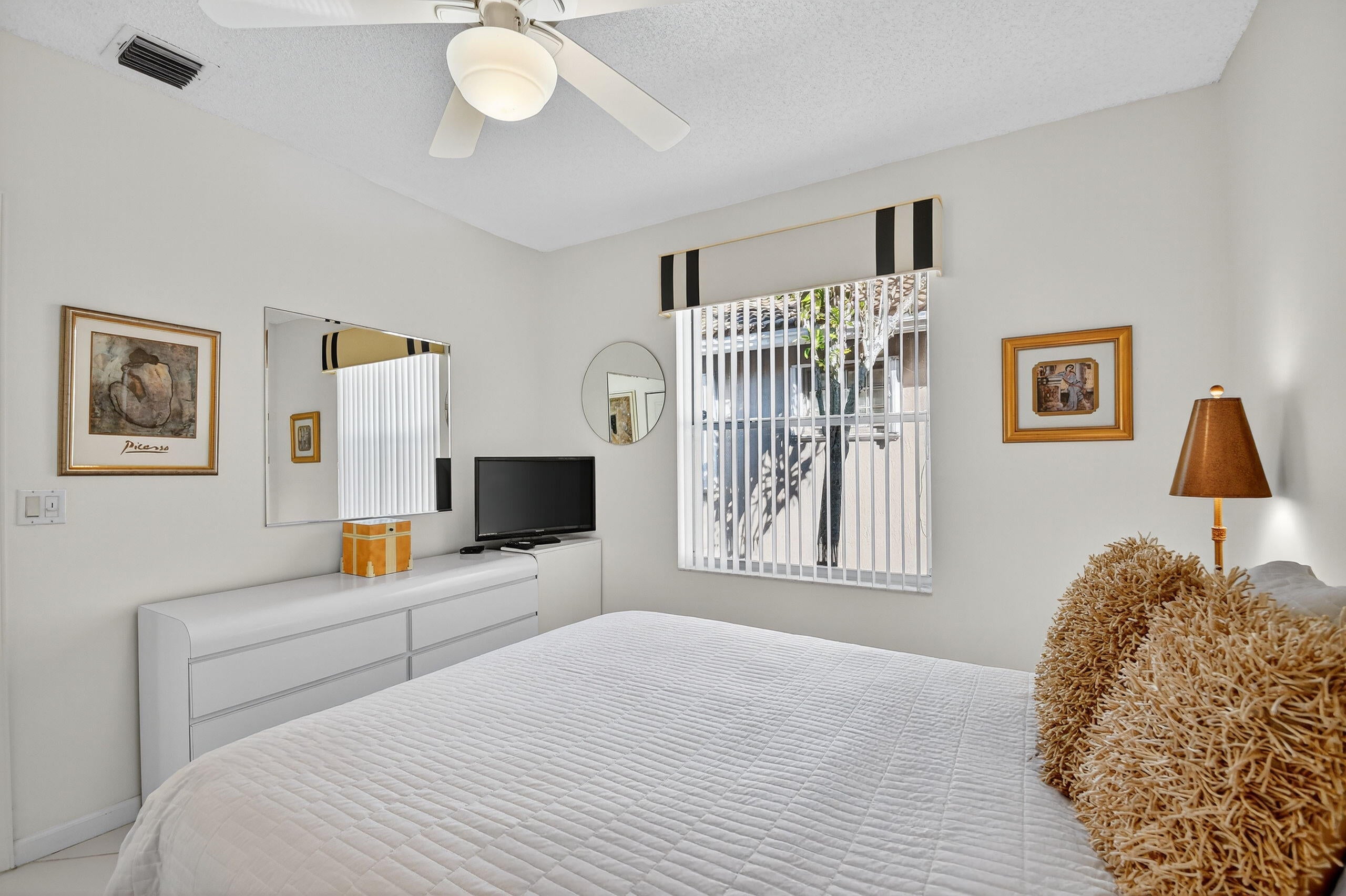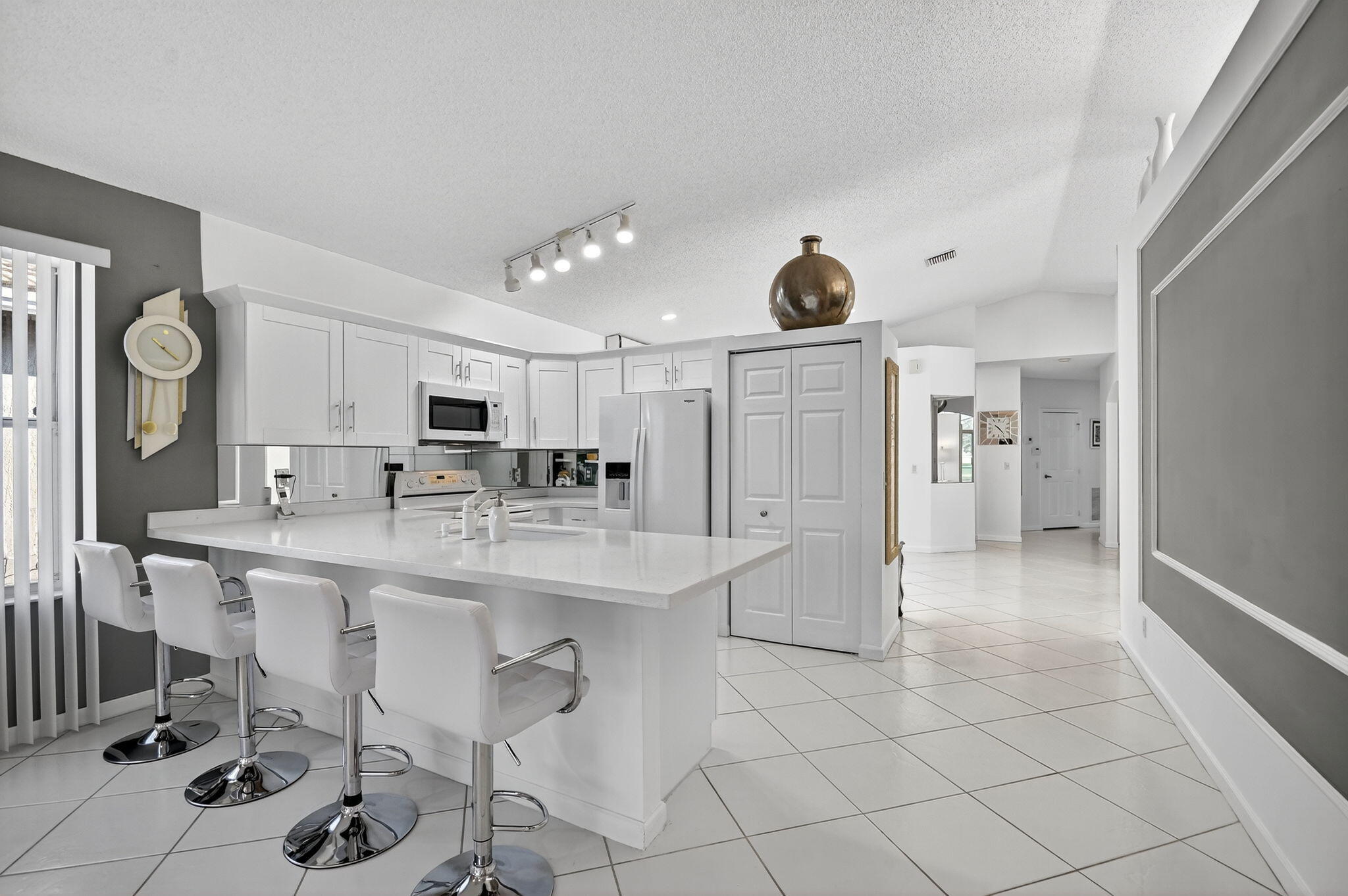 Step into a life of true peace in this beautifully maintained 3-bedroom, 2-bathroom home, The third bedroom has been professionally converted to a spacious den, perfect for an office, library, or media room. Imagine starting your day on the screened patio, sipping coffee as you overlook the sparkling lake and fountain. Perfectly situated on a very quiet, no-through-traffic street, you get the best of both worlds: genuine tranquility and unparalleled convenience, as this home is perfectly positioned within easy walking distance to the pool, clubhouse, and the heart of it all.The freshly manicured exterior immediately invites you in, and once inside, high ceilings and expansive windows flood the space with natural light, creating an open and uplifting atmosphere where tile flooringflows seamlessly throughout. You'll love the generous living spaces, including a formal living room and a separate family room - perfect for entertaining or elegantly showcasing your favorite art. The updated kitchen is a delight, featuring sleek white quartz countertops, a stylish look, and all white appliances. Retreat to the primary bedroom where you'll wake up to calm water views, complete with two walk-in closets. The community supports a vibrant, active lifestyle with amenities like a social hall, fitness center, tennis, pickleball, bocce, billiards, and shuffleboard, all in a prime location near essential shopping, dining, and medical facilities. Best of all, the HOA fees offer incredible value and peace of mind, covering Comcast cable, internet, meticulous lawn care, house painting every 7 years, alarm monitoring, a secure guard gate, and more.