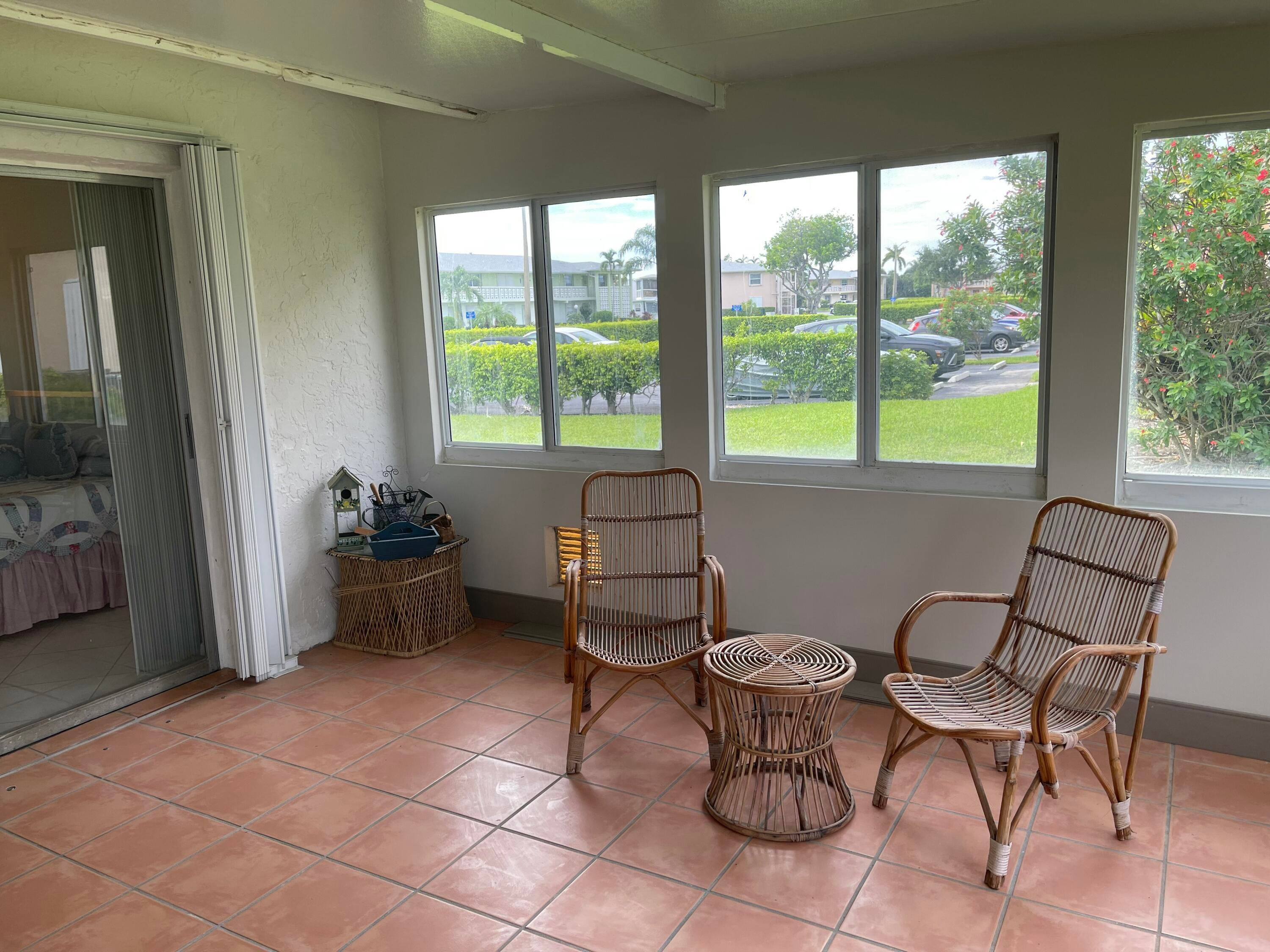 This charming villa offers it all! Nestled in the centrally located highly desirable gated 55+ Pines of Delray North community.Step inside this meticulous, beautiful, sun-drenched light bright and airy end unit villa.The east/west exposure guarantees natural lighting from sunup to sundown.This 2 bedroom, 2 bath unit has updated white shaker kitchen cabinets and bathroom vanities, tile throughout and neutral furnishing.Second bedroom is setup as a den with a pull-out queen sofa enabling for an easy transition into an overnight guest retreat.Two sets of expansive sliders in the the primary bedroom and living room open to a extra large enclosed porch for year round use.The community boasts 2 pools, two clubhouses, pickleball and tennis courts,fitness rooms, and many clubactivities, special events, and excursions. Just minutes away from one of Florida's top vacation destinations... Atlantic Avenue where one can enjoy upscale dining, fashion boutiques, entertainment and pristine beaches. The five minute away assess to Florida's 1-95 makes airports West Palm Beach and Ft Lauderdale a short drive away. This move-in ready villa is not only a home...it is a lifestyle awaiting your zest for life.