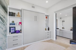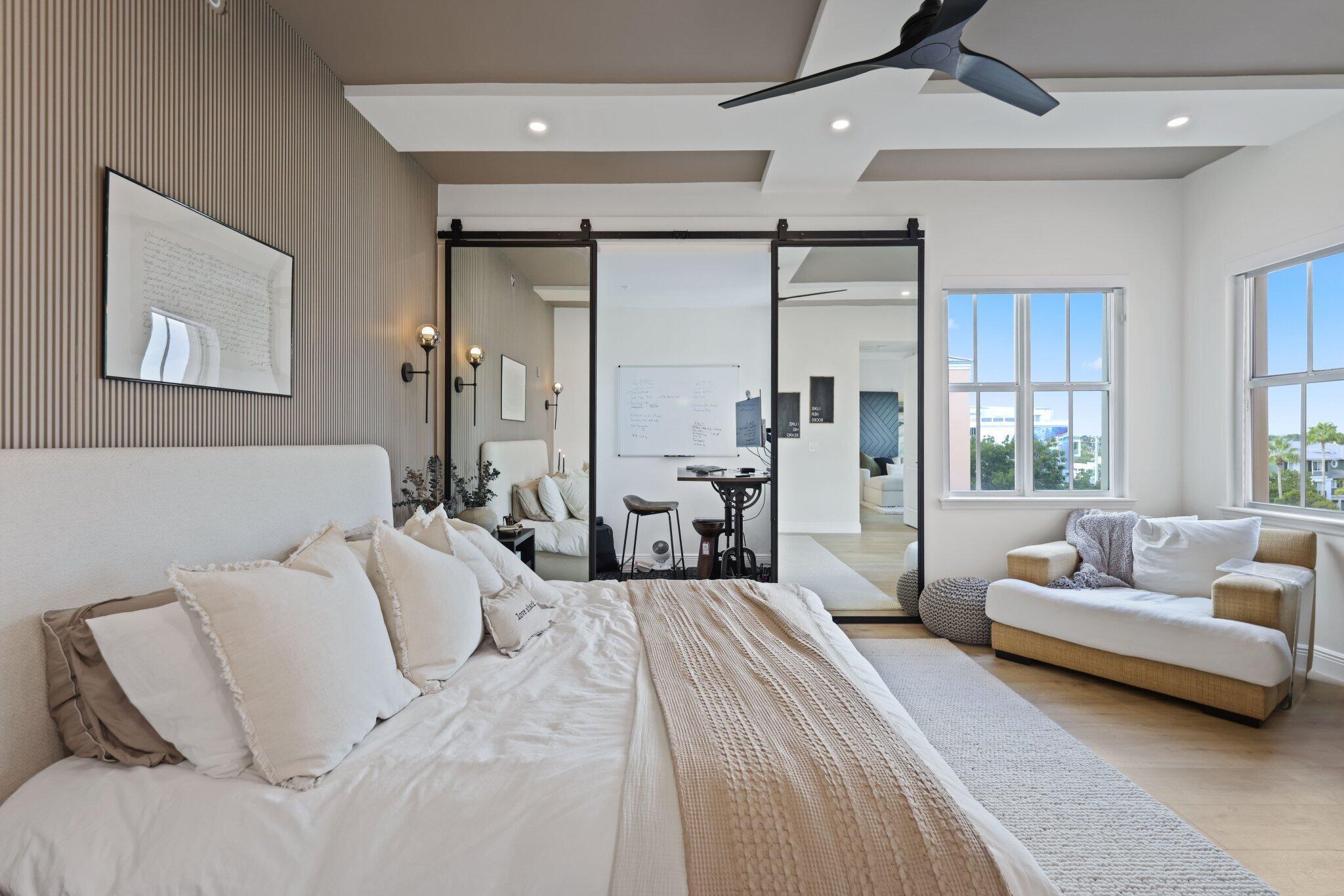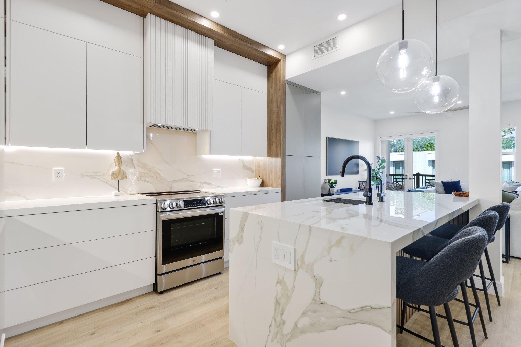 Now available for an annual lease! The crown jewel of downtown Delray Beach, this stunning top-floor corner unit in the prestigious luxury building of City Walk is more than a residence, it's a lifestyle. Completely reimagined from the ground up, every detail has been thoughtfully designed to create a light-filled sanctuary that blends modern luxury with zen-inspired sophistication. Raised ceilings, wide-plank blonde hardwood floors, and strategically opened walls provide an airy, open flow, while the concrete construction ensures privacy and peace with no neighbors above. At the heart of the home is a chef's dream kitchen, showcasing custom soft-close slatted cabinetry, a waterfall quartz marble island, and a seamless quartz backsplash that exudes sophistication.Premium appliances, including a built-in ice maker with three ice options, pair with features like a filtered hot and cold water system, undermount microwave, custom hood, oversized porcelain sink, and pull-out pantry drawers to make this space as functional as it is beautiful. The primary suite is a true sanctuary, offering a custom walk-in closet with linen-textured drawer faces and quartz marble accents, a dramatic slatted focal wall, and a private alcove perfect for a second office or reading nook. The spa-inspired primary bathroom features a custom double vanity, smart toilet, and a glass-enclosed wet room with rain shower, handheld, and oversized matte soaking tub. The second bedroom doubles as a master suite with its own designer ensuite bathroom and walk-in closet, while the third room is ingeniously designed as a multi-purpose office or guest retreat with a built-in queen Murphy bed, integrated storage, and designer finishes. Every space of this residence has been elevated with thoughtful details, from smart technology and remote-controlled blackout shades to an oversized laundry room with folding counter and a sophisticated half bath wrapped in natural grasscloth. Glass French doors open to a private balcony that floods the corner unit with natural light. Building amenities include an assigned covered parking spot and an exterior 8x8 locked storage unit. Located in the highly desirable Pineapple Grove Arts District, this home offers unmatched access to world-class dining, art galleries, nightlife, and Delray's pristine beaches, all complemented by the peace of mind that comes with brand-new electrical systems, updated circuit breakers, and an integrated sprinkler system. City Walk is dog friendly building with covered parking and a large storage facility which conveys with the unit. City Walk is in compliance with all of Florida's recent condo regulations.