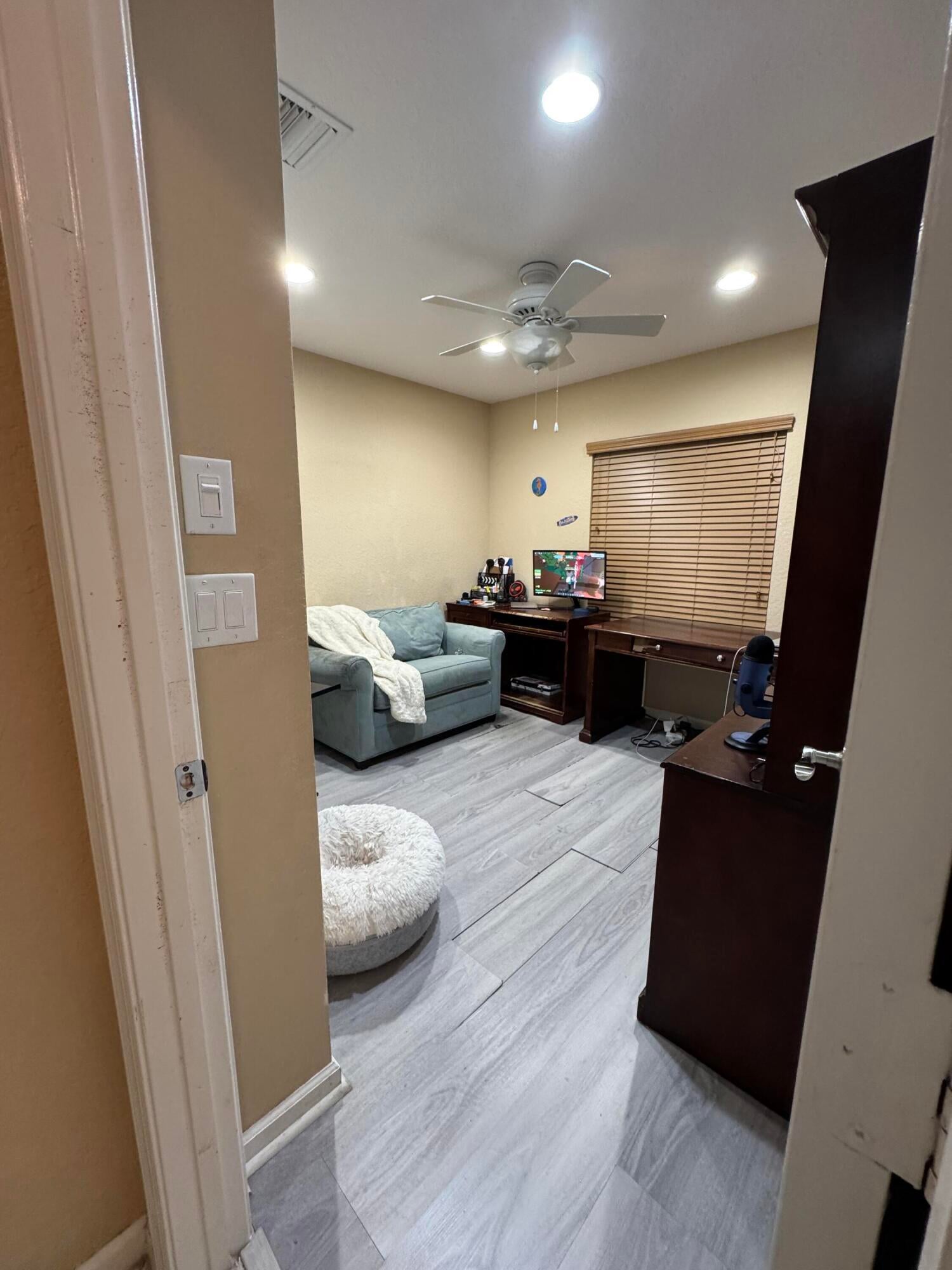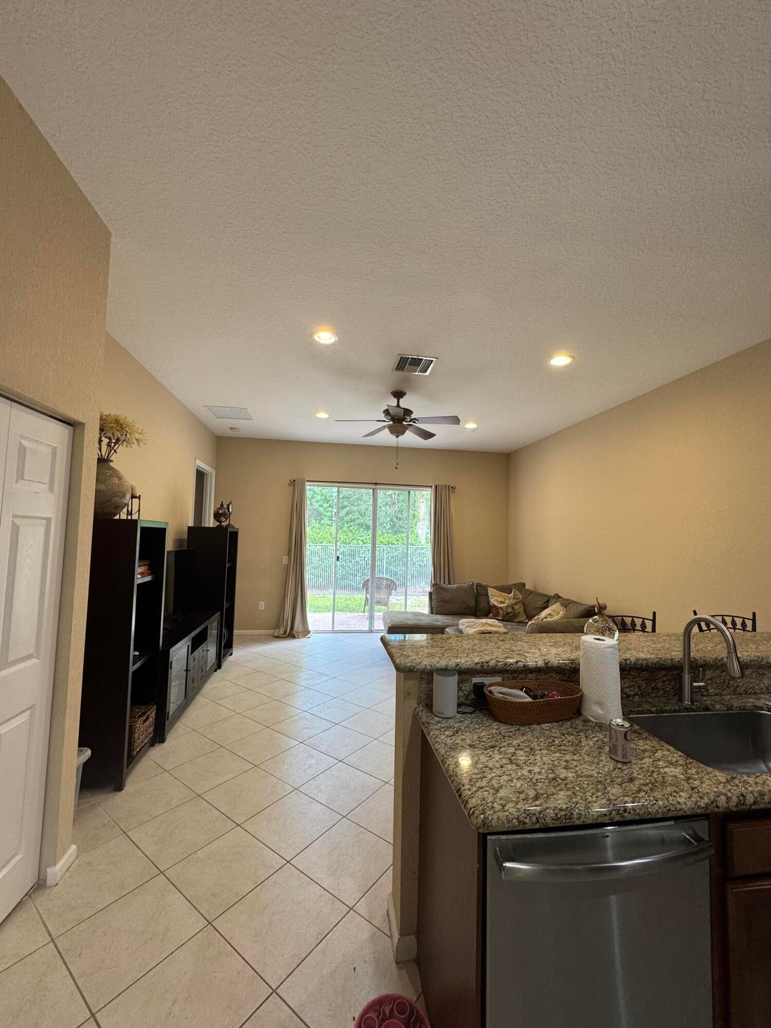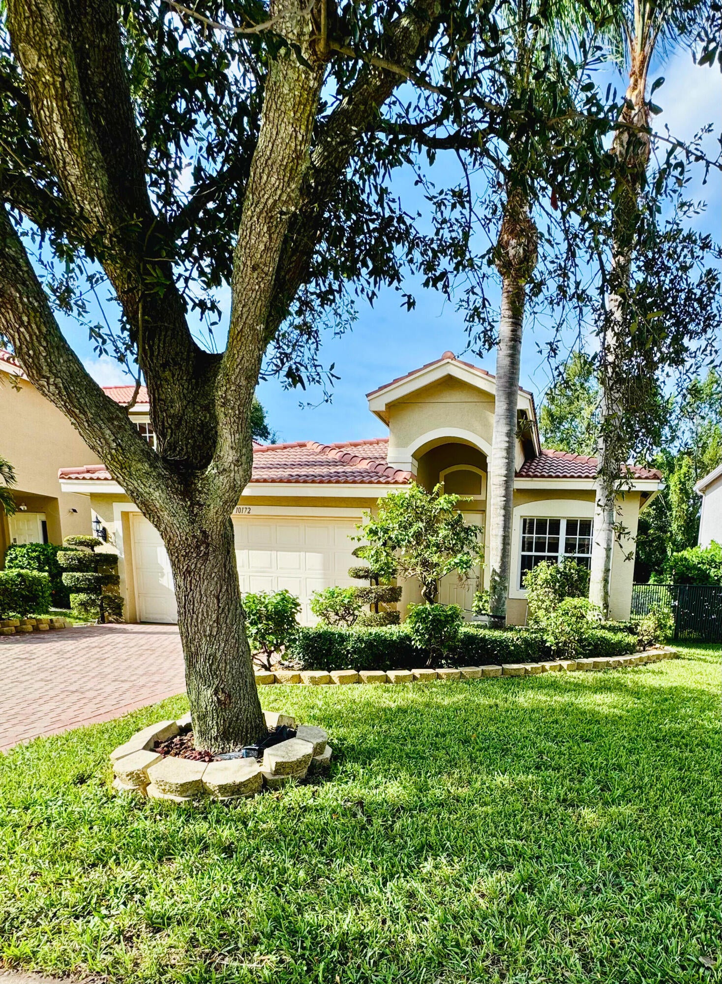 LOWEST-PRICED SINGLE FAMILY HOME IN GREYSTONE! OWNER MUST SELL BY DECEMBER! LOW PRICE DUE TO NEED FOR NEW FLOORING IN BEDROOMS!3-bedroom, 2-bath single-story home in Greystone featuring one of the largest family rooms in the community. Open layout flows to a private, tree-lined backyard with no rear neighbors and a custom fence - great for small pets. Kitchen includes stainless steel GE Profile appliances, built-in microwave/oven combo, and upgraded cabinets. Laundry room has a utility sink and LG front-load washer. Dining room features a glass block window. Master bath has dual vanity, separate toilet, and a rain shower with handheld wand. Modern conveniences include a Ring doorbell and manned community gate. Direct walking access to Hagen Road Elementary through the secure gate. Zoned for West Boynton Middle School and Park Vista High School. Community amenities include a clubhouse with resort-style pool, separate fenced toddler pool and tot lot, sports courts, and low HOA fees. Convenient to I-95, Florida Turnpike, and the beach.