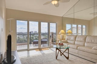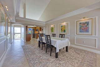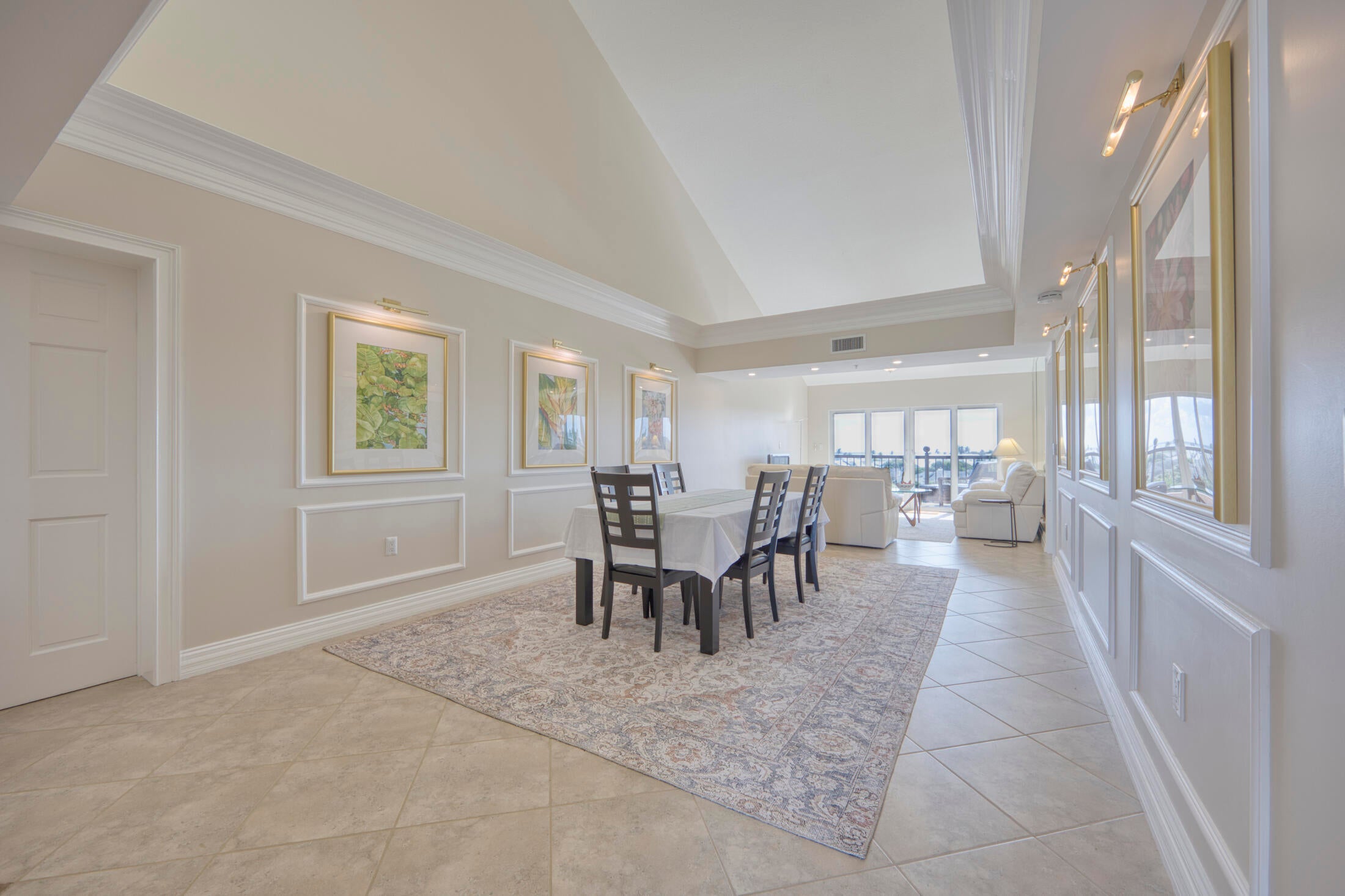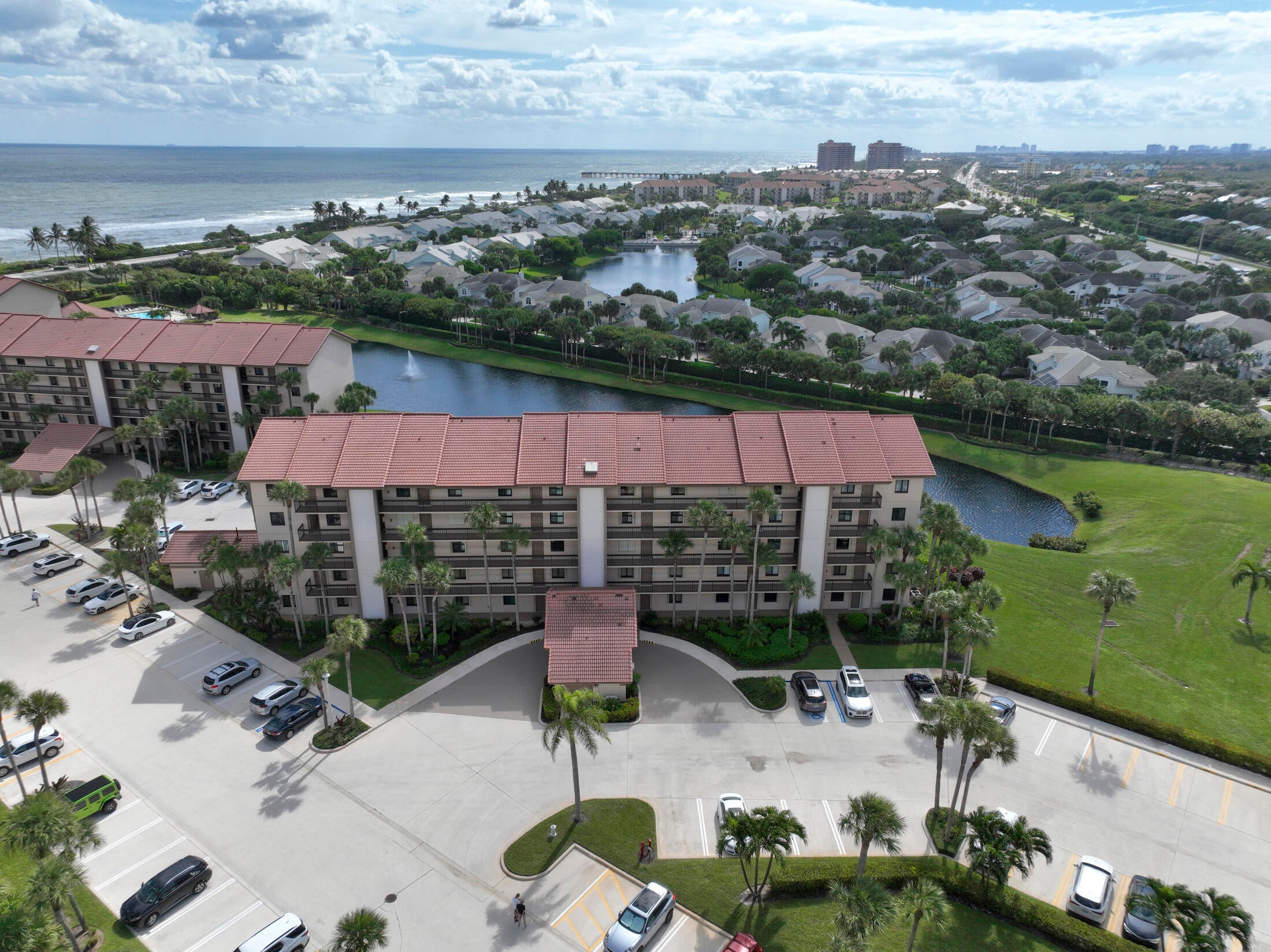Welcome to paradise in this rarely available penthouse, offering stunning views of the ocean and lake. Featuring soaring 20-foot vaulted ceilings and an expansive open floor plan, enjoy serene views from the oversized balcony, complete with wood-look tile, hurricane-impact sliding doors, and an electric retractable awning, perfect for sunny Florida days. The gourmet kitchen is equipped with custom cabinetry, granite countertops, crown molding, and stainless-steel appliances. The spacious primary suite includes an updated en-suite bath and a walk-in closet with built-in shelves. A versatile laundry room with space for a home office or extra storage. The amenities included a heated pool, tennis, and pickleball courts. Enjoy the private gated walkway to the sand and surf.