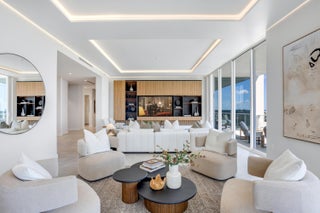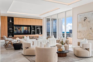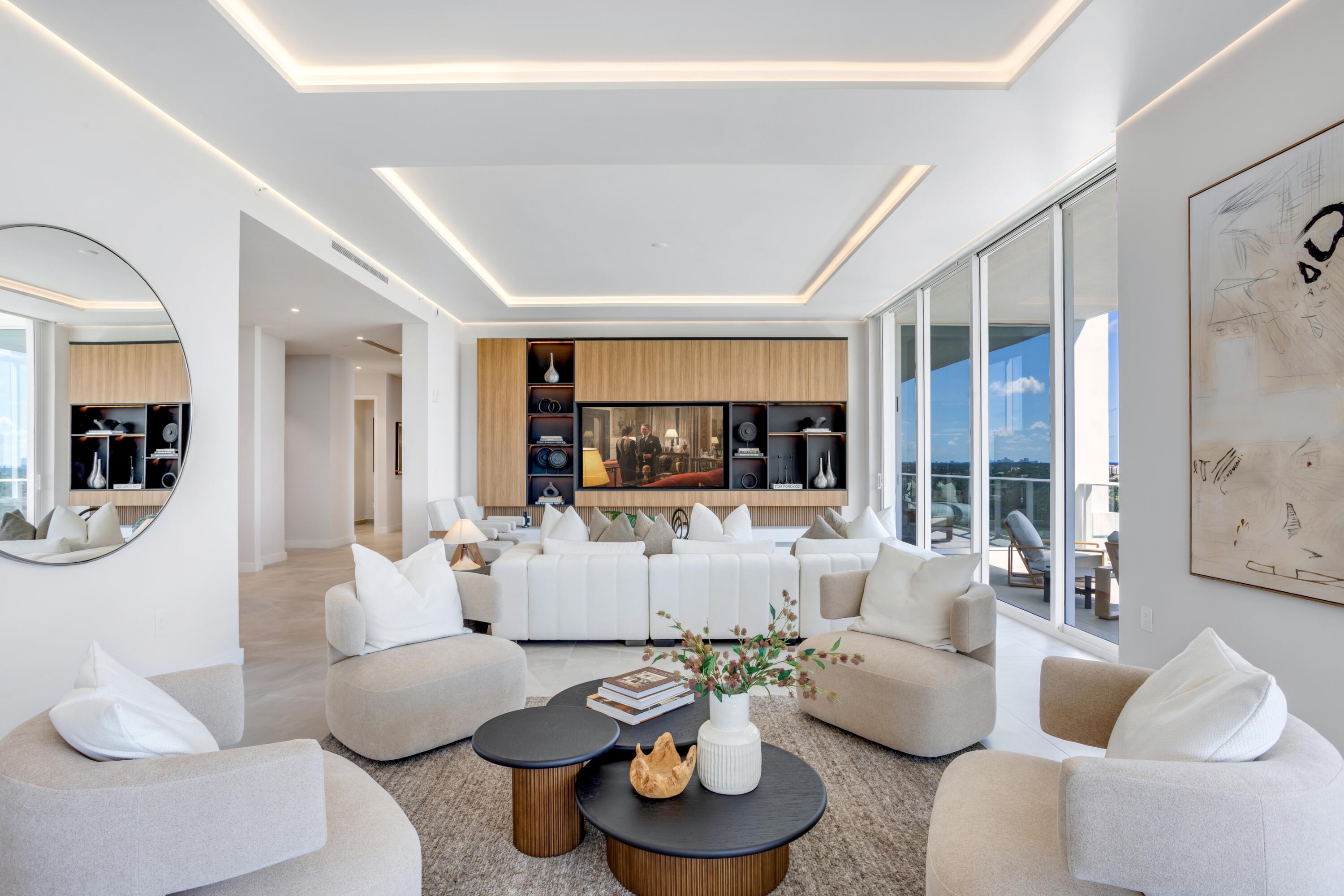 220 South East Mizner Boulevard, Boca Raton, Florida. Ideally situated in the heart of downtown Boca Raton, Alina 220 stands as a landmark of contemporary sophistication overlooking the posh Boca Raton Resort's verdant green fairways and the azure ocean beyond. Created by one of New York's most renowned developers, this nine-story architectural masterpiece encompasses 152 exclusive private residences surrounded by 8.5 acres of lush, artfully landscaped grounds.Residents enjoy immediate access to the city's most desirable destinations: Royal Palm Place, Mizner Park, fine dining, upscale galleries, and couture boutiques, only steps away. The resort-style amenities include an elegant lobby, elite-performance fitness center, club and game rooms, private yoga studio, ... continued ...full-service spa with saunas, steam and salt rooms, plus 24/7 concierge, security, and valet, all under the attentive care of a white-glove staff dedicated to refined living. ________________________________________ PROPERTY This private residential retreat embodies luxury resort living with exceptional outdoor amenities, a sparkling rooftop pool and cabanas, meditation garden, yoga lawn, dog park, and private indoor/outdoor dining terrace with catering kitchen, all designed to elevate wellness, leisure, and social connection. ________________________________________ RESIDENCE Occupying the uppermost floor of Alina 220, this brand-new, fully custom finished southeast-corner Penthouse represents the pinnacle of modern Boca Raton living. Spanning 5,151± total square feet, the three-bedroom, split-plan residence combines dramatic architectural volume with ultra-luxury appointments throughout. Expansive walls of floor-to-ceiling glass capture panoramic breathtaking views of The Boca Raton Resort's emerald fairways and the azure Atlantic Ocean, seamlessly inviting the captivating, serene vistas of the natural surroundings infused into the interior living spaces. The expansive great room, encompassing living, dining, and media areas, is bathed in natural light and framed by 11-foot± tray ceilings with concealed recessed linear lighting, creating a sense of airy grandeur. Adjacent to the light infused great room, a tailored den with tailored cabinetry and wet bar complements the designer European-style kitchen, a true showpiece featuring a cascading-edge island, custom cabinetry, porcelain countertops, Gaggenau appliances, and a spacious walk-in pantry. The primary suite serves as a private sanctuary, offering dual walk-in closets, a private sitting room, and a spa-inspired marble bath with freestanding soaking tub, dual vanities, large glass-enclosed multi-head shower, and two water closets all oriented toward sweeping views of the golf course, skyline, and ocean. Two additional guest suites provide equally stunning vistas. Additional features include a powder room, laundry room, two garage spaces, private elevator access, Savant Smart Home automation, premium Samsung TVs, Lutron lighting, and a full security system. ALINA 220 PENTHOUSE 24 TECHNOLOGY & SYSTEM ENHANCEMENTS A fully automated management system by Savant - controls audio, TVs, lighting, climate, and motorized shades, all from your phone, iPad, wall touchscreens, or voice. The integrated Lutron lighting system enables dimming, programmable custom lighting scenes, energy efficient scheduling, and automated routines adapt effortlessly to your preferred schedule. Trimless recessed downlights and LED cove lighting in key areas enhance warmth and architectural elegance. The whole-home Audio-Visual components are prewired throughout, extending to the dining, kitchen, den, and primary bath for immersive and balanced sound including: " Great Room: 85" Samsung display, Savant LCR soundbar, invisible ceiling speakers, and hidden subwoofer. " Primary Suite: 75" Samsung display, dual ceiling speakers, and wireless subwoofer. Also featured is a robust Wi-Fi 6 system ensuring fast, reliable coverage and discreet entry cameras provide secure video monitoring. In addition, custom millwork details include a primary suite bed wall with integrated TV, boutique closets, a tailored bar, great room media wall with concealed AV access, built-in guest closets, and elegant foyer cabinetry. DISCLAIMER: Information published or otherwise provided by the listing company and its representatives including but not limited to prices, measurements, square footages, lot sizes, calculations, statistics, and videos are deemed reliable but are not guaranteed and are subject to errors, omissions or changes without notice. All such information should be independently verified by any prospective purchaser or seller. Parties should perform their own due diligence to verify such information prior to a sale or listing. Listing company expressly disclaims any warranty or representation regarding such information. Prices published are either list price, sold price, and/or last asking price. The listing company participates in the Multiple Listing Service and IDX. The properties published as listed and sold are not necessarily exclusive to listing company and may be listed or have sold with other members of the Multiple Listing Service. Transactions where listing company represented both buyers and sellers are calculated as two sales. "No payments made until title passes" Some affiliations may not be applicable to certain geographic areas. If your property is currently listed with another broker, please disregard any solicitation for services. Information published or otherwise provided by seller, listing company or its representatives is deemed reliable but are not guaranteed and subject to errors, omissions, or changes without notice. Copyright 2025 by the listing company. All Rights Reserved.
