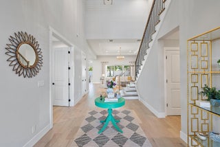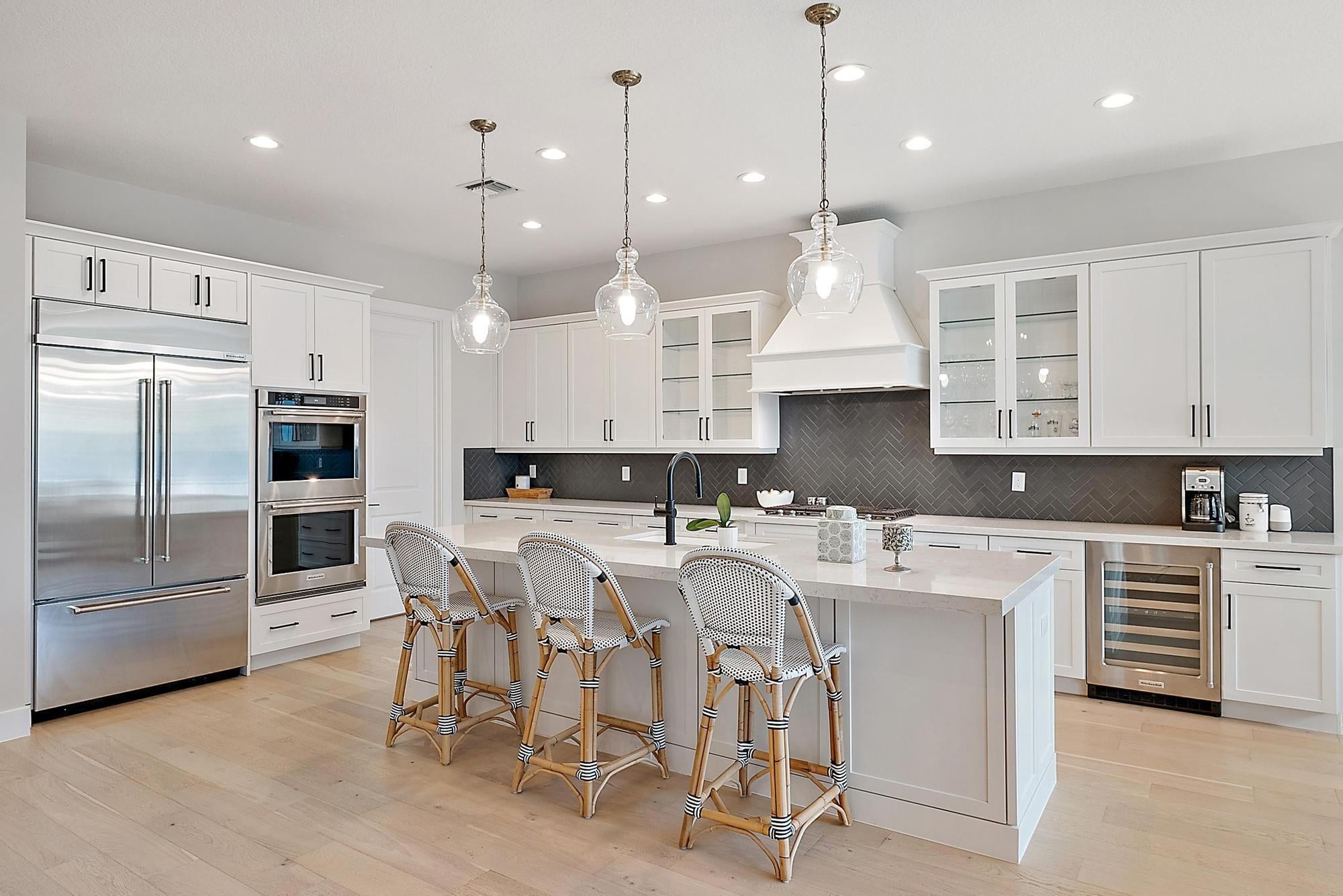 Newest Listing in WATERMARK at AVENIR!Move right into this stunning 2024 Toll Brothers home showcasing the community's most popular floor plan offering 5 spacious bedrooms, 4.1 bathrooms, a 2 car garage, enhanced by exquisite designer upgrades throughout. A dramatic double-height foyer welcomes you with modern wood flooring and a striking tiered staircase -- and there's *no carpet anywhere*! Beautiful custom wood and porcelain floors extend throughout the home. The open-concept main living area is bright and spacious, filled with natural light. Built to today's highest standards, this home offers *energy-efficient living* and comes with an extended builder warranty for peace of mind.The chef's kitchen is an entertainer's dream, featuring premium appliances, an oversized refrigerator, natural gas cooktop, and a quartz waterfall island. A cozy dining alcove and large walk-in pantry complete this perfect culinary space. The first-floor primary suite is a serene retreat with expansive custom closets and a luxurious spa-inspired bath. All bedrooms are generously sized and include custom wood closet built-ins. Outside, enjoy a prime South-facing yard for all-day sunlight, an oversized lot, and a covered lanai with plenty of room for a pool and pre-plumbing for a summer kitchen. AVENIR is Palm Beach's premier master-planned community, offering resort-style amenities: a grand clubhouse, state-of-the-art fitness center, tennis and pickleball courts, pool and spa, scenic walking trails, and a community garden. The upcoming Avenir Town Center will feature Publix, dining, retail, offices, and spa services. For golf enthusiasts, Avenir is home to Panther National, a world-class course designed by Jack Nicklaus and Justin Thomas. Plus, five championship courses are within 10 minutes, and the new Sandhill Crane Golf Club with course, range, and dining is just outside the gates. Watermark at Avenir also features 98 single-family homes. Home designs feature unique architecture blending modern trends and coastal influences, built with Toll Brothers commitment to quality, value, and craftsmanship. Watermark at Avenir is conveniently located in one of the top school districts in Palm Beach County and close to the areas upscale shopping and dining, Atlantic beaches, and recreational and cultural attractions. Avenir features more than 2,400 acres of conservation and preserve areas and include a multitude of recreation options for residents. Experience the best of modern Florida living in the heart of the magnificent Palm Beaches!